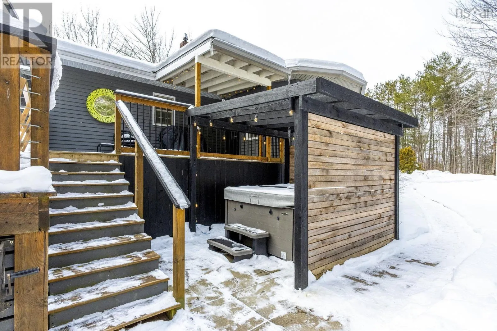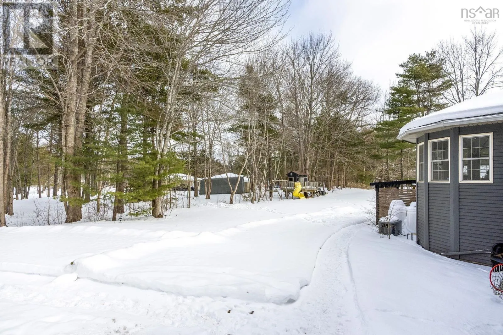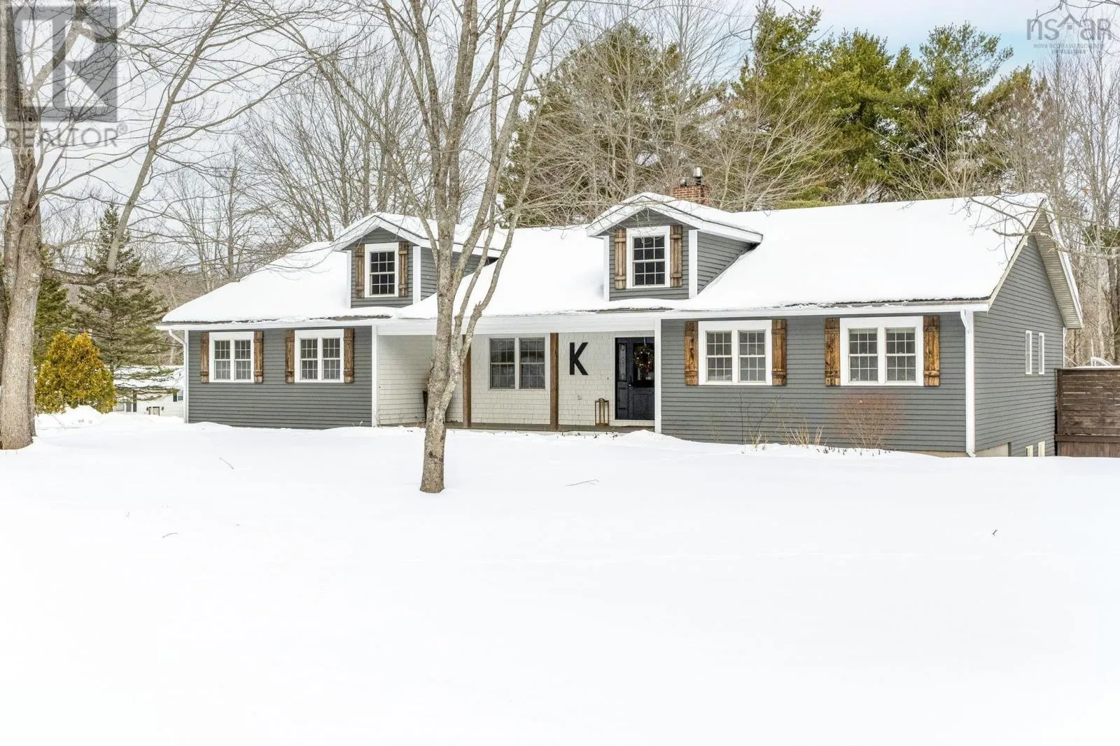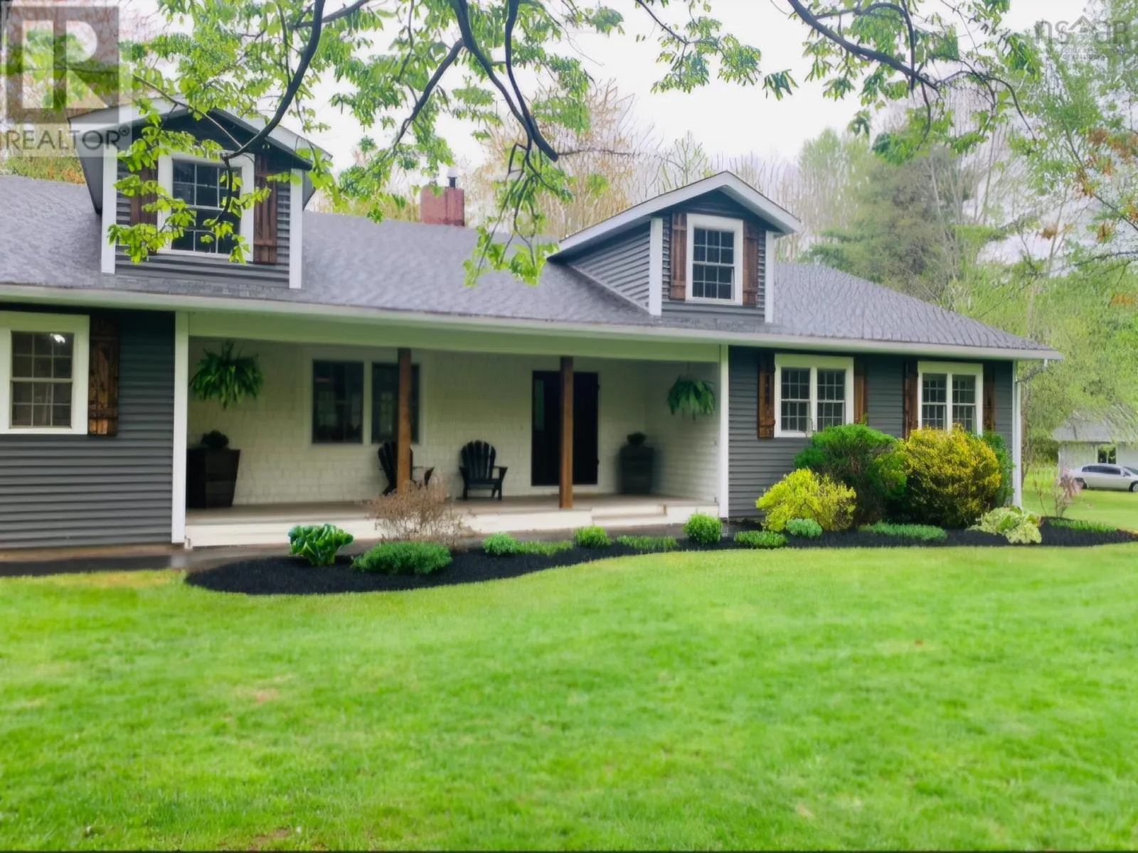 From Hwy.1 North on Lovett Rd., east Laurie Lane, North on Pent and East on Borden to civic. Built in 1990, this gorgeous home sits on a large corner lot in one of Coldbrook's finest sub/divs. The lovely open concept living/dining/kitchen lends itself to entertaining/ large family gatherings. Kitchen features upgraded cabinets, new country sink, countertop and new coffee bar with wine fridge. Access to deck, pool and hot tub from dining nook. The main level also offers a front foyer and a back entry with half bath; a huge master bedroom with ensuite and walk-in closet; two more good sized bedrooms and a second full bath. The lower level offers a spacious family room with wood stove; a fourth bedroom; laundry room; half bath; and a workshop with garage access . Home is heated with electric baseboard and wood and is equipped with a Generac system making transition seamless in case of power outages. Flooring is hardwood, laminate and vinyl. A privacy fence for pool, paved circular driveway and nicely landscaped grounds gives great curb appeal and is a must see!! (id:27476)