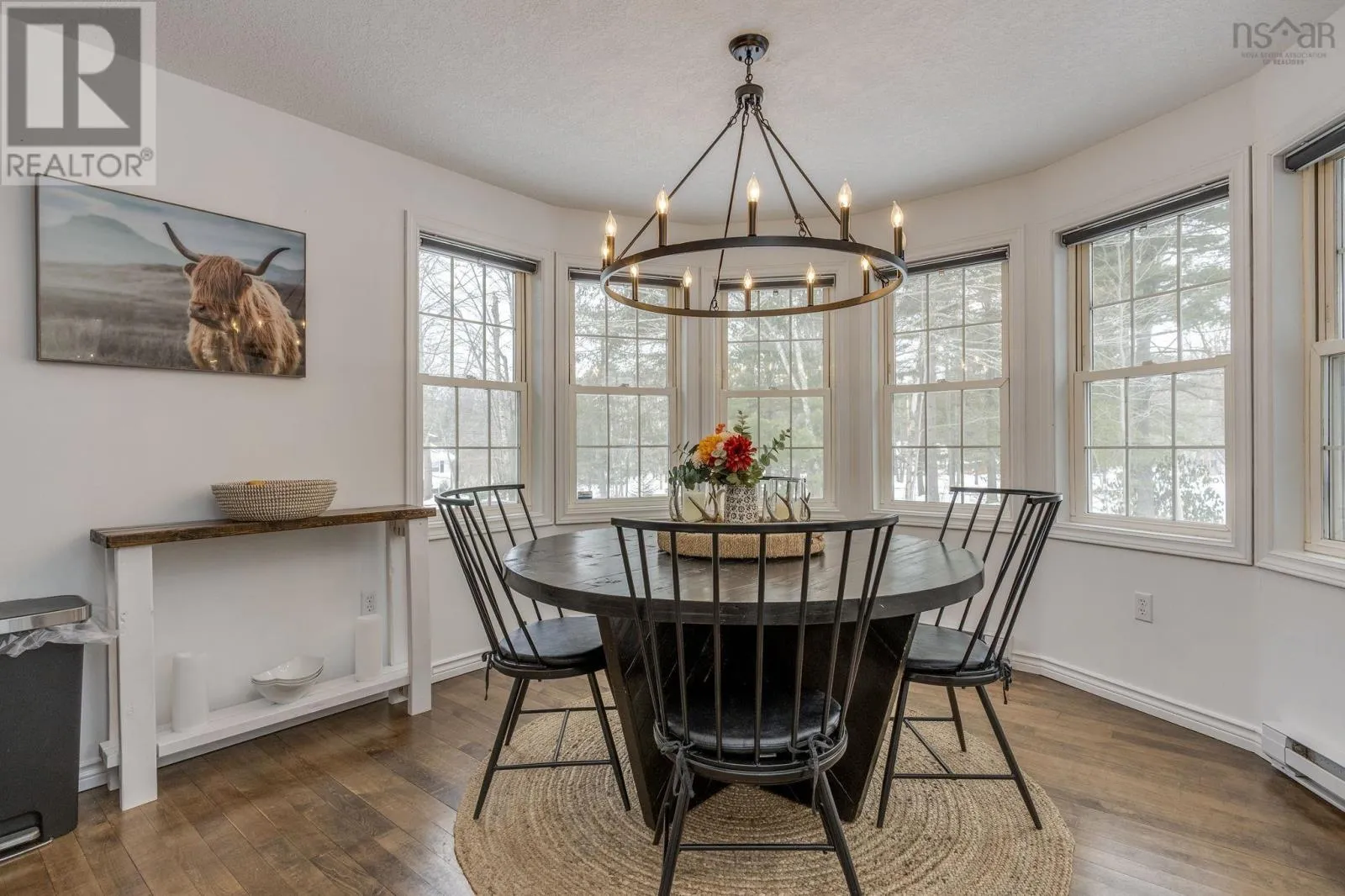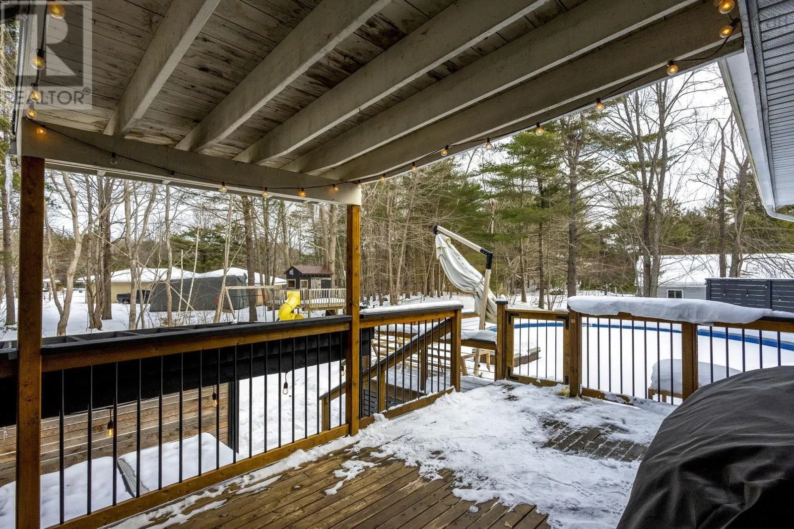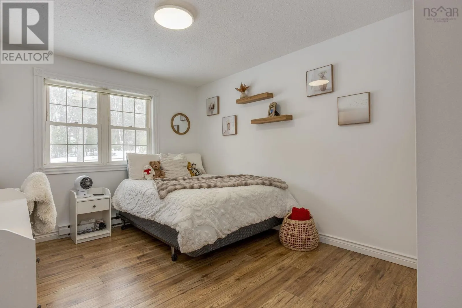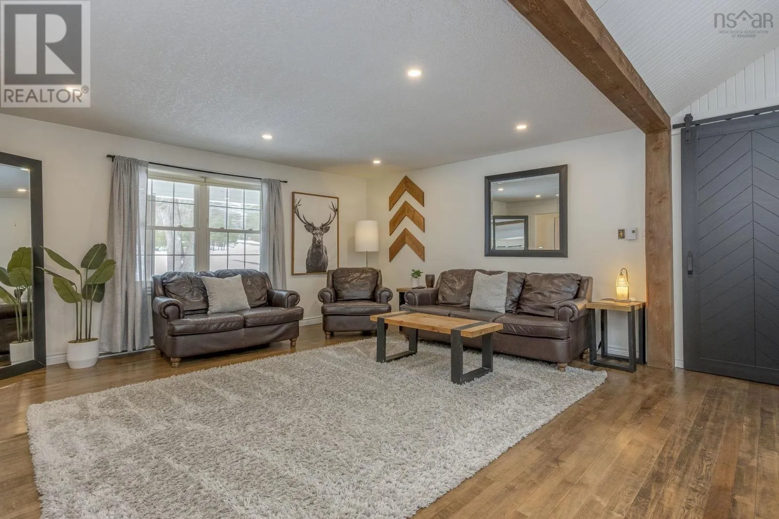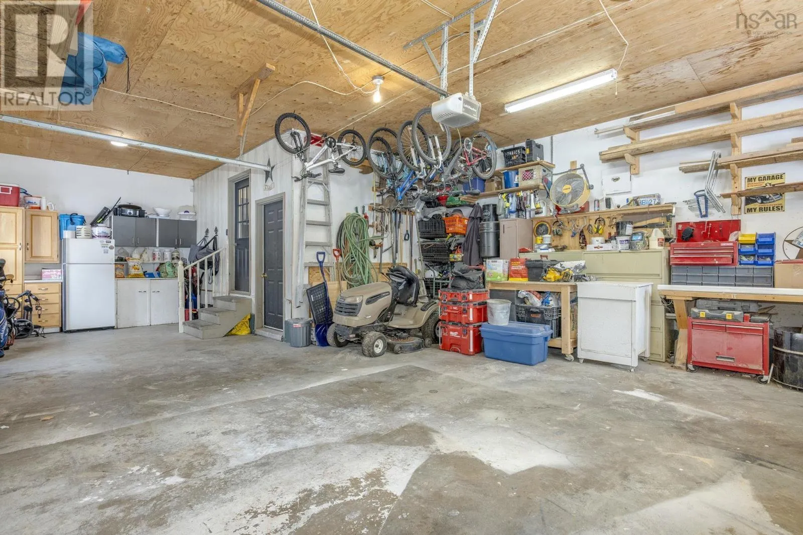 From Hwy.1 North on Lovett Rd., east Laurie Lane, North on Pent and East on Borden to civic. Built in 1990, this gorgeous home sits on a large corner lot in one of Coldbrook's finest sub/divs. The lovely open concept living/dining/kitchen lends itself to entertaining/ large family gatherings. Kitchen features upgraded cabinets, new country sink, countertop and new coffee bar with wine fridge. Access to deck, pool and hot tub from dining nook. The main level also offers a front foyer and a back entry with half bath; a huge master bedroom with ensuite and walk-in closet; two more good sized bedrooms and a second full bath. The lower level offers a spacious family room with wood stove; a fourth bedroom; laundry room; half bath; and a workshop with garage access . Home is heated with electric baseboard and wood and is equipped with a Generac system making transition seamless in case of power outages. Flooring is hardwood, laminate and vinyl. A privacy fence for pool, paved circular driveway and nicely landscaped grounds gives great curb appeal and is a must see!! (id:27476)
