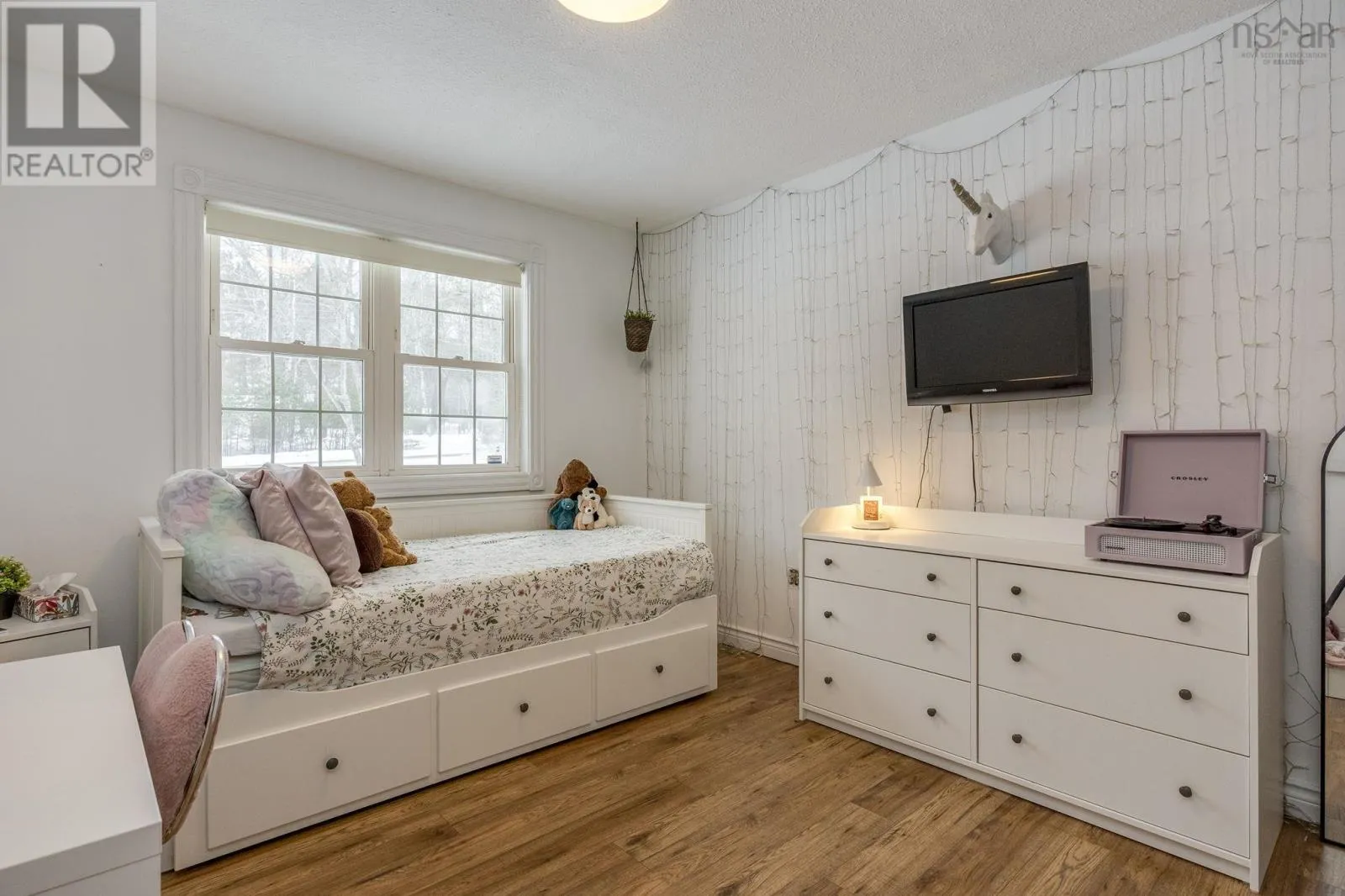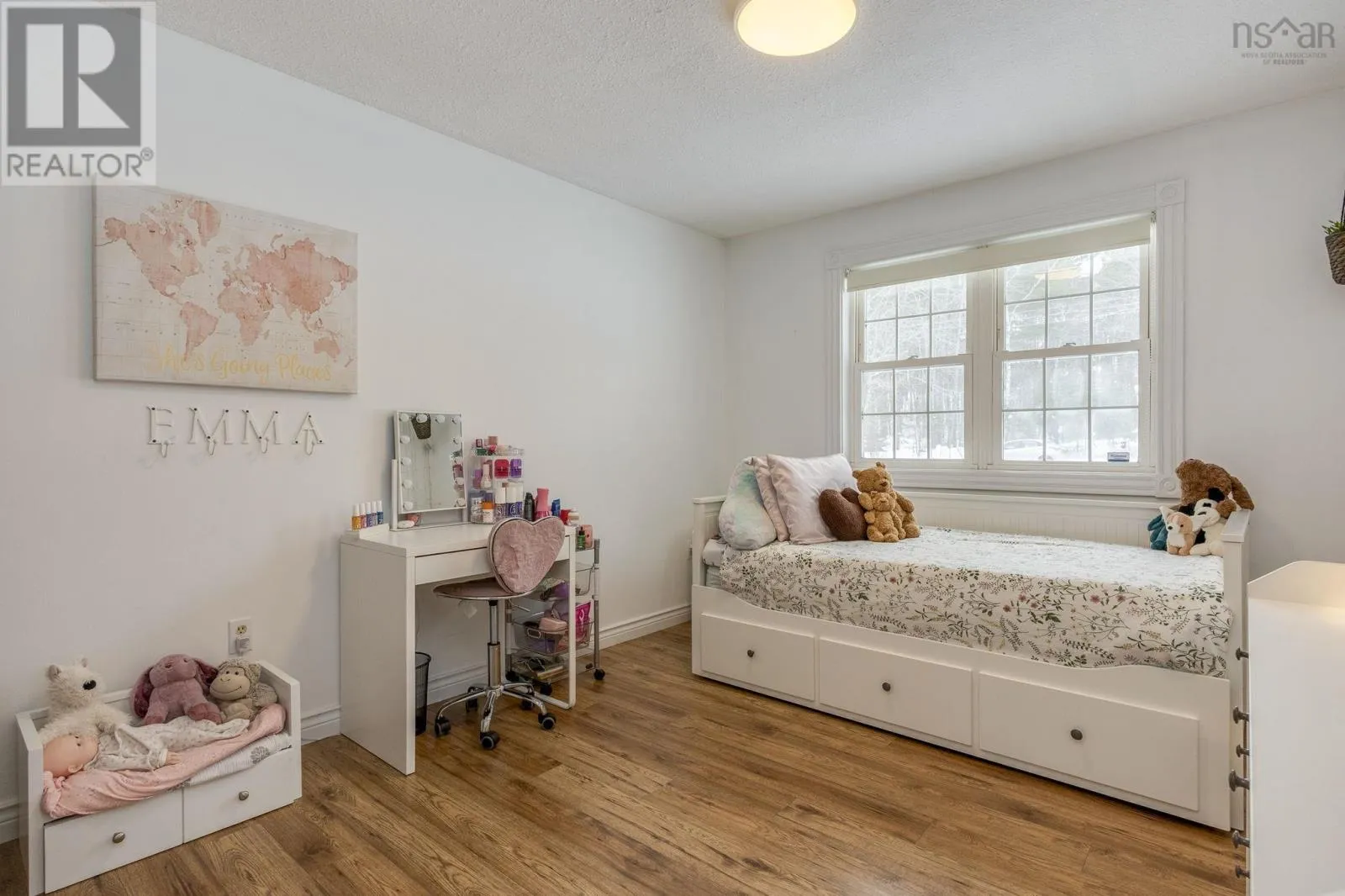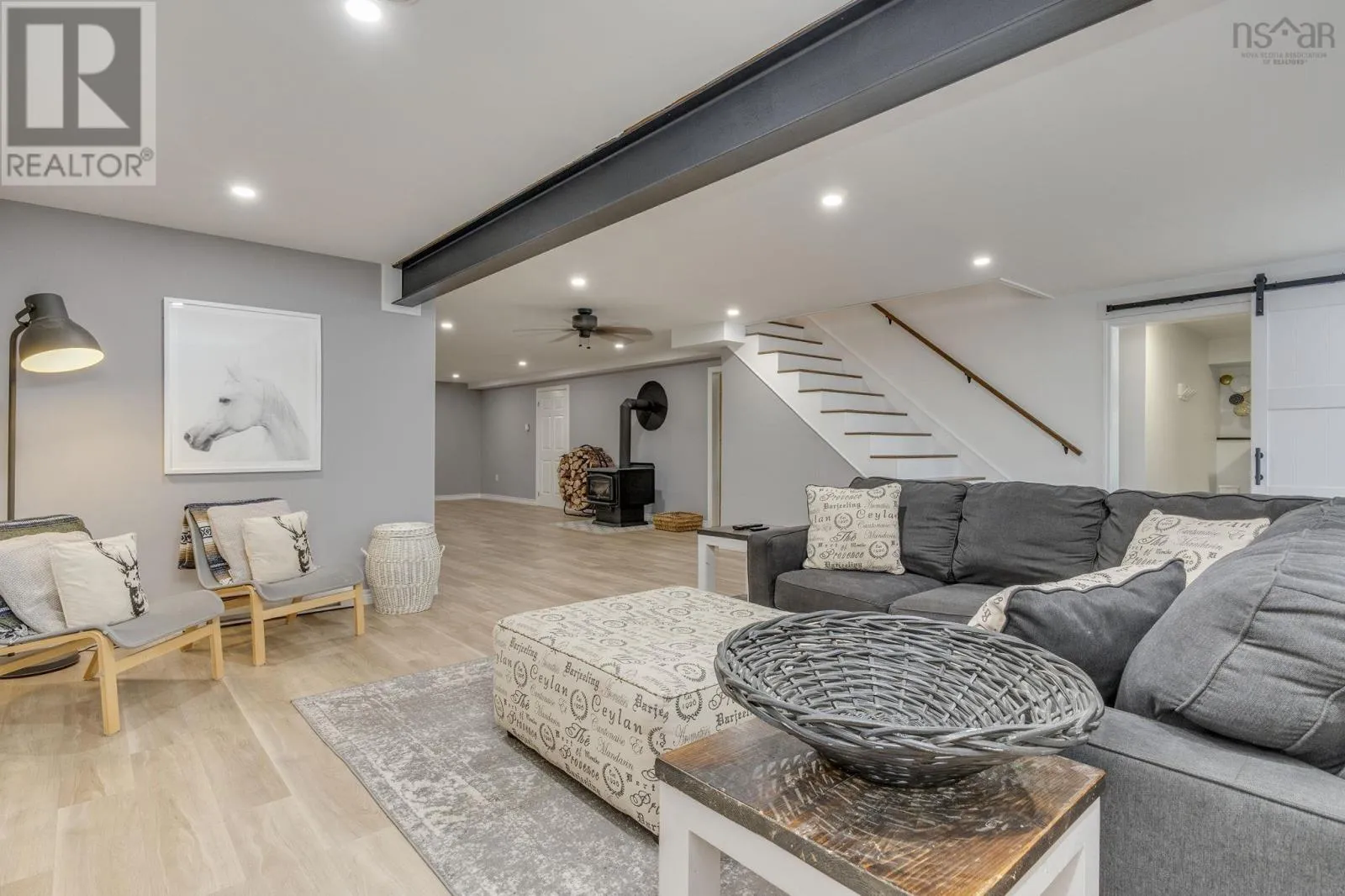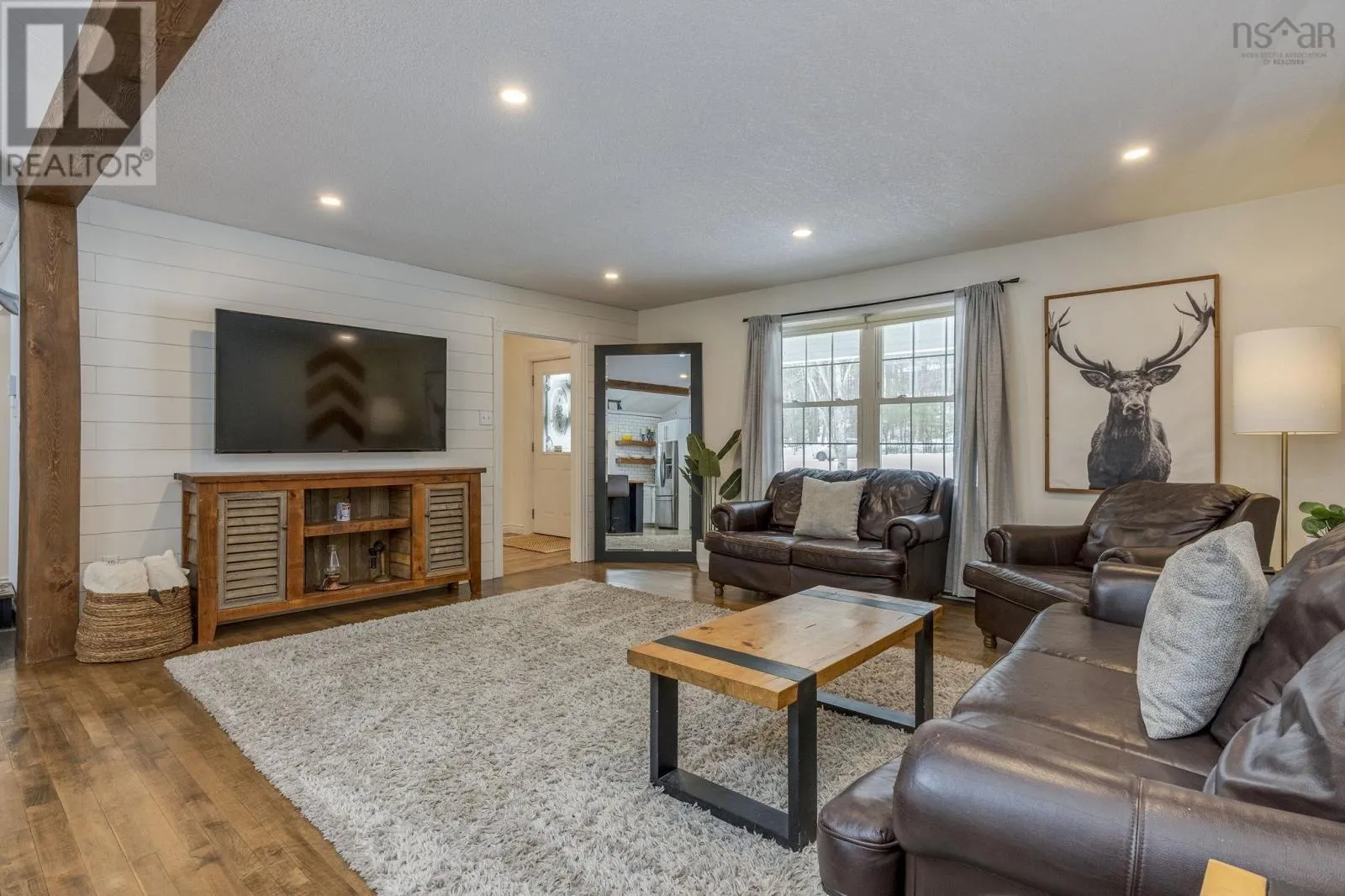 From Hwy.1 North on Lovett Rd., east Laurie Lane, North on Pent and East on Borden to civic. Built in 1990, this gorgeous home sits on a large corner lot in one of Coldbrook's finest sub/divs. The lovely open concept living/dining/kitchen lends itself to entertaining/ large family gatherings. Kitchen features upgraded cabinets, new country sink, countertop and new coffee bar with wine fridge. Access to deck, pool and hot tub from dining nook. The main level also offers a front foyer and a back entry with half bath; a huge master bedroom with ensuite and walk-in closet; two more good sized bedrooms and a second full bath. The lower level offers a spacious family room with wood stove; a fourth bedroom; laundry room; half bath; and a workshop with garage access . Home is heated with electric baseboard and wood and is equipped with a Generac system making transition seamless in case of power outages. Flooring is hardwood, laminate and vinyl. A privacy fence for pool, paved circular driveway and nicely landscaped grounds gives great curb appeal and is a must see!! (id:27476)