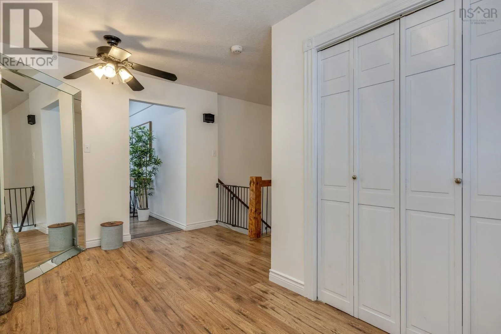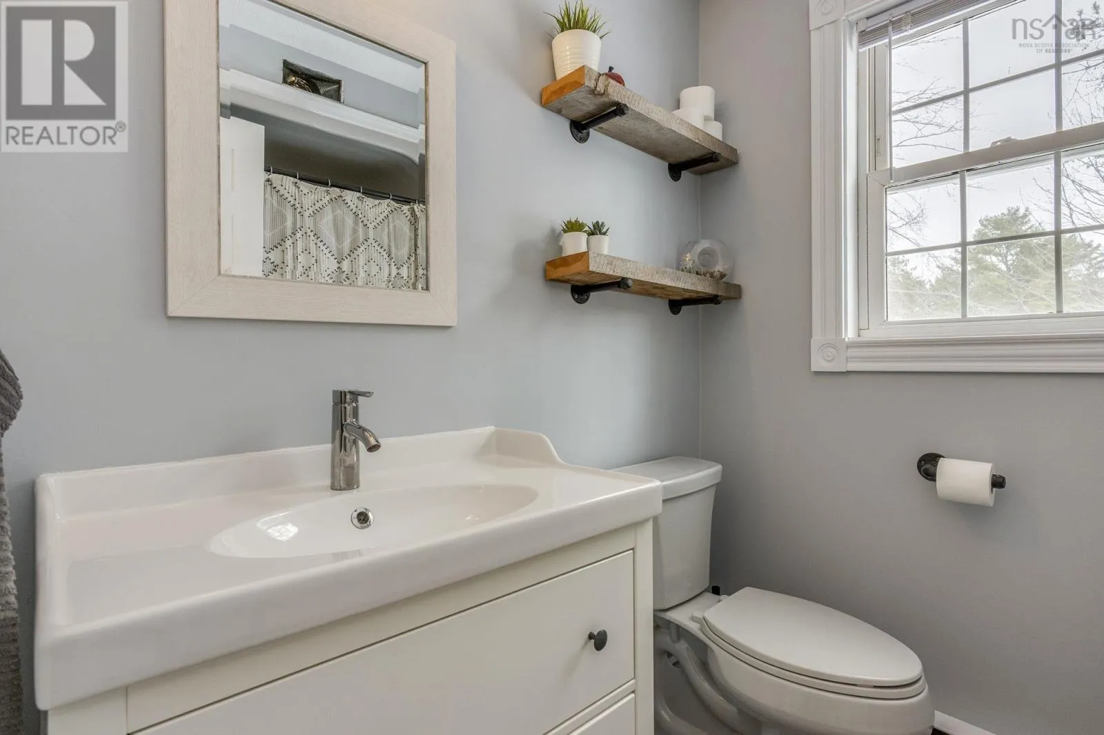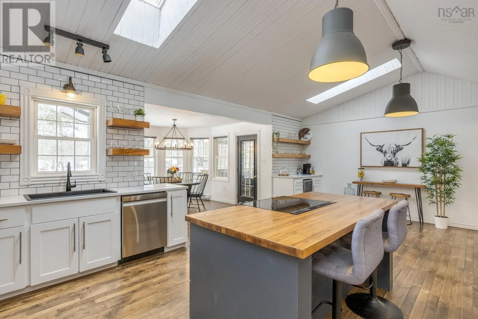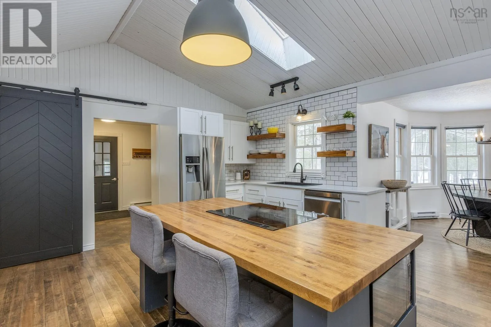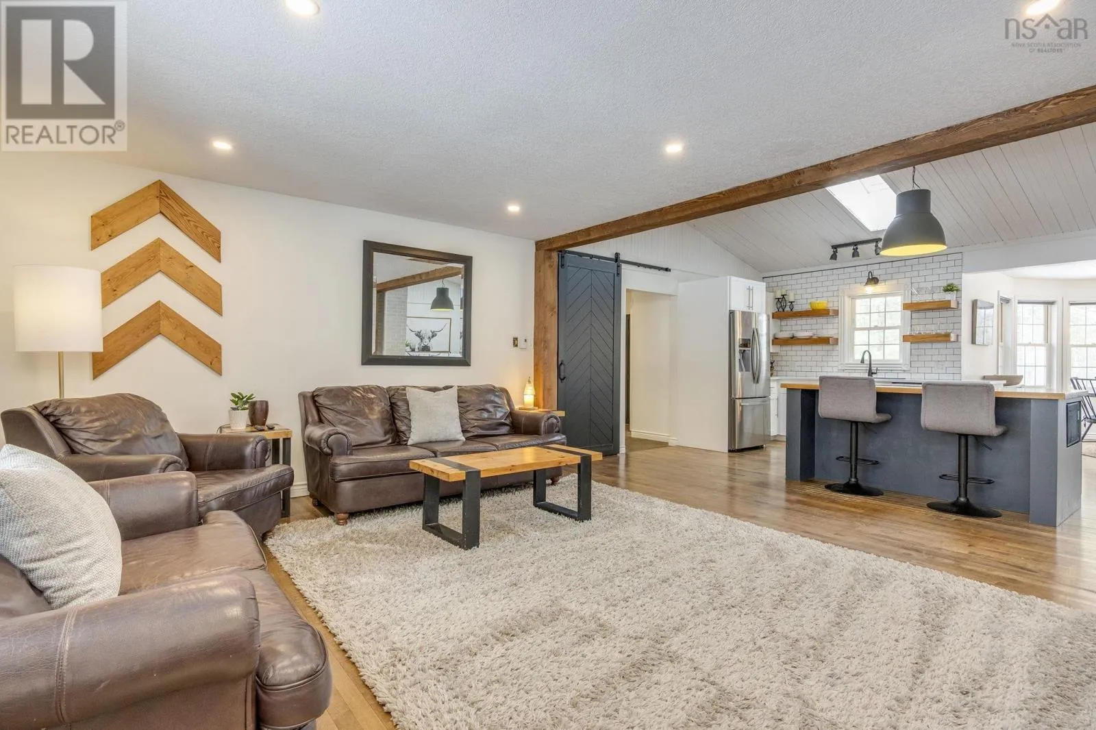 From Hwy.1 North on Lovett Rd., east Laurie Lane, North on Pent and East on Borden to civic. Built in 1990, this gorgeous home sits on a large corner lot in one of Coldbrook's finest sub/divs. The lovely open concept living/dining/kitchen lends itself to entertaining/ large family gatherings. Kitchen features upgraded cabinets, new country sink, countertop and new coffee bar with wine fridge. Access to deck, pool and hot tub from dining nook. The main level also offers a front foyer and a back entry with half bath; a huge master bedroom with ensuite and walk-in closet; two more good sized bedrooms and a second full bath. The lower level offers a spacious family room with wood stove; a fourth bedroom; laundry room; half bath; and a workshop with garage access . Home is heated with electric baseboard and wood and is equipped with a Generac system making transition seamless in case of power outages. Flooring is hardwood, laminate and vinyl. A privacy fence for pool, paved circular driveway and nicely landscaped grounds gives great curb appeal and is a must see!! (id:27476)