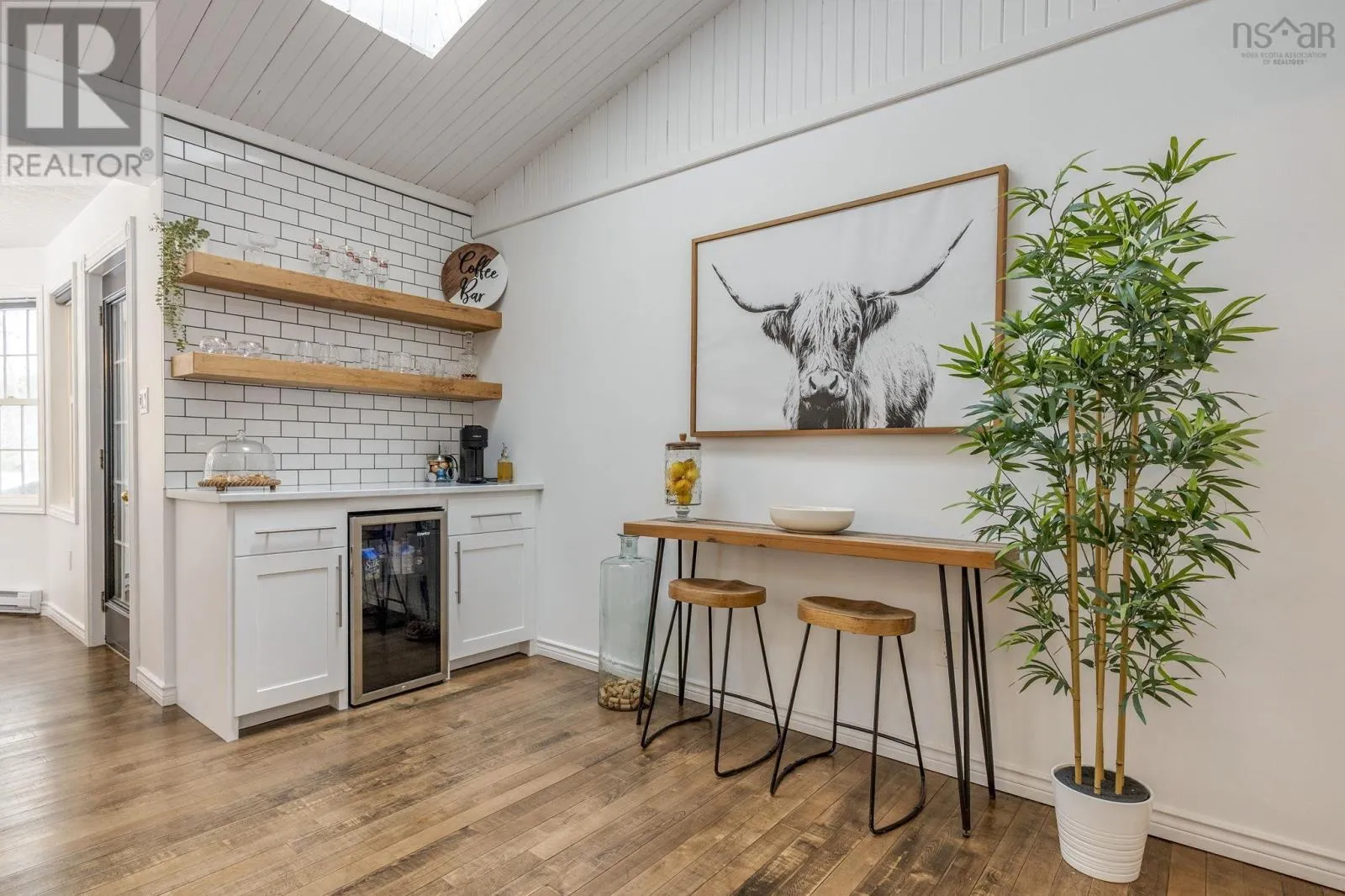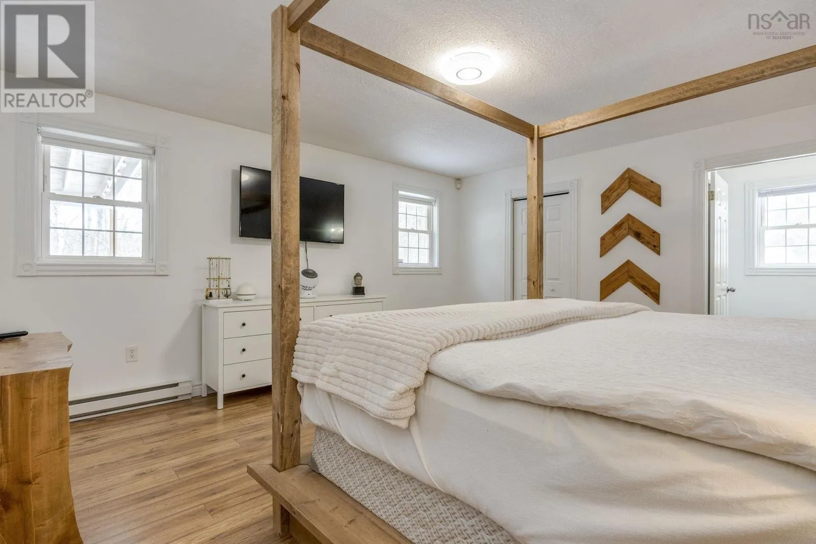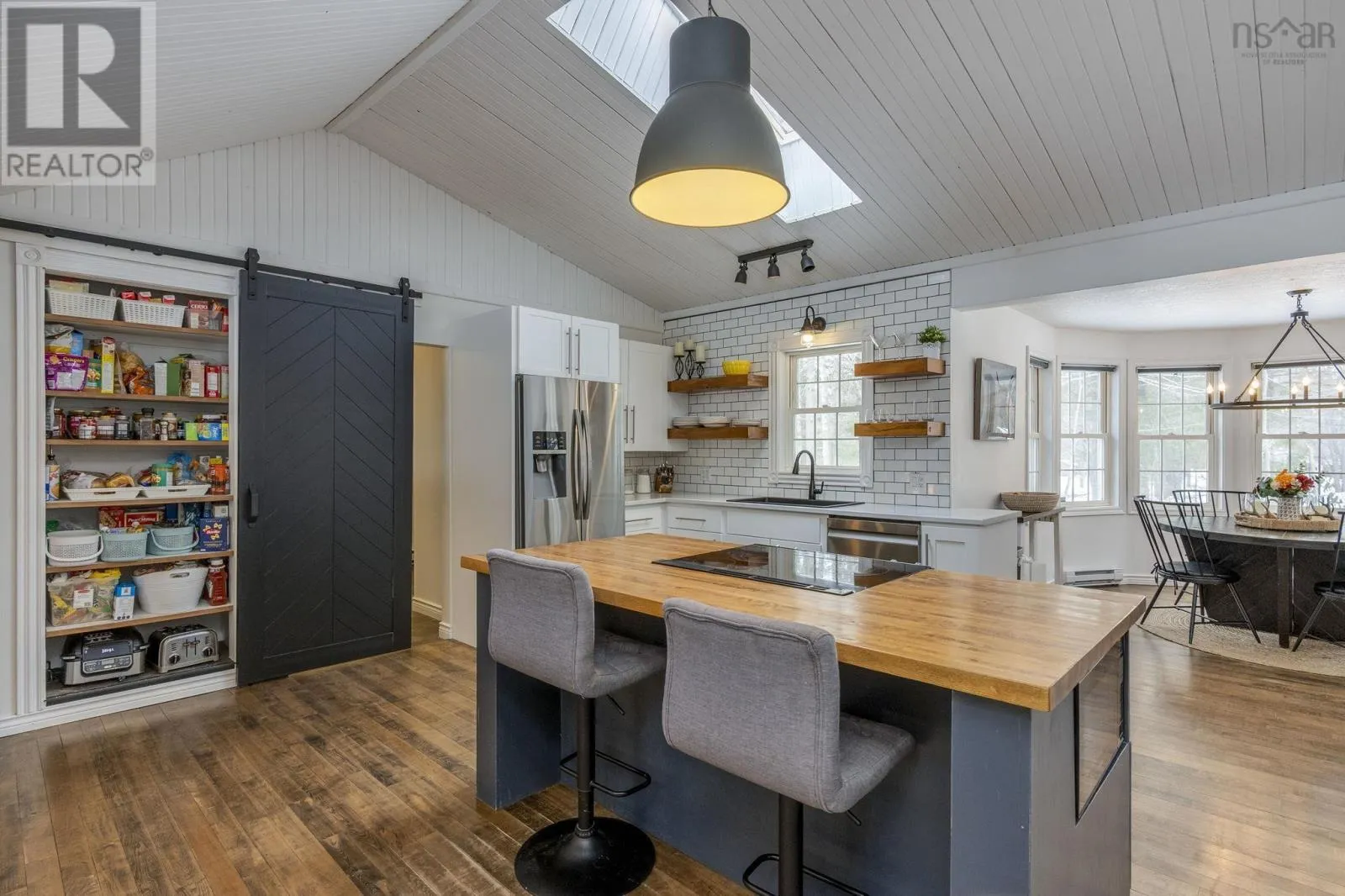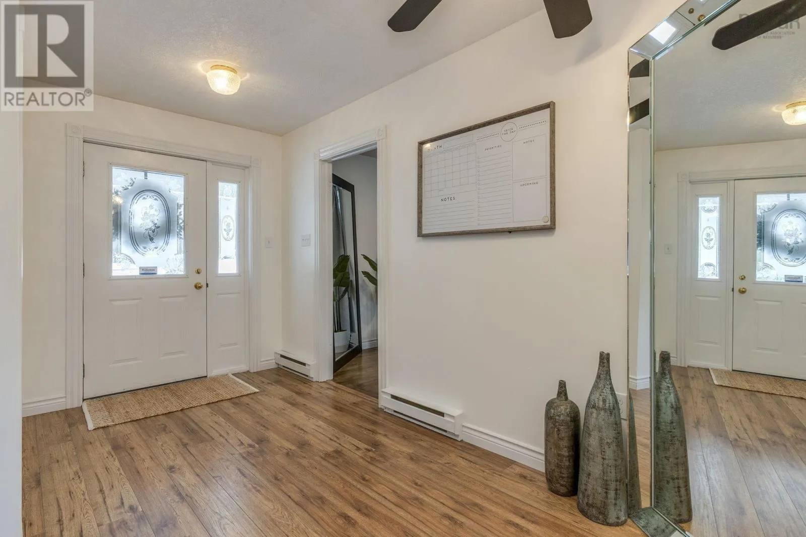 From Hwy.1 North on Lovett Rd., east Laurie Lane, North on Pent and East on Borden to civic. Built in 1990, this gorgeous home sits on a large corner lot in one of Coldbrook's finest sub/divs. The lovely open concept living/dining/kitchen lends itself to entertaining/ large family gatherings. Kitchen features upgraded cabinets, new country sink, countertop and new coffee bar with wine fridge. Access to deck, pool and hot tub from dining nook. The main level also offers a front foyer and a back entry with half bath; a huge master bedroom with ensuite and walk-in closet; two more good sized bedrooms and a second full bath. The lower level offers a spacious family room with wood stove; a fourth bedroom; laundry room; half bath; and a workshop with garage access . Home is heated with electric baseboard and wood and is equipped with a Generac system making transition seamless in case of power outages. Flooring is hardwood, laminate and vinyl. A privacy fence for pool, paved circular driveway and nicely landscaped grounds gives great curb appeal and is a must see!! (id:27476)