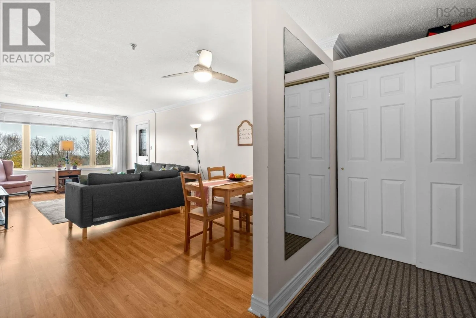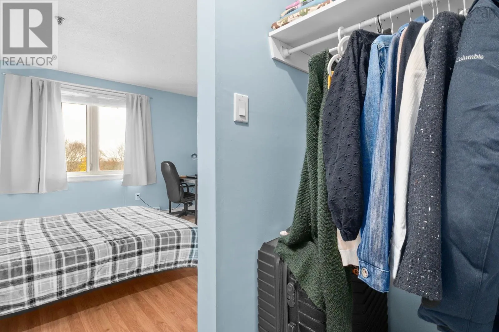 Forest Hill Highway or Portland St. to Cumberland 1st building after Mormon Temple. Very well-maintained 2-bedroom top-floor condo in Colby Village, close to all kinds of amenities. This convenient and bright unit offers care-free living. The large open concept living and dining area is filled with natural light. Large primary bedroom with a walk-in closet, a large private balcony(15X6.6) off the living room, in-unit laundry & storage room, and 5 appliances included. The building is a self-managed condo corporation with low condo fees and features a social room, an elevator, and plenty of visitor parking. Great opportunity for first-time home buyers or those looking to downsize. The building is totally smoke-free! No smoking, No Cannabis use, No Vaping, and dogs are not allowed. (id:27476)