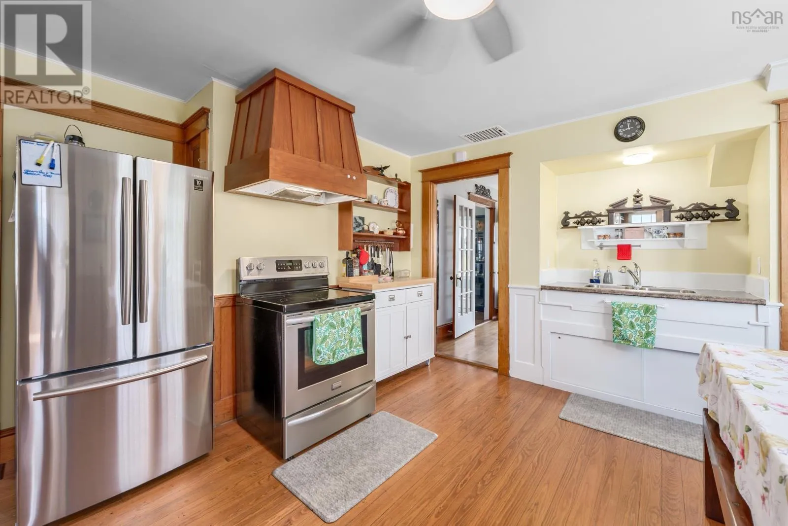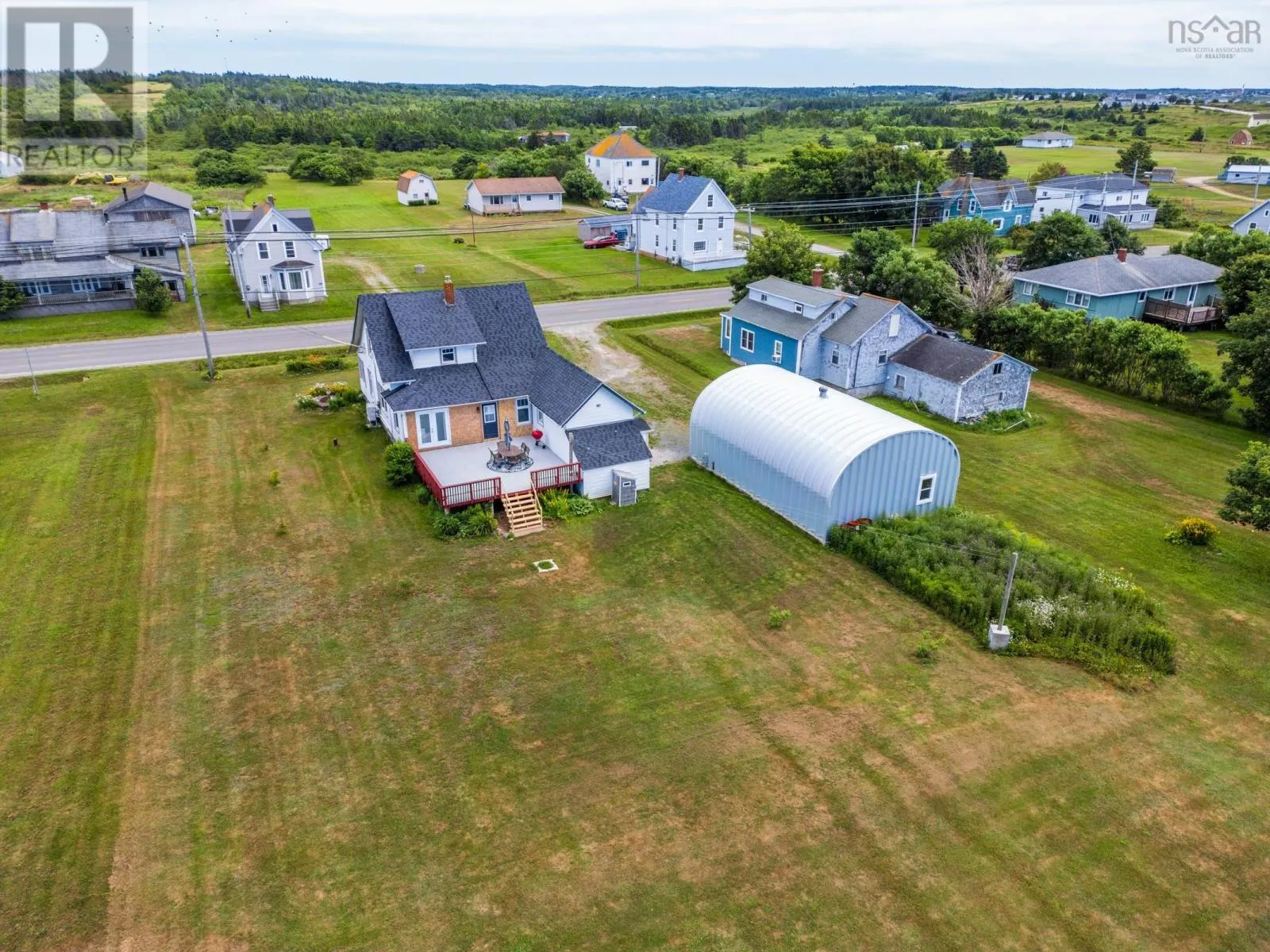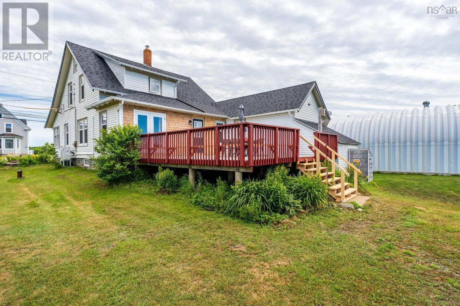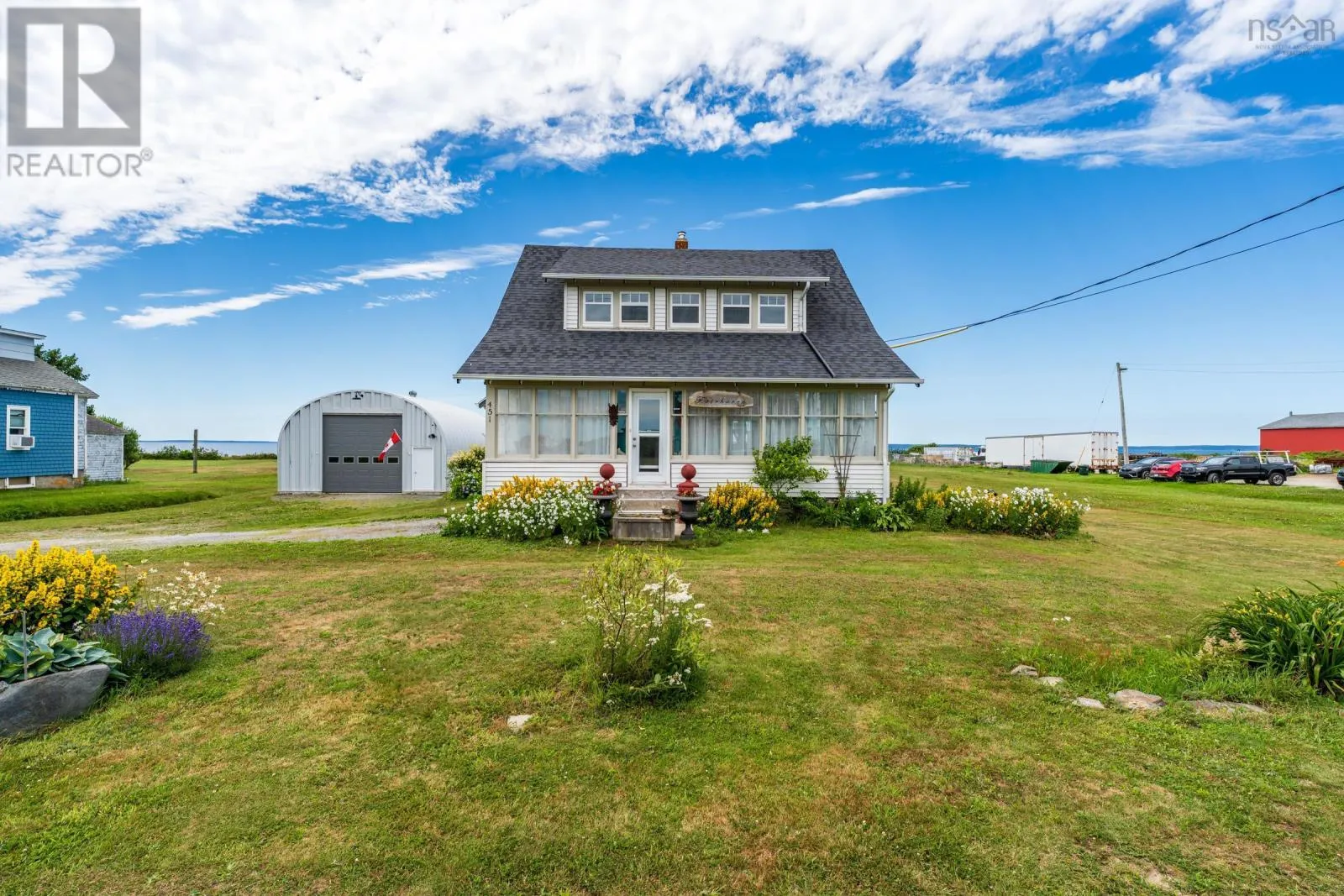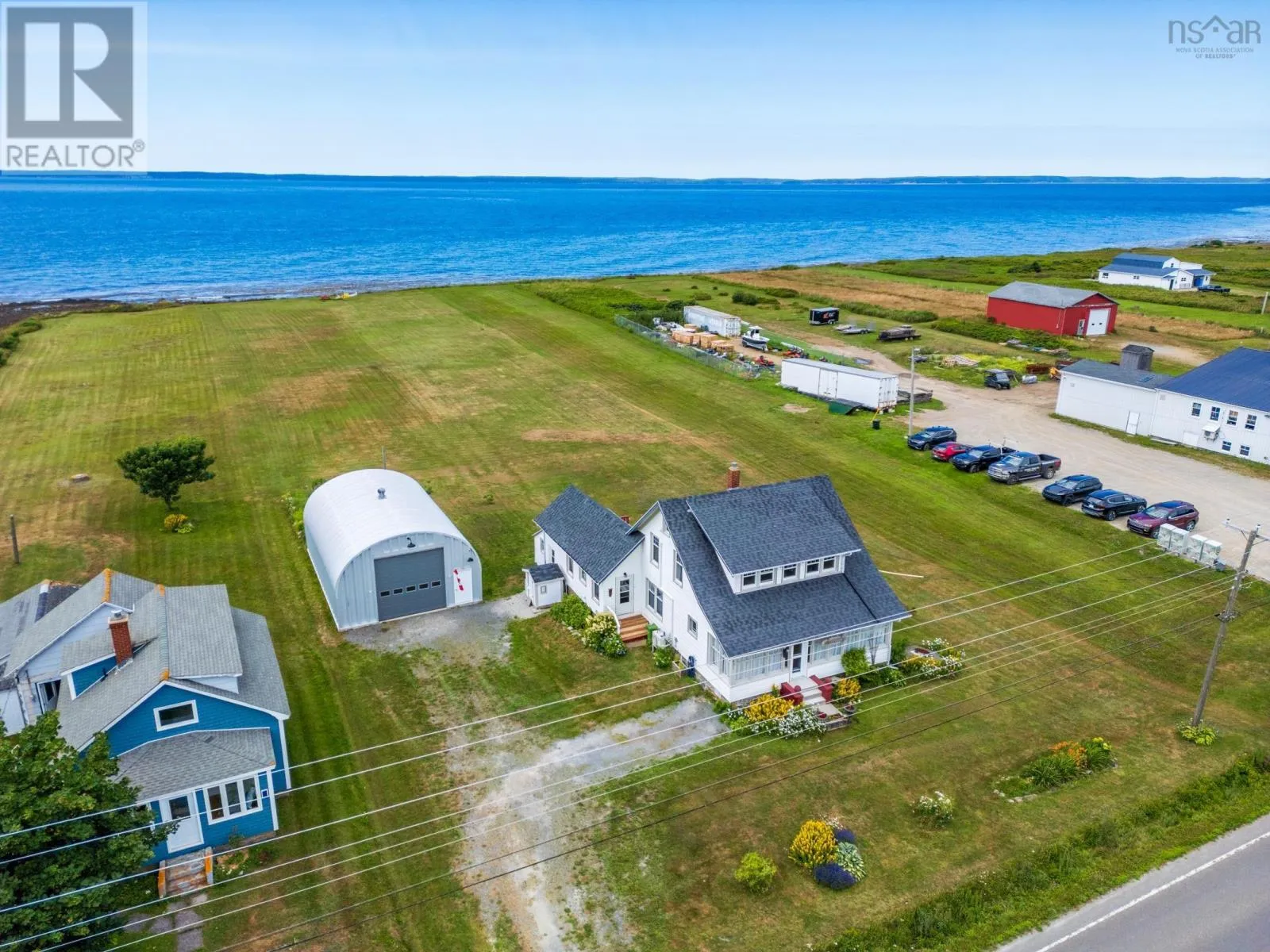 Highway 101 to Route 1 Comeauville to civic and sign, water side. OCEANFRONT LIVING ON ST.MARY'S BAY. This classic 3-bedroom, 2-bath home captures the charm of a period residence while offering bright, open spaces and stunning ocean views. Set on 2.5 landscaped acres that gently slope to the shoreline, the property delivers the true Nova Scotia coastal experience. The main floor features sun-filled living/dining area with French doors leading to a massive back deck overlooking the Bay. An inviting eat-in kitchen with a great pantry, a front-facing sunroom, and a full bath complete the level. Upstairs, three bright bedrooms and a second full bath provide comfortable space for family or guests. A standout feature is the impressive 25' x 40' Quonset garage with 16' height-ideal for business use, hobbies, or RV storage. Double doors on the ocean side create a bright workspace with incredible views and unforgettable sunsets. With travel-trailer hookups for visitors and a location just minutes from amenities and Université Sainte-Anne, this property blends lifestyle, convenience, and coastal beauty. A truly special place to call your new Nova Scotia home. (id:27476)