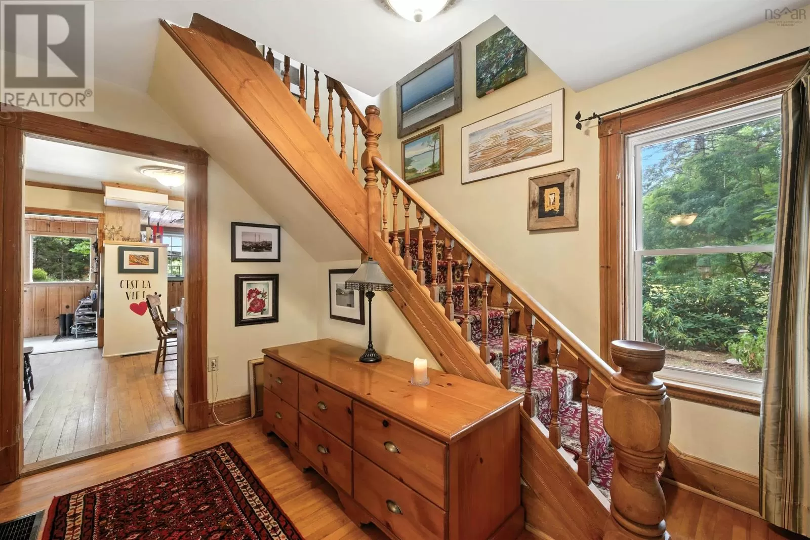 Heading east Hwy 331 from Bridgewater to Conquerall Bank, turn left on Shore Drive Waterfront Property. Experience the tranquility of the LaHave River from this quintessential South Shore property, just five minutes from downtown Bridgewater. Whether youre watching sailboatsincluding the famed Bluenoseglide past from the waterfront viewing decks, or enjoying your morning coffee in the lush country garden, this home offers a lifestyle that invites you to slow down and unwind. Lovingly maintained and thoughtfully upgraded, this year-round residence or idyllic summer retreat sits on 1.3 acres with 69 feet of river frontage across a quiet side road. Mature trees, landscaped grounds, and a wooded extended plot to Hwy 331 create both privacy and charm. Recent upgrades within the past few years include a new septic system, ducted heat pump, roof, back deck, windows, hot water tank, and electrical panelmaking this home truly move-in ready. Inside, character shines with a handsome wood staircase, gleaming hardwood floors, and a naturally bright, flowing layout. The main level features a spacious double-parlour living room with a woodstove insert, a dining room off the kitchen, and walkout access to the south-facing back deck. Upstairs youll find three god sixed bedrooms and a four-piece bath, plus a staircase leading to the finished third-level bonus roomperfect for hobbies, a home office, or extra storage. Additional storage and potential can also be found in the detached garages attic space. Outdoors, the perennial gardens are a secluded paradise, highlighted by a grand tulip tree. With LaHave Sunset Park just down the road, nearby beaches, and sweeping views of Miller Point Peace Park, the location is second to none. Here along Conquerall Bank, boaters enjoy the best of both worlds: a sheltered estuary setting with easy access to the entire South Shore. (id:27476)