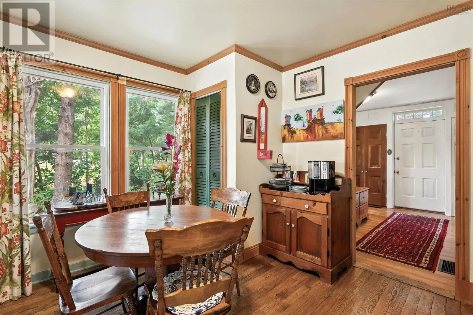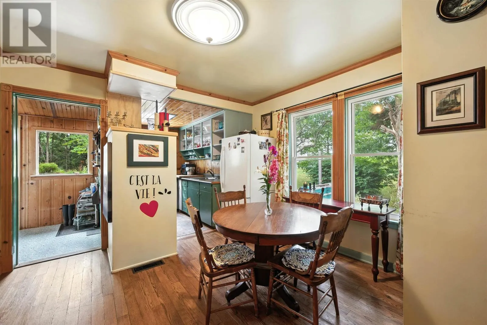 Heading east Hwy 331 from Bridgewater to Conquerall Bank, turn left on Shore Drive Waterfront Property. Experience the tranquility of the LaHave River from this quintessential South Shore property, just five minutes from downtown Bridgewater. Whether youre watching sailboatsincluding the famed Bluenoseglide past from the waterfront viewing decks, or enjoying your morning coffee in the lush country garden, this home offers a lifestyle that invites you to slow down and unwind. Lovingly maintained and thoughtfully upgraded, this year-round residence or idyllic summer retreat sits on 1.3 acres with 69 feet of river frontage across a quiet side road. Mature trees, landscaped grounds, and a wooded extended plot to Hwy 331 create both privacy and charm. Recent upgrades within the past few years include a new septic system, ducted heat pump, roof, back deck, windows, hot water tank, and electrical panelmaking this home truly move-in ready. Inside, character shines with a handsome wood staircase, gleaming hardwood floors, and a naturally bright, flowing layout. The main level features a spacious double-parlour living room with a woodstove insert, a dining room off the kitchen, and walkout access to the south-facing back deck. Upstairs youll find three god sixed bedrooms and a four-piece bath, plus a staircase leading to the finished third-level bonus roomperfect for hobbies, a home office, or extra storage. Additional storage and potential can also be found in the detached garages attic space. Outdoors, the perennial gardens are a secluded paradise, highlighted by a grand tulip tree. With LaHave Sunset Park just down the road, nearby beaches, and sweeping views of Miller Point Peace Park, the location is second to none. Here along Conquerall Bank, boaters enjoy the best of both worlds: a sheltered estuary setting with easy access to the entire South Shore. (id:27476)