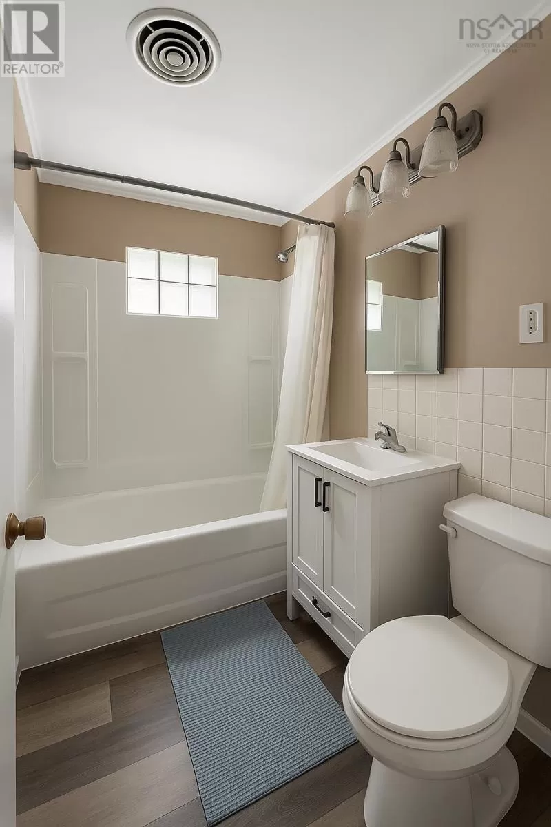 Hwy 1 to Cornwallis Park to Old School Hill Road civic 109 Charming, well-maintained post-war semi-detached house in the scenic community of Cornwallis. Gorgeous hardwood floors throughout, generous back deck with a view of the basin. Two comfortable bedrooms on the second floor with closets and modern windows. Upstairs is rounded out with a three piece bathroom and landing with a hallway and closet. Clean, dry basement with laundry connections has potential for a rec room or workshop, or use as is for easy storage. Quiet community nicely situated between Annapolis Royal and Digby, minutes from the stunning Cornwallis beach. Great as is and excellent reno potential! Book a visit today. (id:27476)