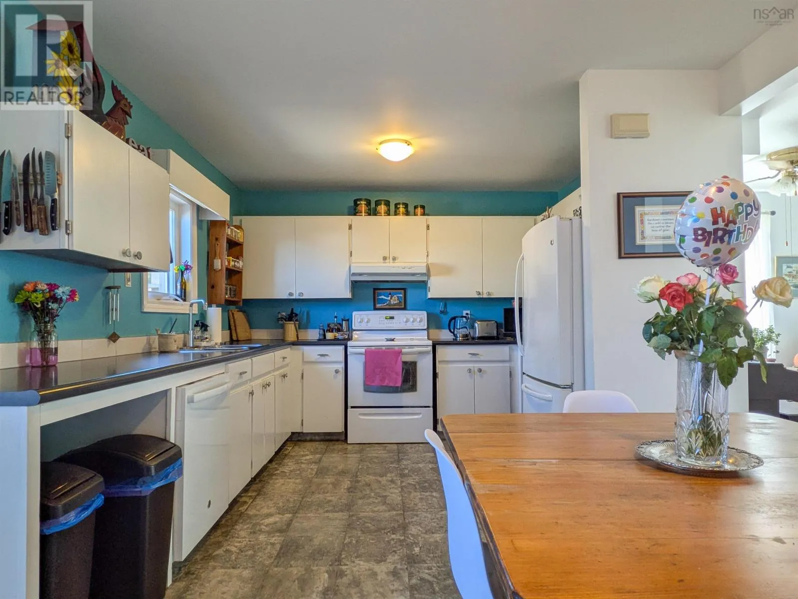From Highway 1, turn southbound onto South Broadway Avenue, follow to civic #544 Impeccably maintained by one owner for 28 years, this 3-bedroom end-unit condo is a testament to thoughtful care and modern updates. Step inside to discover a bright and inviting interior, where an abundance of natural light floods the spacious living room - a haven for both you and your houseplants. The kitchen was remodeled in 2016 to have a more functional flow and abundant counter space. A lovely rear patio, accessed via the kitchen, with a privacy fence and shed is a great spot to lounge. Absolutely huge primary bedroom with oversized closet on 2nd floor. Just down the hall is an updated full bathroom with granite countertop and 2 more bedrooms. Throughout the home, upgraded flooring is both chic and durable. More than meets the eye with this condo - there are plenty of storage spaces and large closets on every level. The dry basement has a large den/bonus room with durable porcelain tile, suitable for many uses. Laundry (washer/dryer included) is located in the large utility room (again, lots of storage space here). Enjoy year-round comfort and ultra-low energy costs with a high-efficiency ducted heat pump (2020) that provides both heating and cooling to every room. Embrace the ease of condo living - all exterior maintenance/repair is handled (snow removal, lawn care, windows, siding, roof, etc). Cornwallis Park is a thriving and friendly community with great amenities within walking distance, such as a fantastic local beach (Annapolis Basin Tidal Beach Park), school, and community garden. Stop paying rent and start building equity - don't delay! (id:27476)