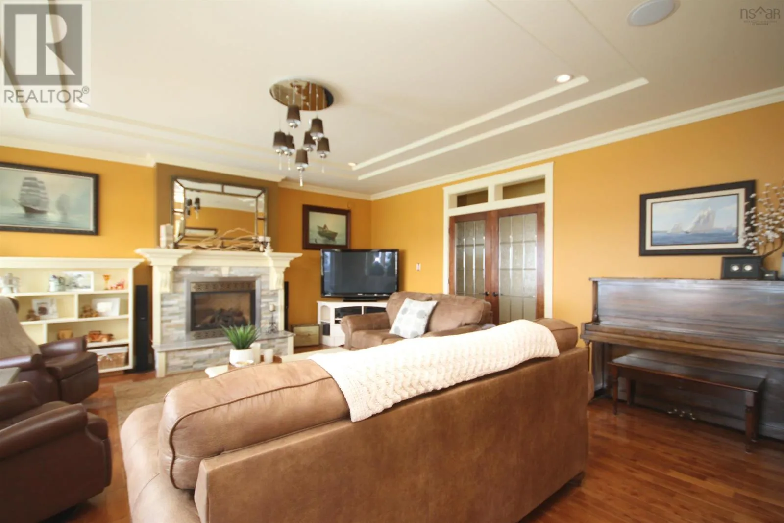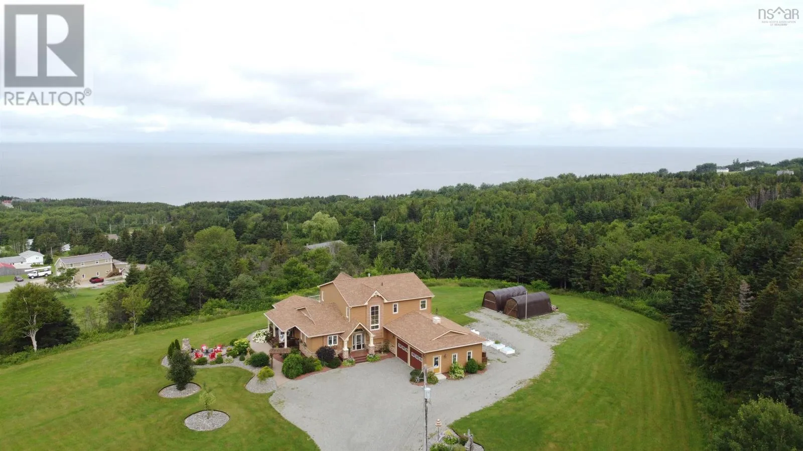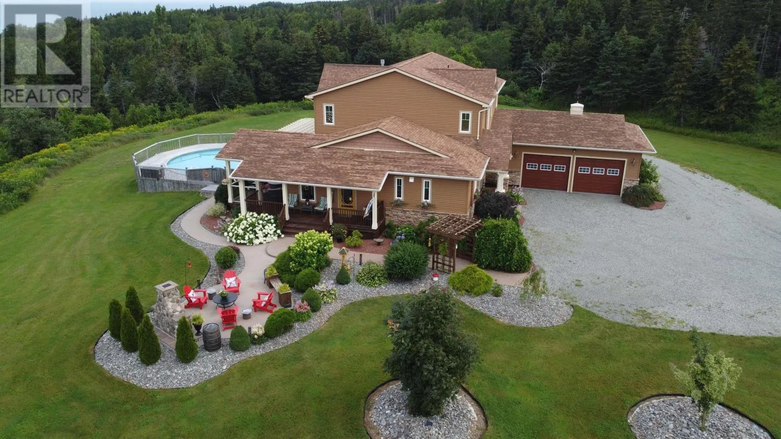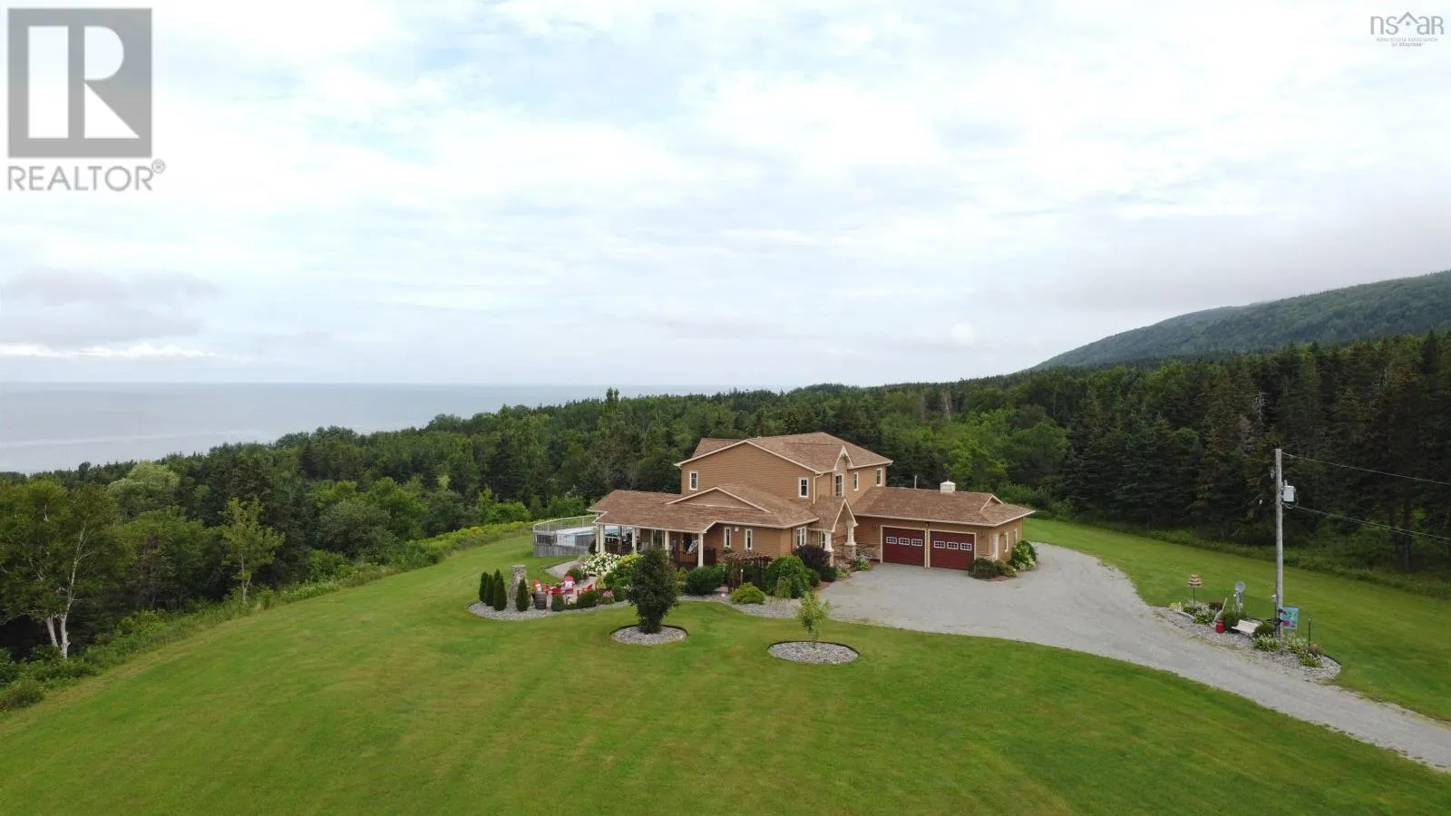Hwy 19 to Creignish to MacDonald Drive, house is at end of the road on left hand side. Signs on property See 'Virtual Walk-through Tour' & floor plans. Welcome to this stunning luxury home located in the desirable community of Creignish in Inverness County overlooking the majestic Strait of Canso. Built in 2011, this spacious home sits on a generous 2.6 acre lot and features energy-efficient construction, earning an Energuide rating of 85. This magnificent home is designed to embrace the panoramic ocean views and stunning sunsets, best enjoyed from the extensive decking that overlooks the 30 above ground heated pool. As you step inside, you'll be greeted by the grandeur of 9 ft ceilings and a thoughtfully designed floor plan. The mn lvl boasts a gourmet kit that any chef would adore, complete with an island, custom cabinets, and high-end stainless appliances, including a dble wall oven, cooktop, microwave/steamer/trash comp/ garburator. The kitchen seamlessly flows into the formal DR, offering a perfect space for hosting gatherings with friends & family. From there, you can access the professionally landscaped grounds that create an inviting outdoor oasis w/stone walkways & outdoor stone fireplace for those cozy evenings under the stars. The LR on the main floor provides an inviting atmosphere & is adorned with a propane fireplace & W/O to the pool. The primary bedroom, also located on the main floor, comes with a luxurious 5-piece Ens. & 2 W/I closets, ensuring a private retreat. The upper level is spacious & features an open concept Fam Rm with B/I shelves, creating an ideal space for relaxation & leisure. Additionally, there are two more Bedrms & a 4-piece bath on this level, providing ample space for guests or family members. This home is a true gem, combining luxury, functionality, & breathtaking views in one magnificent pkg with over 4000 sq ft of finished living space, there is plenty of room to accommodate all your lifestyle needs. Don't miss the opportunity to own this remarkable property, just a short 10-minute drive to the town of Port Hawkesbury. (id:27476)