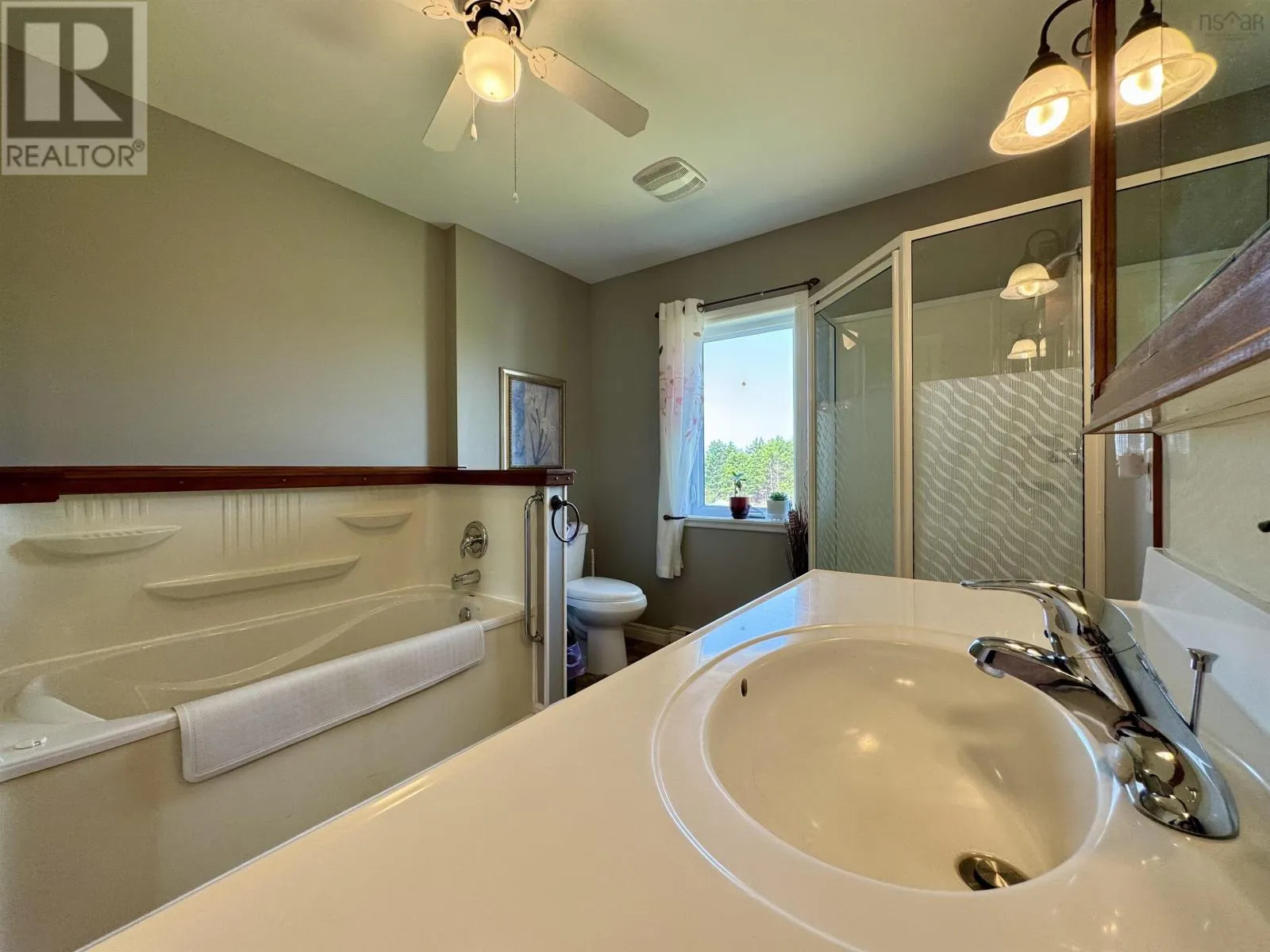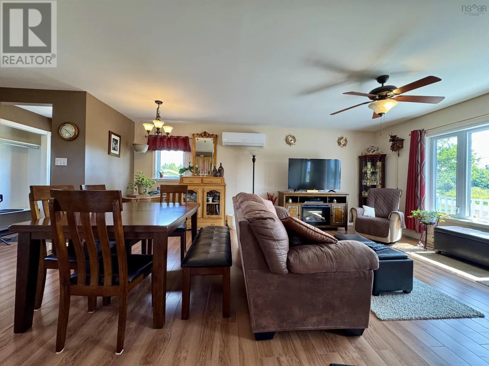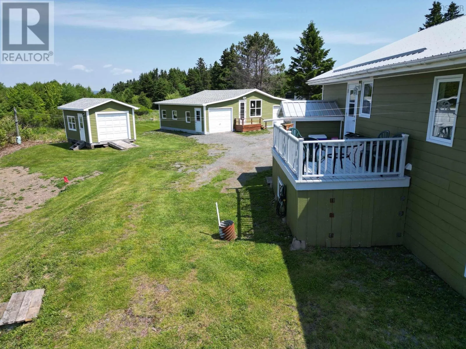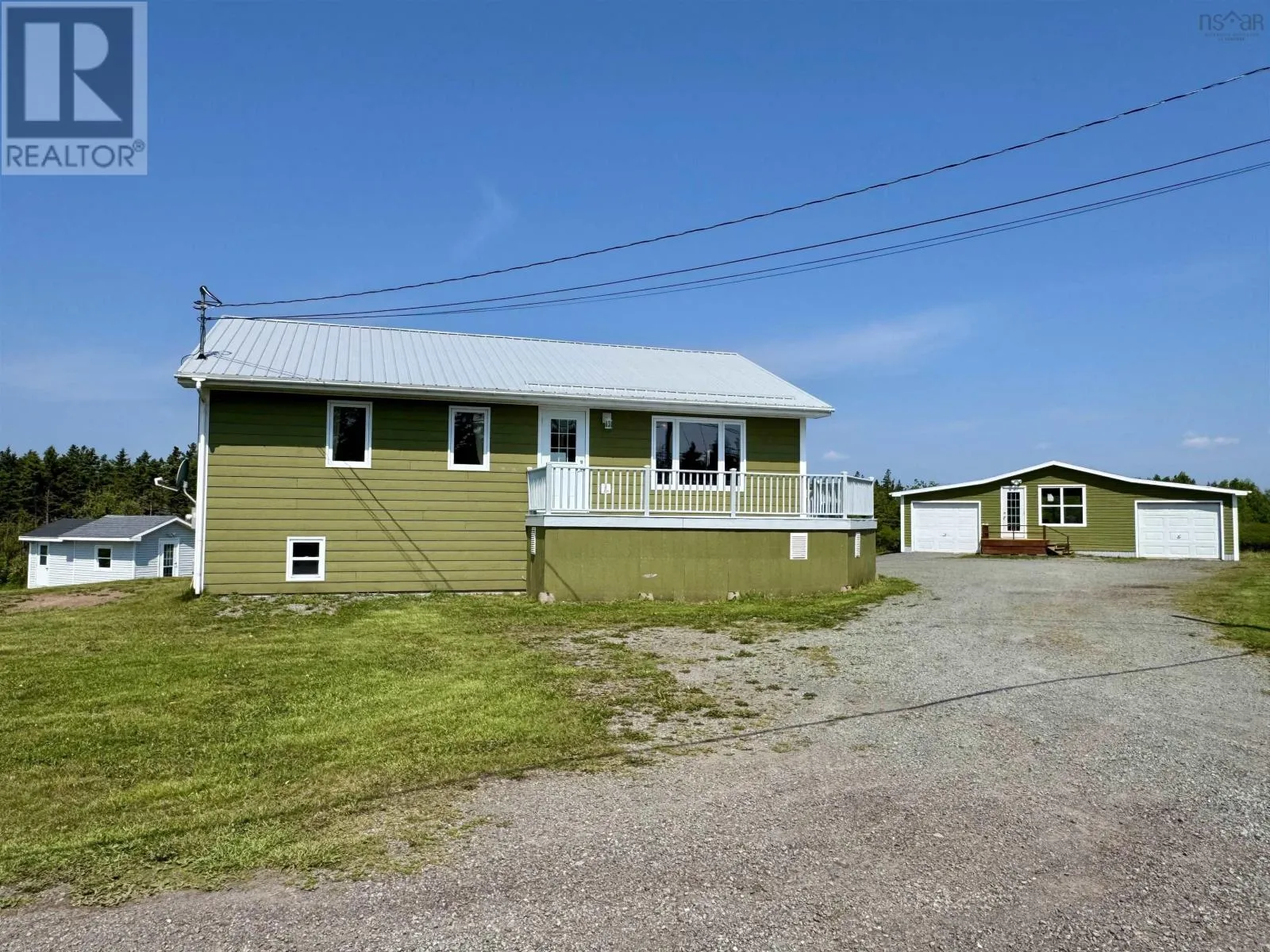 From Highway 104 take Exit 46 onto Highway 320. Continue on Highway 320 until arriving at house on the left. Look for sign! Set on a generous oceanfront lot with approximately 160 feet of shoreline, this well built two bedroom, one bath home offers stunning views, privacy, and space for future development. Located in the scenic and sought after community of DEscousse, the property includes a direct road to the water and a cleared area near the shoreline, ideal for building an additional structure or simply enjoying wide open waterfront access. Built just 15 years ago, the home features CanExel siding and a durable metal roof (new in 2023) for low maintenance coastal living. Step inside to a spacious, open concept main floor with a bright kitchen, dining, and living area; perfect for entertaining or everyday comfort. The large primary bedroom offers plenty of room to unwind, and the four piece bath includes both a stand up shower and a relaxing jetted tub. A separate laundry room adds convenience. With two efficient heat pumps and all new exterior doors installed in 2024, this home is move-in ready and offers tremendous potential for expansion or multi-generational living. Enjoy your morning coffee or summer BBQs from the walkout patio overlooking the water. The lower level, with its own private entry, features a generous rec room, a second bedroom, and a utility room making it ideal for guests, extended family, or the potential for a secondary suite. Two outbuildings add exceptional value: a double garage with separate bays, and a central gathering space with heat and electricity that could easily be converted into a cozy guesthouse or studio. Dont miss this opportunity to own a piece of Cape Breton coastline with room to dream and develop. (id:27476)