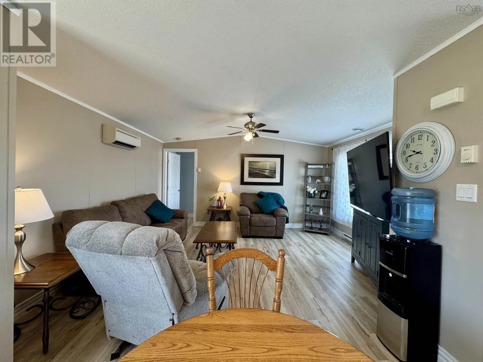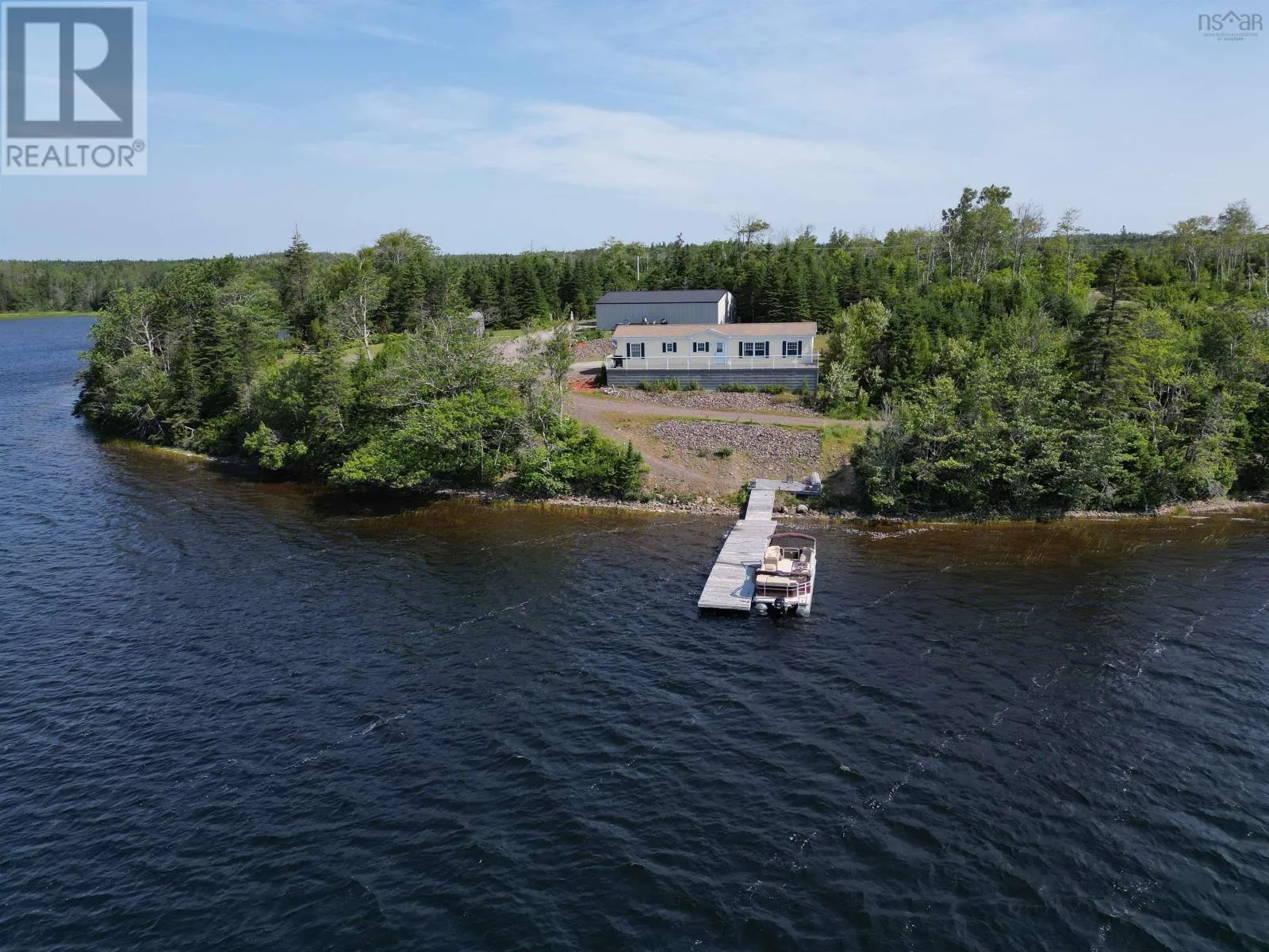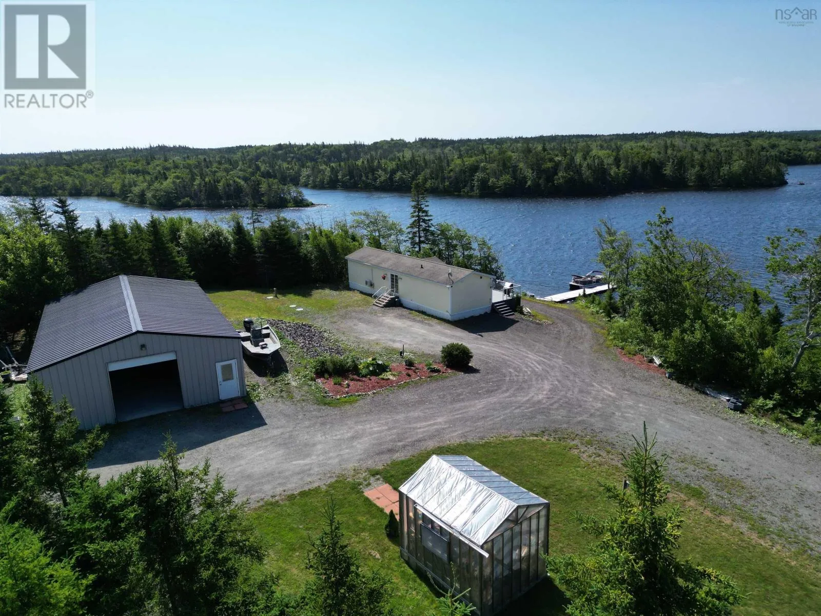 From Highway 104 take Exit 46 onto Highway 320. Continue on Highway 320 until taking right onto Grandique Rd. Continue on Grandique Rd until tuning right onto Brodies Rd. Go all the way to the end, house is on the left. Discover the perfect blend of relaxation and functionality with this two bedroom, one bath mini home perched above 500 feet of pristine waterfront on Grand Lake. Enjoy panoramic water views and direct access to the lake with a floating dock for your powerboat, plus a separate launch area ideal for kayaks and canoes. A massive 30 x 50 shop offers endless possibilities; currently configured with two finished, heated rooms (each with its own heat pump) while still leaving plenty of space to store a boat or recreational gear. For added versatility, there is a leveled pad with electrical hookups for a camper or RV; an excellent opportunity to generate supplemental income by renting it out during the tourism season. Whether you are looking for a private lakeside getaway, a place to enjoy outdoor adventures, or a property with income potential, this unique waterfront gem checks all the boxes. (id:27476)
