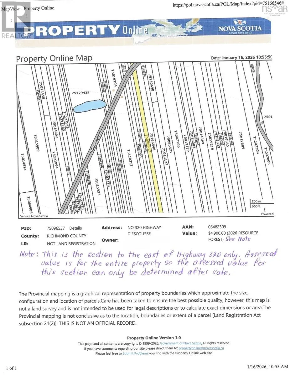 Highway 320 from community of D'Escousse to town of Arichat. On the Southwestern tip of Cape Breton Island, you will find a charming little Island retreat called Isle Madame. On this beautiful little Island, you will discover some of Nova Scotia's best places for kayaking, fishing, hunting, surfing, hiking, ATV and bike riding in the rough or on groomed trails, plus comfortable inns, bed and breakfasts, charming restaurants and cafés, fish markets and spectacular seaside views from just about everywhere. You will also discover beaches, lighthouses and other amazing sights wherever you go. This hidden gem is where Acadian culture lives on through song, music, dance and crafts. You can own a small piece of this island paradise at a very affordable price. This property takes in approximately 12.1 acres of vacant woodland beginning on the east side of Highway 320 and running all the way to the general rear line of DEscousse lots. The property is a short walk to the DEscousse Harbour and the Lennox Passage Yacht Club, ideally located for boaters sailing in and out of the Bras DOr Lakes. This is an ideal property for a home, cottage or camp. (id:27476)