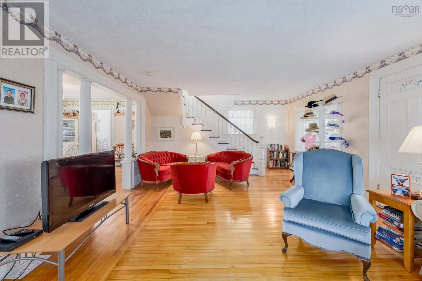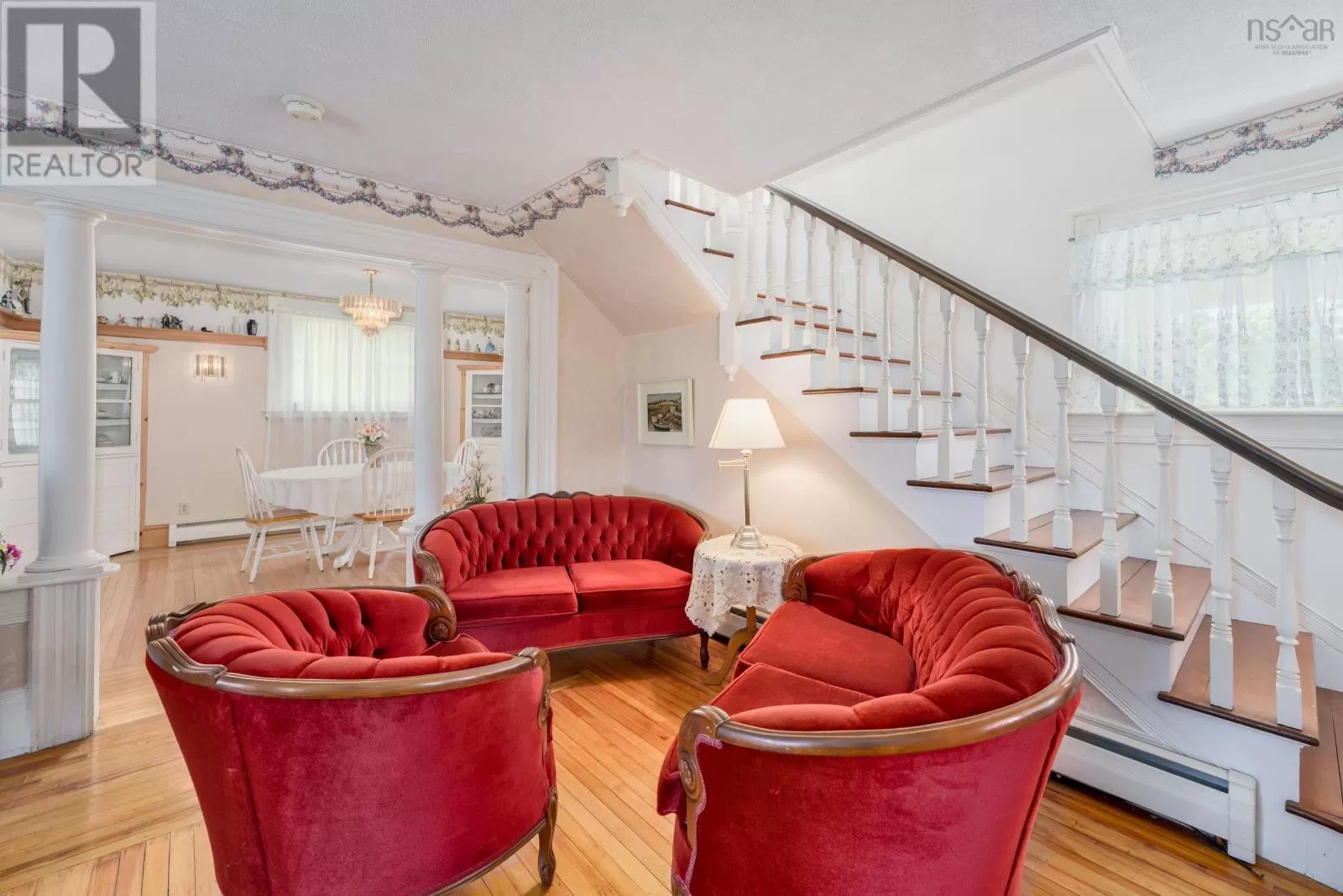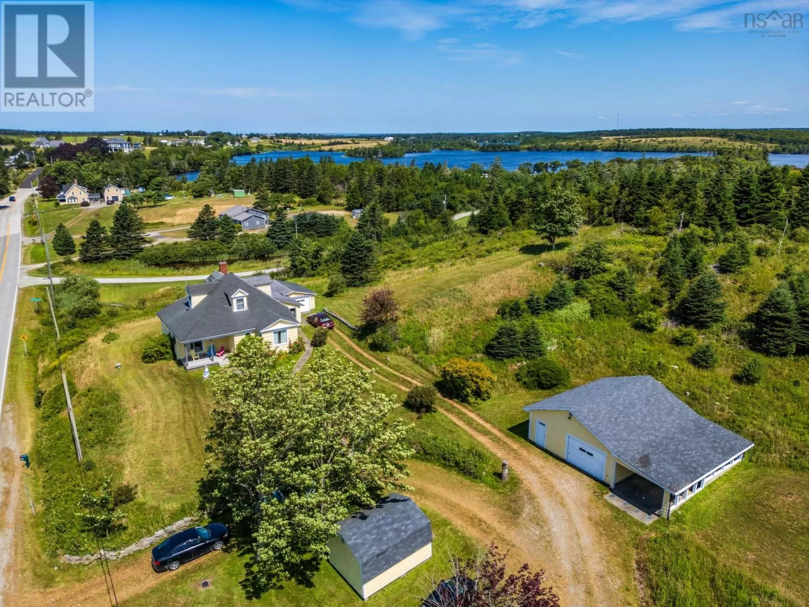 From Yarmouth on Highway 1 to Darlings Lake, to civic #2504. Property will be on right. Charming Country Retreat with Lake and Ocean Views. Discover the perfect blend of charm, comfort, and opportunity with this unique 3-bedroom, 1.5-bath country home, nestled on a landscaped +/- 4-acre lot just minutes from Yarmouth. Set in a tranquil, park-like setting with flowering shrubs, and hedges, this property offers privacy, natural beauty, and stunning westerly ocean views the perfect backdrop for unforgettable sunsets. Step inside to find a warm and inviting interior with hardwood floors throughout, a spacious open-concept layout, and plenty of natural light. The large living room is ideal for relaxing or entertaining, while the kitchen offers ample space for meal prep. A cozy woodstove adds rustic charm and warmth during cooler months, and the stately staircase leads to the upper level with two comfortable bedrooms. The third bedroom on the main floor could easily serve as a home office, den, or guest room. Outside, the property features a covered front veranda perfect for enjoying morning coffee or evening breezes, along with a detached garage, carport, and a large storage shed ideal for a workshop, or hobby space. This property also includes PID # 90310665, its more than just a home its a lifestyle opportunity. Whether youre looking for a peaceful retreat, a family homestead, or a live/work property close to town, this one has it all and it's priced to sell. (id:27476)