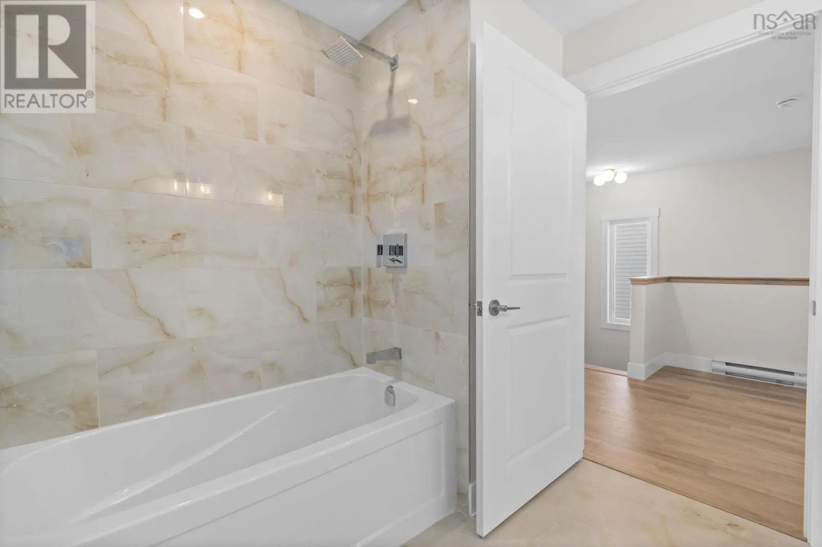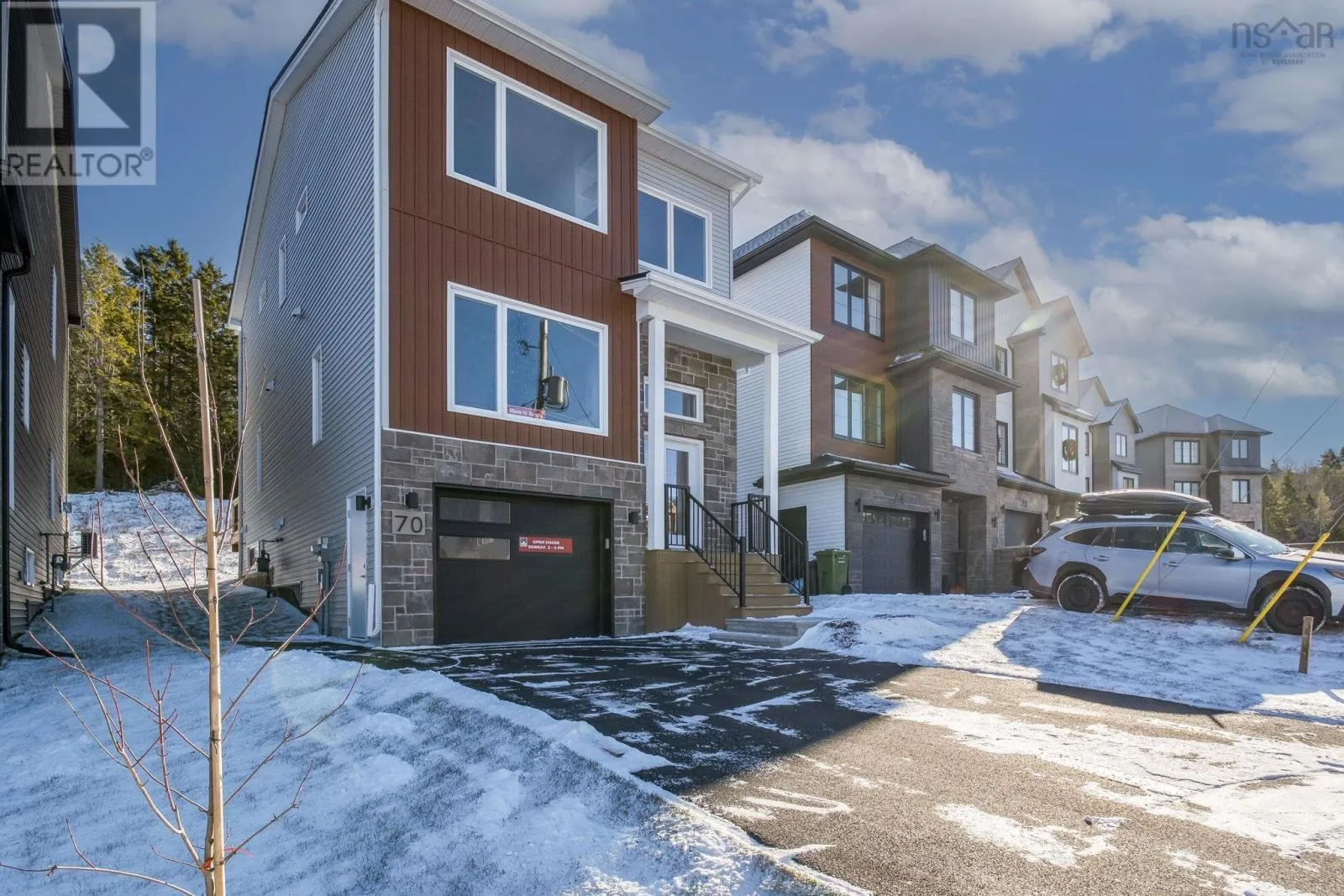 Waverley Road to Terrastone Ridge. Right on Pearlgarden Close Welcome to this stunning 3-bedroom, 2-storey home in the highly sought-after Parks of Lake Charles community, expertly built by Nexus Homes with exceptional craftsmanship and attention to detail. Designed for modern living, this home features a bright open-concept layout ideal for both everyday life and entertaining. The contemporary kitchen is equipped with quartz countertops, custom cabinetry, soft-close doors and drawers, and natural gas hookups for both the kitchen cooktop and outdoor BBQ, seamlessly flowing into a spacious living area filled with natural light and complemented by a cozy natural gas fireplace. The primary suite offers a peaceful retreat with a beautifully finished ensuite featuring a custom tile shower and a spacious closet, while two additional bedrooms provide flexibility for family, guests, or a home office. Elegant laminate and tile flooring, along with a ductless heat pump on the main level, ensure comfort and efficiency throughout. Complete with a private wood deck and a paved driveway, this home perfectly blends luxury, functionality, and modern design in one of Dartmouths most desirable neighbourhoods. (id:27476)