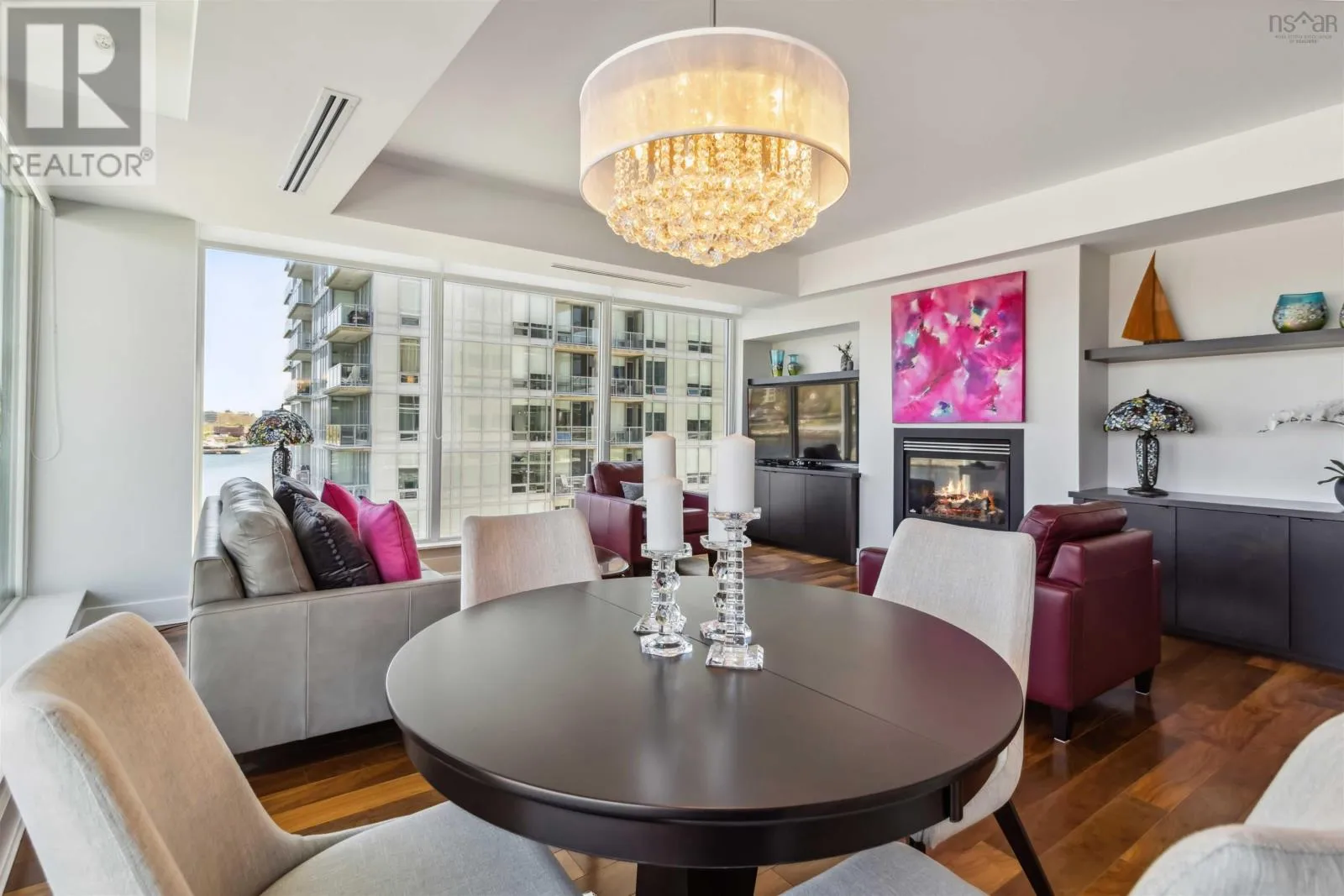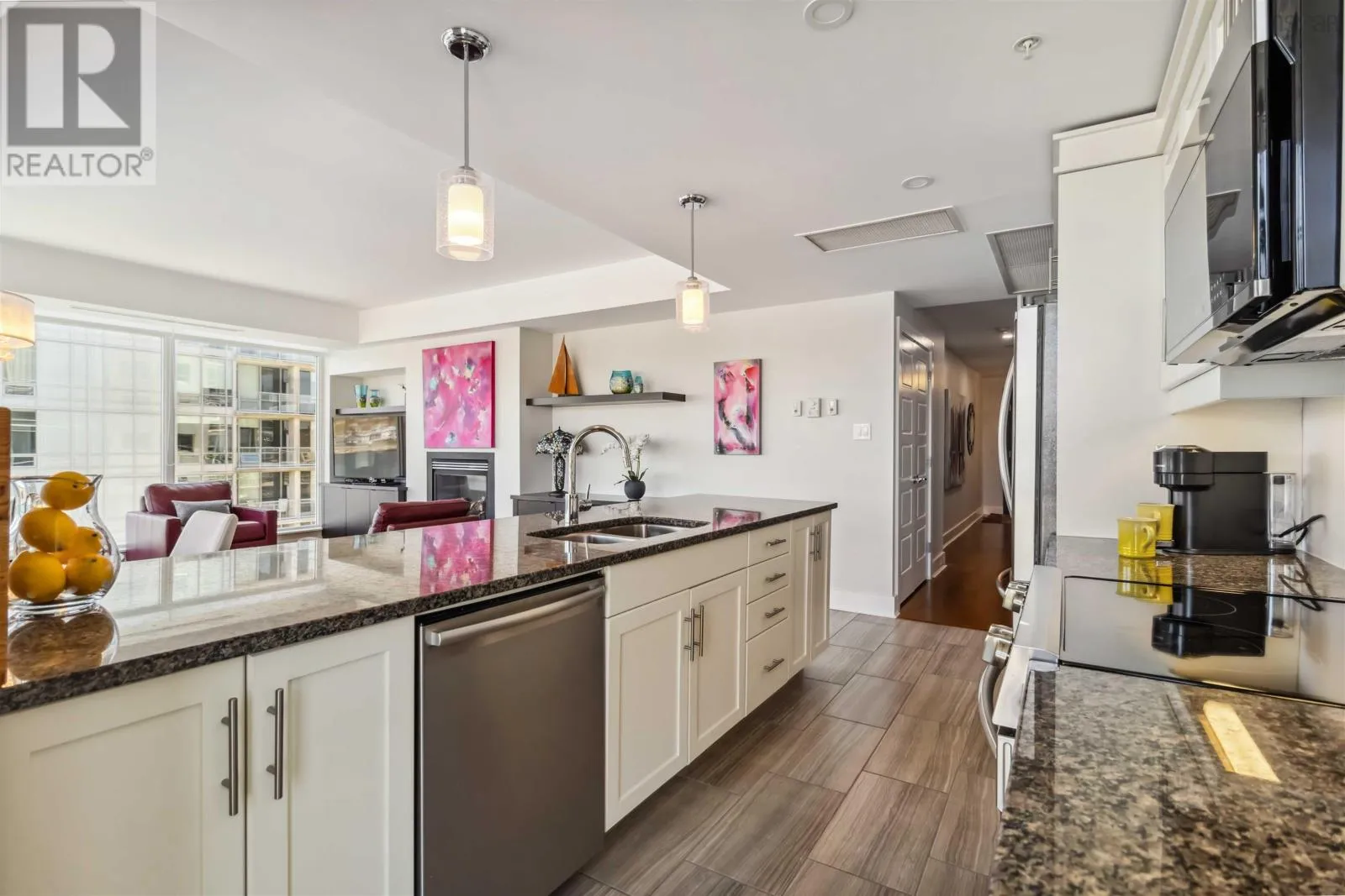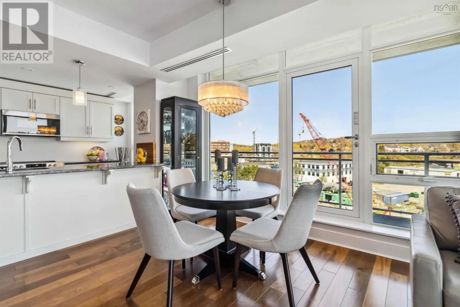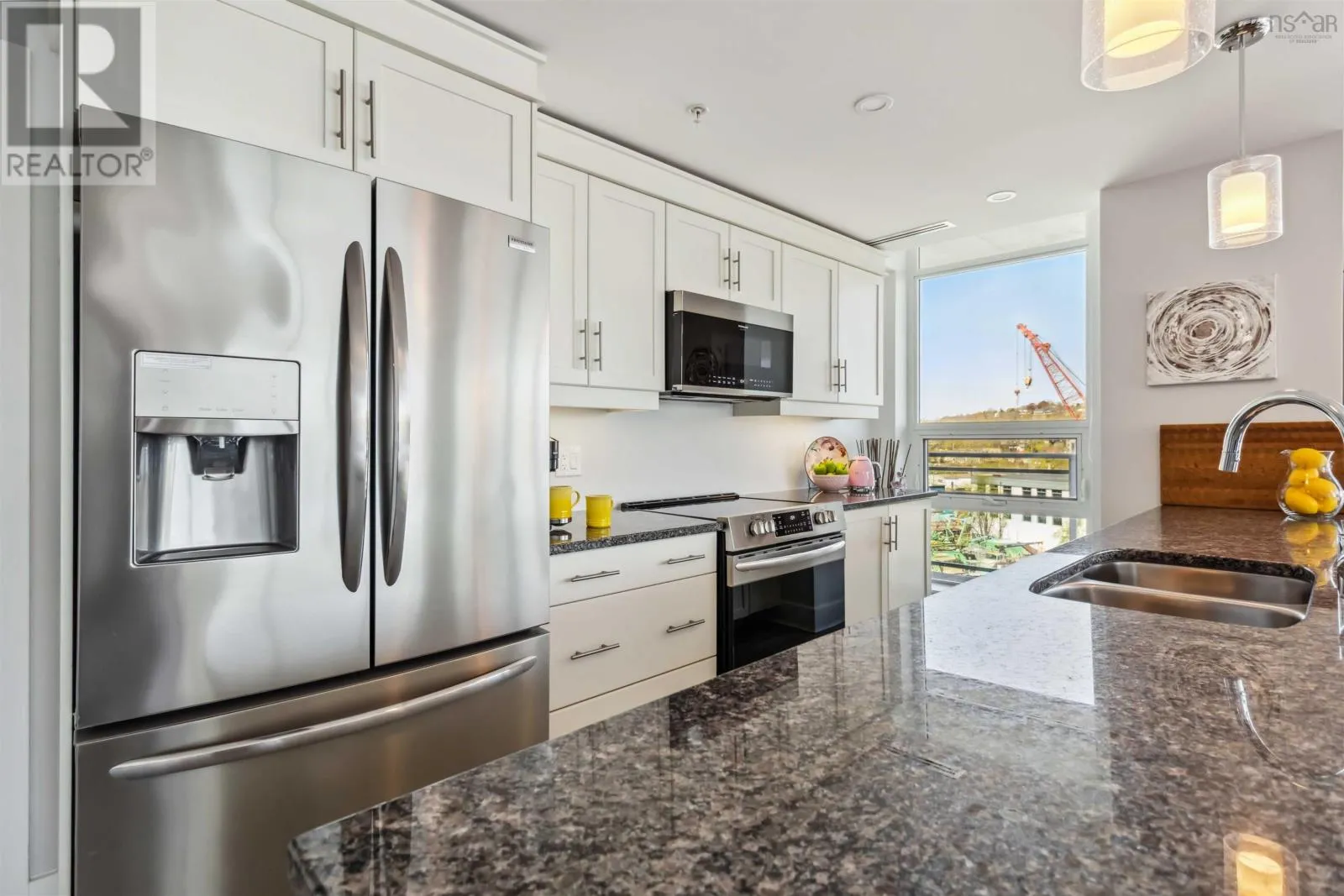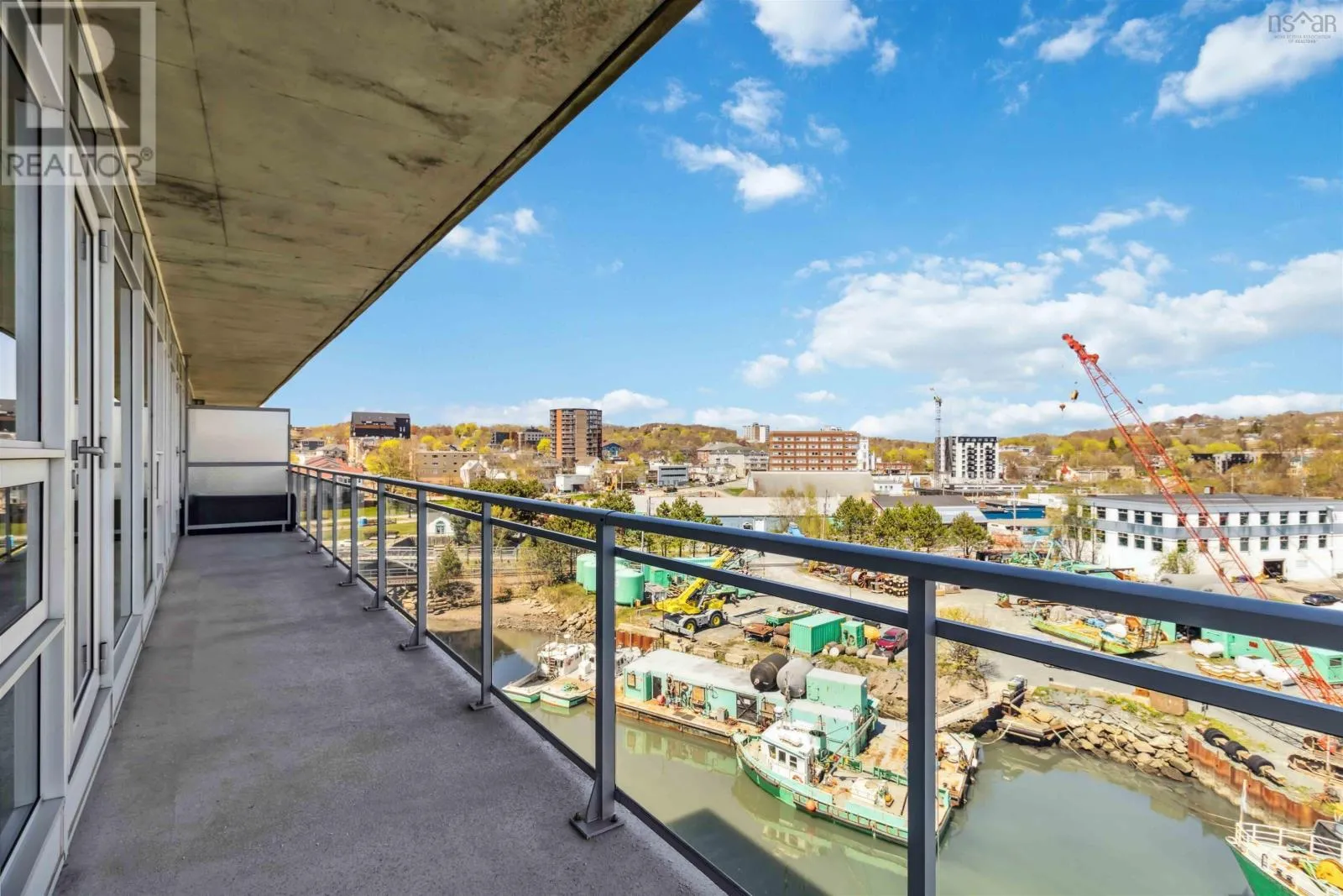 Alderney Drive to Kings Wharf Place - 2nd building on left The Keelson Welcome to Unit 502 ~ The Keelson at Kings Wharf, Dartmouths premier waterfront community. This spacious corner unit condo featuring 1,375 square foot two-bedroom, two-bath condo with a den and offers the perfect blend of comfort, style, and convenience with stunning waterviews. From the moment you walk in, youll appreciate the open-concept layout, high ceilings, and floor-to-ceiling windows that flood the space with natural light. The kitchen is a chefs dream with granite countertops, a large peninsula, and high-end stainless steel appliances (option for natural gas stove). Great room features natgas fireplace, stunning vistas and gleaming floors ~ ideal for flexible design for any decor. Quick access to the 42' long balcony that offers plenty of outdoor space and ideal for taking in the calm views of Dartmouth Cove and the city beyond. The primary suite features double closets and a spa-inspired ensuite with a walk-in shower an deep soaker tub + bonus access to balcony. The den offers flexible space for a home office or media room, while the second bedroom and main bath provide privacy and functionality for family or visitors. Immaculate throughout, pre-inspected and well maintained the condo boasts custom built in cabinetry, custom window coverings and is move in ready. The Keelson building includes fitness room, guest suite ($), social room, parking & storage, on-site resident Super, professional property management and the condo offers ducted heating & air conditioning throughout. Condo fees include h&c water, heat, a/c & natural gas for stove & fireplace in a pet friendly building. Enjoy morning coffee or evening sunsets can be enjoyed on your private balcony with harbour views all while located just steps from the Alderney Ferry, cafés, restaurants, library, specialty shops & services, marina and transit. Luxury condo living in the heart of Downtown Dartmouth. (id:27476)