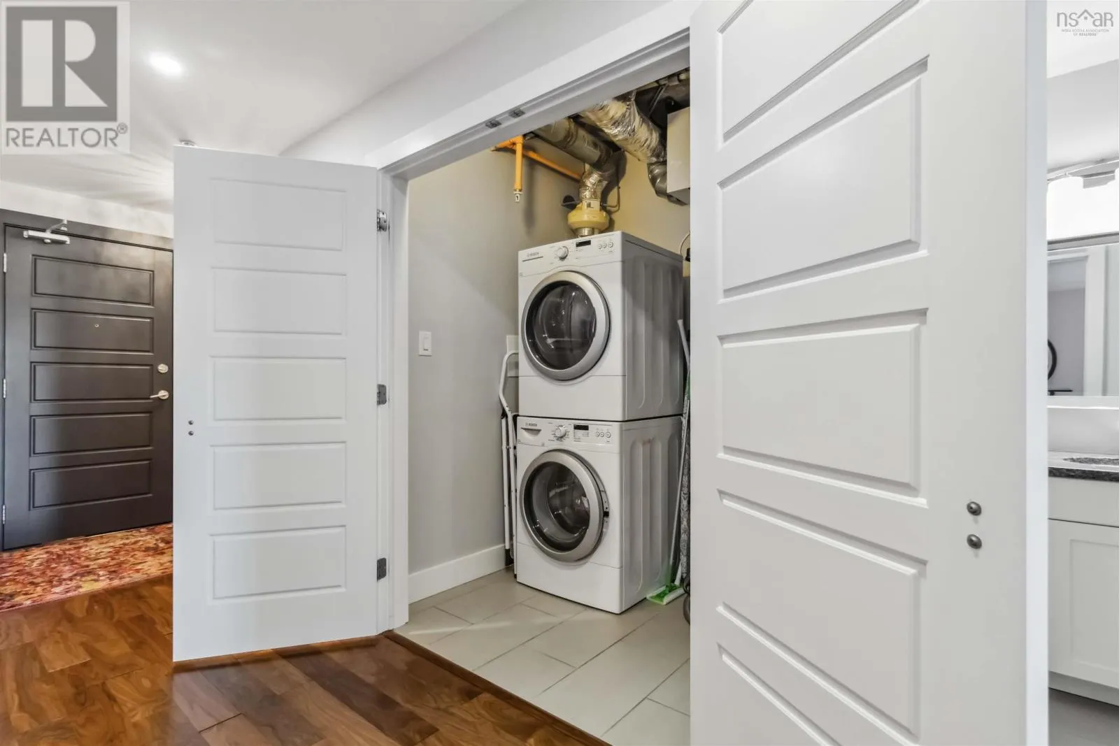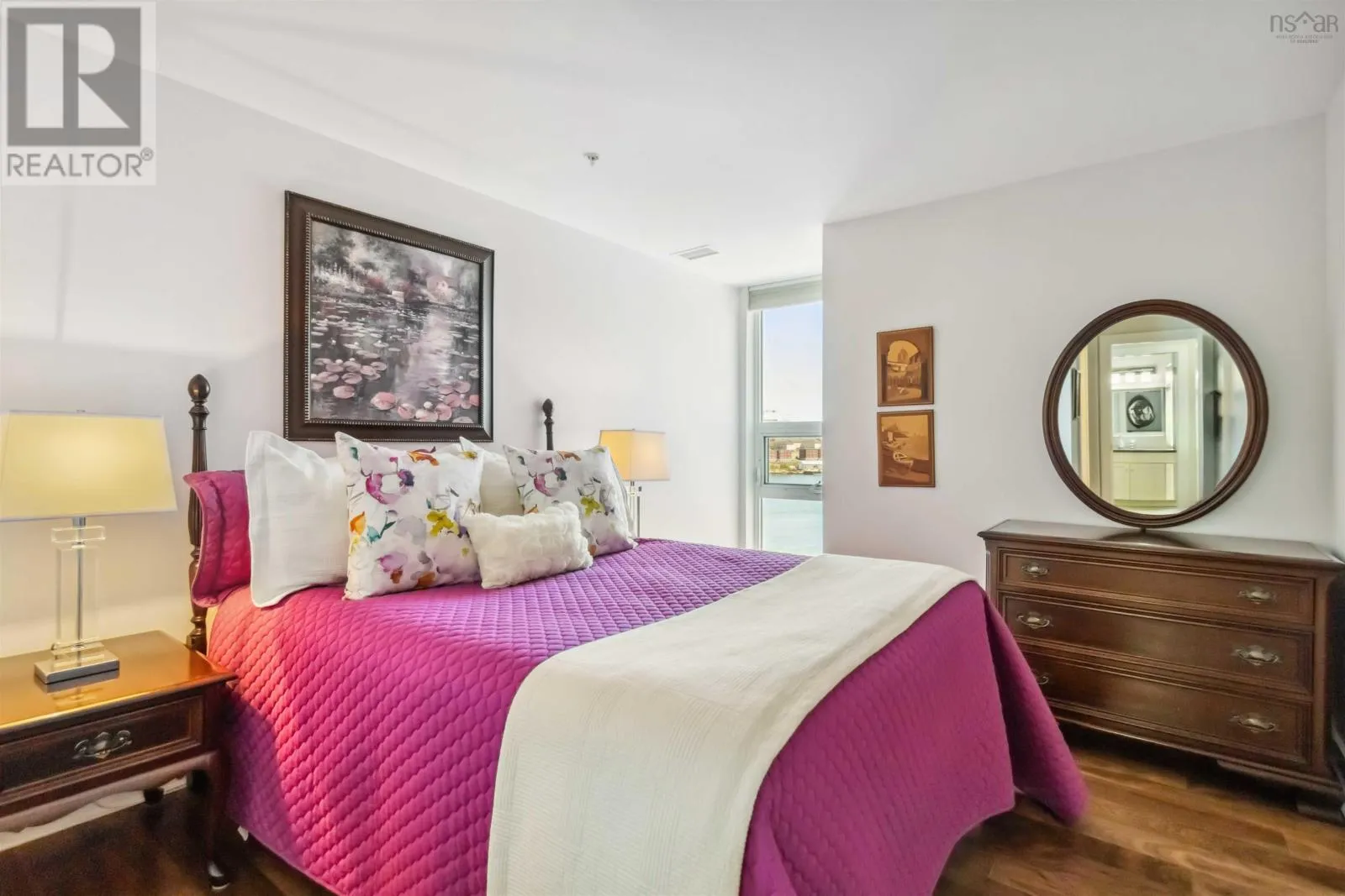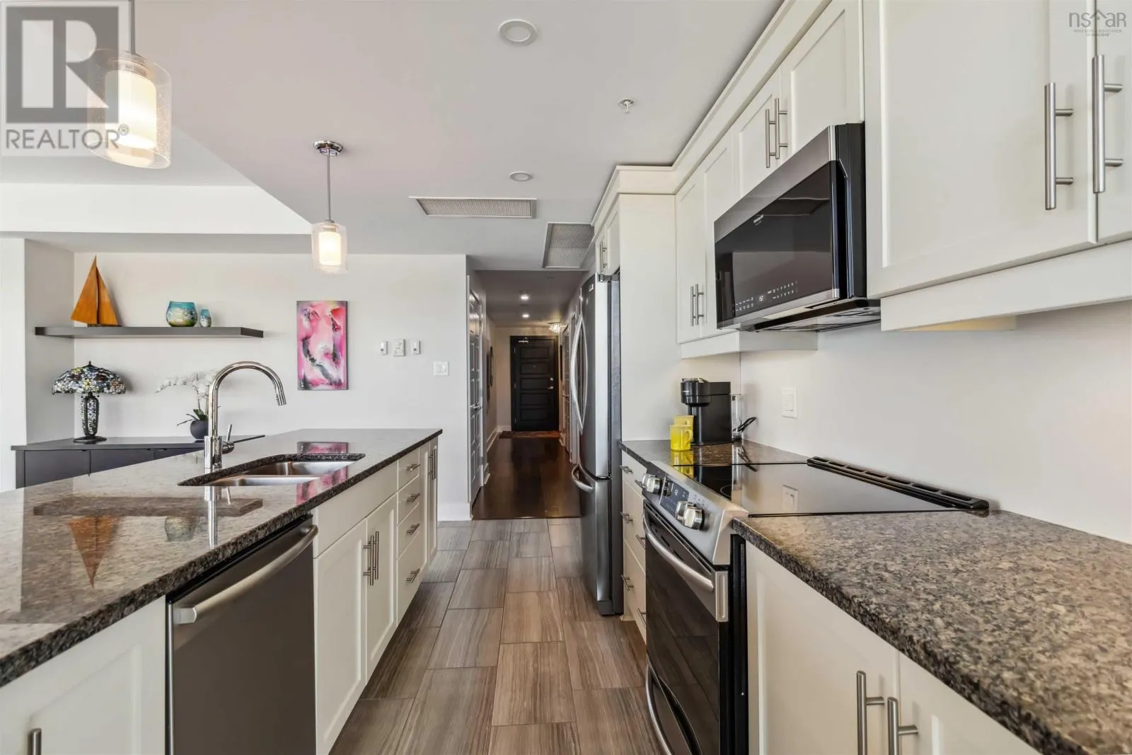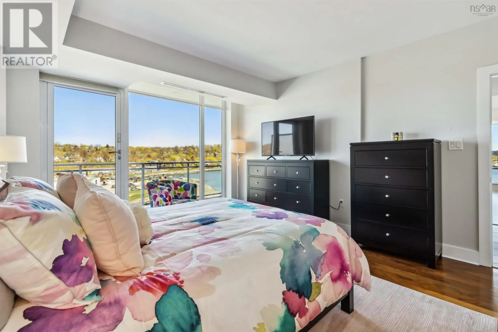 Alderney Drive to Kings Wharf Place - 2nd building on left The Keelson Welcome to Unit 502 ~ The Keelson at Kings Wharf, Dartmouths premier waterfront community. This spacious corner unit condo featuring 1,375 square foot two-bedroom, two-bath condo with a den and offers the perfect blend of comfort, style, and convenience with stunning waterviews. From the moment you walk in, youll appreciate the open-concept layout, high ceilings, and floor-to-ceiling windows that flood the space with natural light. The kitchen is a chefs dream with granite countertops, a large peninsula, and high-end stainless steel appliances (option for natural gas stove). Great room features natgas fireplace, stunning vistas and gleaming floors ~ ideal for flexible design for any decor. Quick access to the 42' long balcony that offers plenty of outdoor space and ideal for taking in the calm views of Dartmouth Cove and the city beyond. The primary suite features double closets and a spa-inspired ensuite with a walk-in shower an deep soaker tub + bonus access to balcony. The den offers flexible space for a home office or media room, while the second bedroom and main bath provide privacy and functionality for family or visitors. Immaculate throughout, pre-inspected and well maintained the condo boasts custom built in cabinetry, custom window coverings and is move in ready. The Keelson building includes fitness room, guest suite ($), social room, parking & storage, on-site resident Super, professional property management and the condo offers ducted heating & air conditioning throughout. Condo fees include h&c water, heat, a/c & natural gas for stove & fireplace in a pet friendly building. Enjoy morning coffee or evening sunsets can be enjoyed on your private balcony with harbour views all while located just steps from the Alderney Ferry, cafés, restaurants, library, specialty shops & services, marina and transit. Luxury condo living in the heart of Downtown Dartmouth. (id:27476)