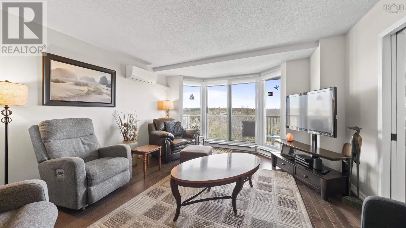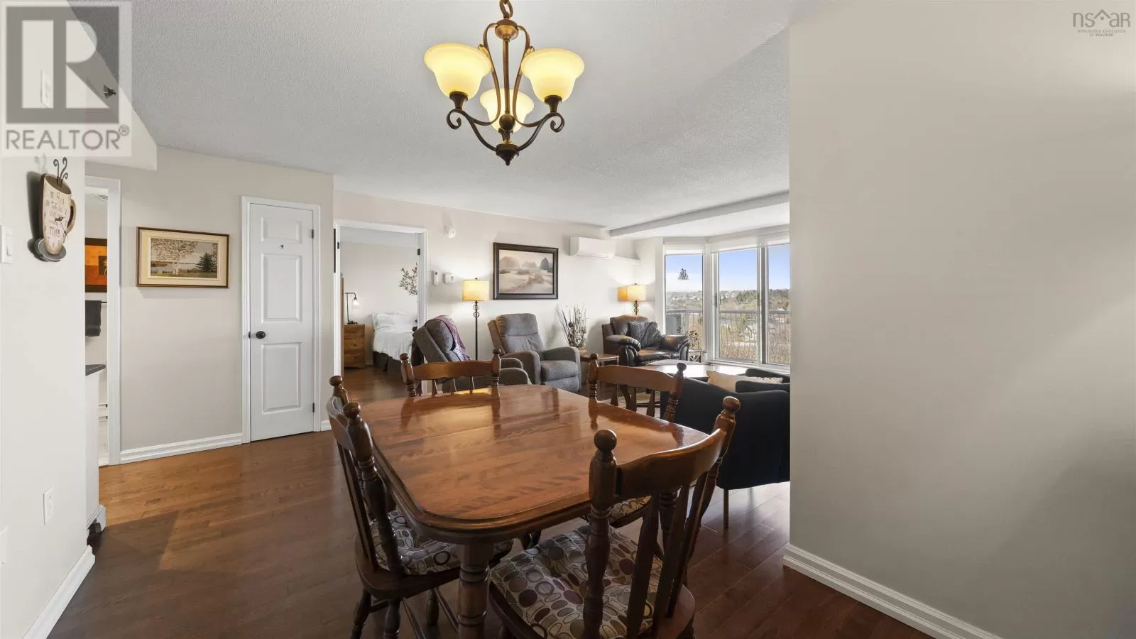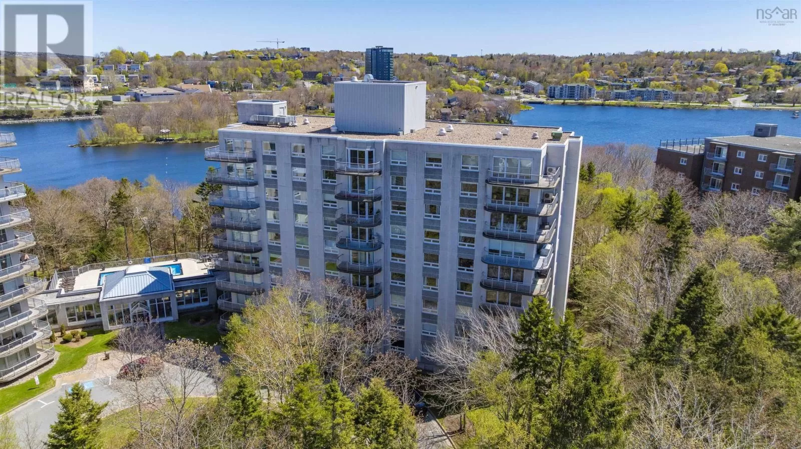 Mic Mac Blvd to Brookdale Crescent Rare Opportunity! Discover this 5th-floor central unit in one of Dartmouths most sought-after condominium communities. Ideally situated next to Lake Banook, this tastefully updated two-bedroom, two-bath condo offers a lifestyle many aspire to. Enjoy quick access to Brookdale Crescent Park Beach, where you can launch a canoe, kayak, or paddleboard. A five-minute walk connects you to the Trans Canada Trail and Shubie Parks extensive trail system. The remodeled kitchen boasts granite countertops, stainless steel appliances, and a generous pass-through to the dining area. From the living and dining rooms, enjoy beautiful panoramic views of mature trees, Lake Banook, and Lake Micmac. The spacious primary bedroom suite features a walk-through closet with ample storage leading to an updated private ensuite bath. A second renovated bathroom includes a walk-in shower. The second bedroom also makes an ideal home office or den. The energy-efficient heat pump, installed in 2022, ensures cool summers and low heating costs during the winter. At Lake Banook Woods, residents enjoy an inviting heated swimming pool with a large patio area, fitness room, workshop/woodshop, social room, and a guest suite. Includes indoor parking and a storage room. In addition to the impressive amenities, youll be steps away from scenic walking trails and lake activities. Youre minutes away from Dartmouth Crossing, the ferries, both harbour bridges, restaurants, and local parks. Come and see for yourself (id:27476)