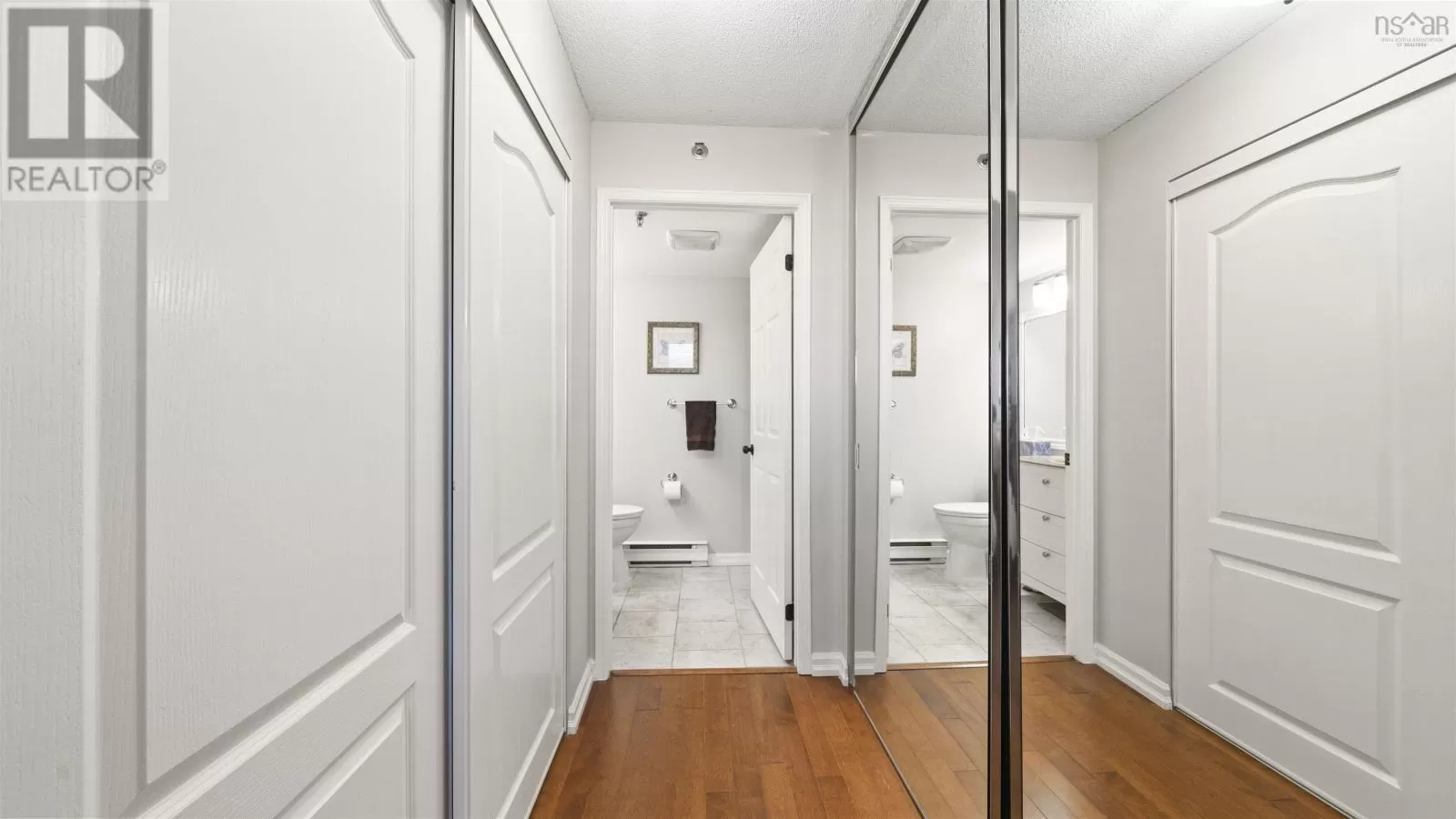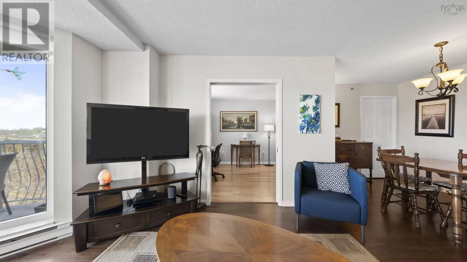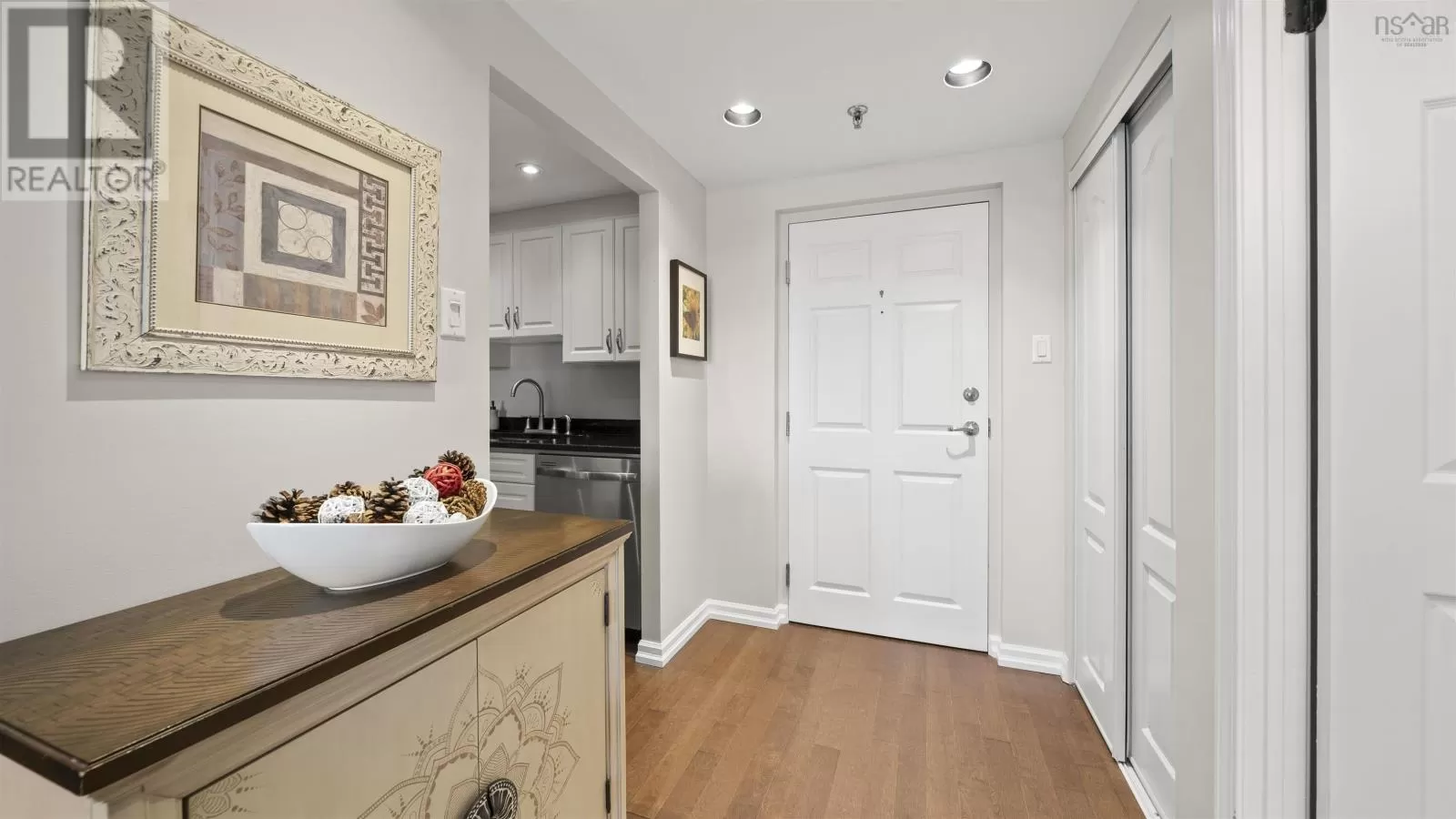 Mic Mac Blvd to Brookdale Crescent Rare Opportunity! Discover this 5th-floor central unit in one of Dartmouths most sought-after condominium communities. Ideally situated next to Lake Banook, this tastefully updated two-bedroom, two-bath condo offers a lifestyle many aspire to. Enjoy quick access to Brookdale Crescent Park Beach, where you can launch a canoe, kayak, or paddleboard. A five-minute walk connects you to the Trans Canada Trail and Shubie Parks extensive trail system. The remodeled kitchen boasts granite countertops, stainless steel appliances, and a generous pass-through to the dining area. From the living and dining rooms, enjoy beautiful panoramic views of mature trees, Lake Banook, and Lake Micmac. The spacious primary bedroom suite features a walk-through closet with ample storage leading to an updated private ensuite bath. A second renovated bathroom includes a walk-in shower. The second bedroom also makes an ideal home office or den. The energy-efficient heat pump, installed in 2022, ensures cool summers and low heating costs during the winter. At Lake Banook Woods, residents enjoy an inviting heated swimming pool with a large patio area, fitness room, workshop/woodshop, social room, and a guest suite. Includes indoor parking and a storage room. In addition to the impressive amenities, youll be steps away from scenic walking trails and lake activities. Youre minutes away from Dartmouth Crossing, the ferries, both harbour bridges, restaurants, and local parks. Come and see for yourself (id:27476)