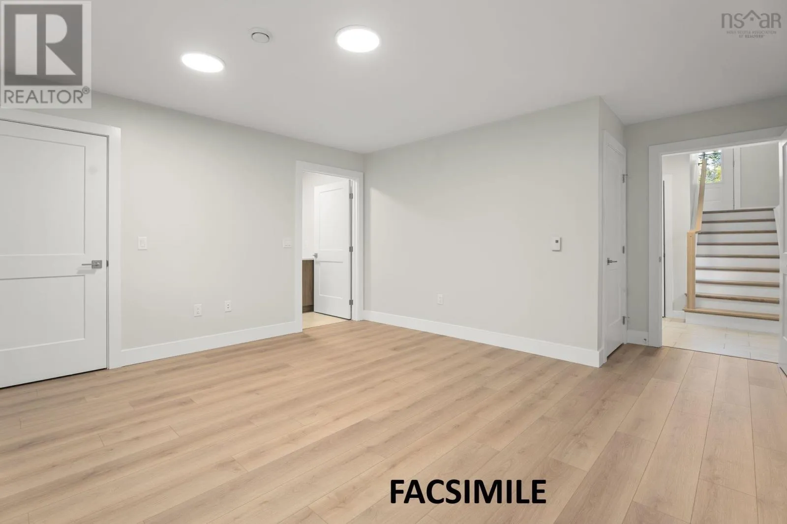 Waverley Road to Terrastone Ridge to Simona Drive The Semi-Detached Design Youve Been Waiting For in The Parks of Lake Charles! Offering nearly 2,200 sq. ft. of beautifully finished living space, The Pembroke blends functionality with modern comfort across three levels. The main floor impresses with multiple living areas - a family room, living room, dining area, and a spacious kitchen with a large island and quartz countertops - perfect for everyday living or entertaining. Sliding patio doors lead to a private, tree-lined backyard and deck, extending your living space outdoors. Upstairs, the primary suite offers a walk-in closet and a luxurious ensuite with double sinks and a custom tiled shower. Two additional bedrooms share a full bath with a shower/tub combination, while a conveniently located laundry room with built-in shelving adds extra practicality. The fully finished lower level includes a large rec room and full bathroom which is ideal for guests, teens, or a cozy media space. With two ductless heat pumps for year-round comfort, elegant hardwood staircases, and quartz surfaces throughout, this home delivers both efficiency and sophistication. (id:27476)