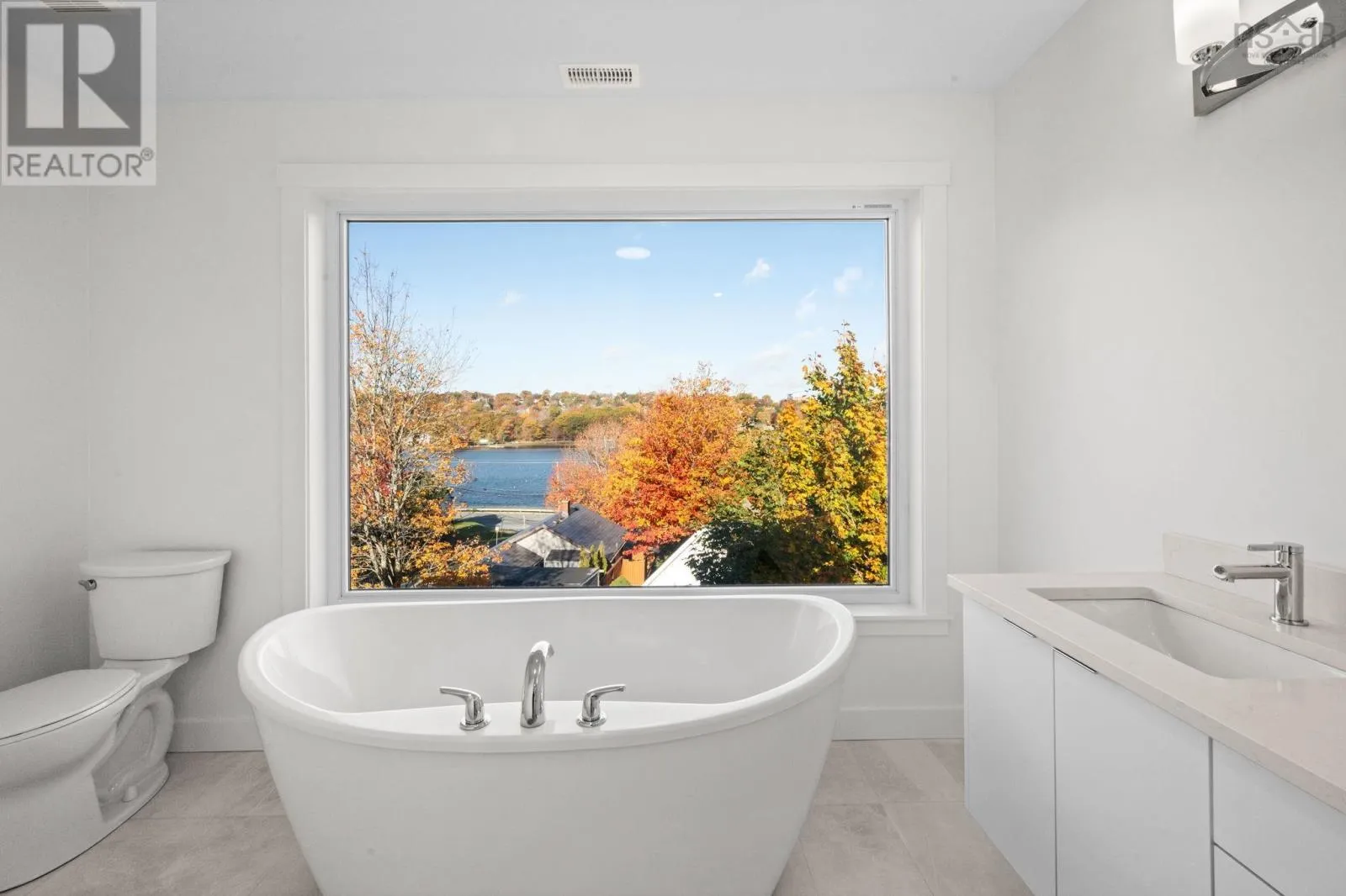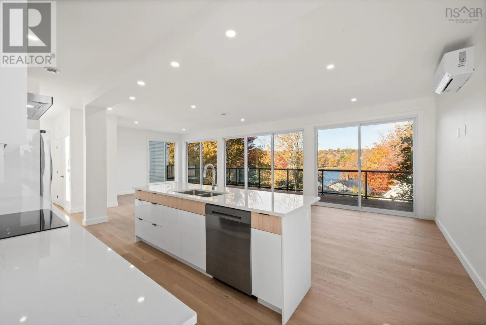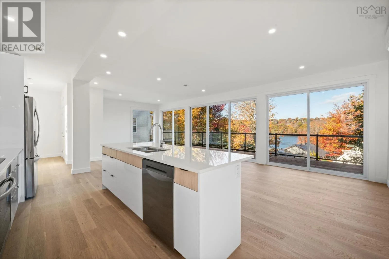 Prince Albert Road to Sinclair Street Spectacular new home overlooking Lake Banook in an outstanding area. Walk the trails around Sullivan's Pond and Lake Banook to Birch Grove Beach, watch world class paddling and events at the clubs, walk to the ferry or groceries. AMAZING! This brand new home will instantly impress with the large open spaces and massive windows for so much natural light. Main floor has a stunning kitchen with large island to gather family and guests around with views to the lake. Take the living and entertaining outside to the full length deck through sets of massive patio doors from the great room. Kitchen features quartz counters and a fabulous walk in pantry with a prep sink, plus new stainless steel appliances included. A Flex space is ideal for a separate dining room, tv room, home office or play room on the main floor. A discrete powder room for guests completes this level. Upstairs your Primary bedroom retreat will take your breath away with the gorgeous views, a large walk in closet and a spa-like ensuite bath with double raised and underlit vanity, separate shower and lovely soaker tub. Two more bedrooms up, a main bath and upper floor laundry make for a terrific upper level. Downstairs you will find a large rec room with bright patio doors, a wet bar, and another full bath. Hardwood floors on upper levels, laminate in the basement, ceramic in baths and foyer -- carpet free -- and the comfort of heat pumps. This is a rear opportunity for a brand new home in a super awesome location. (id:27476)