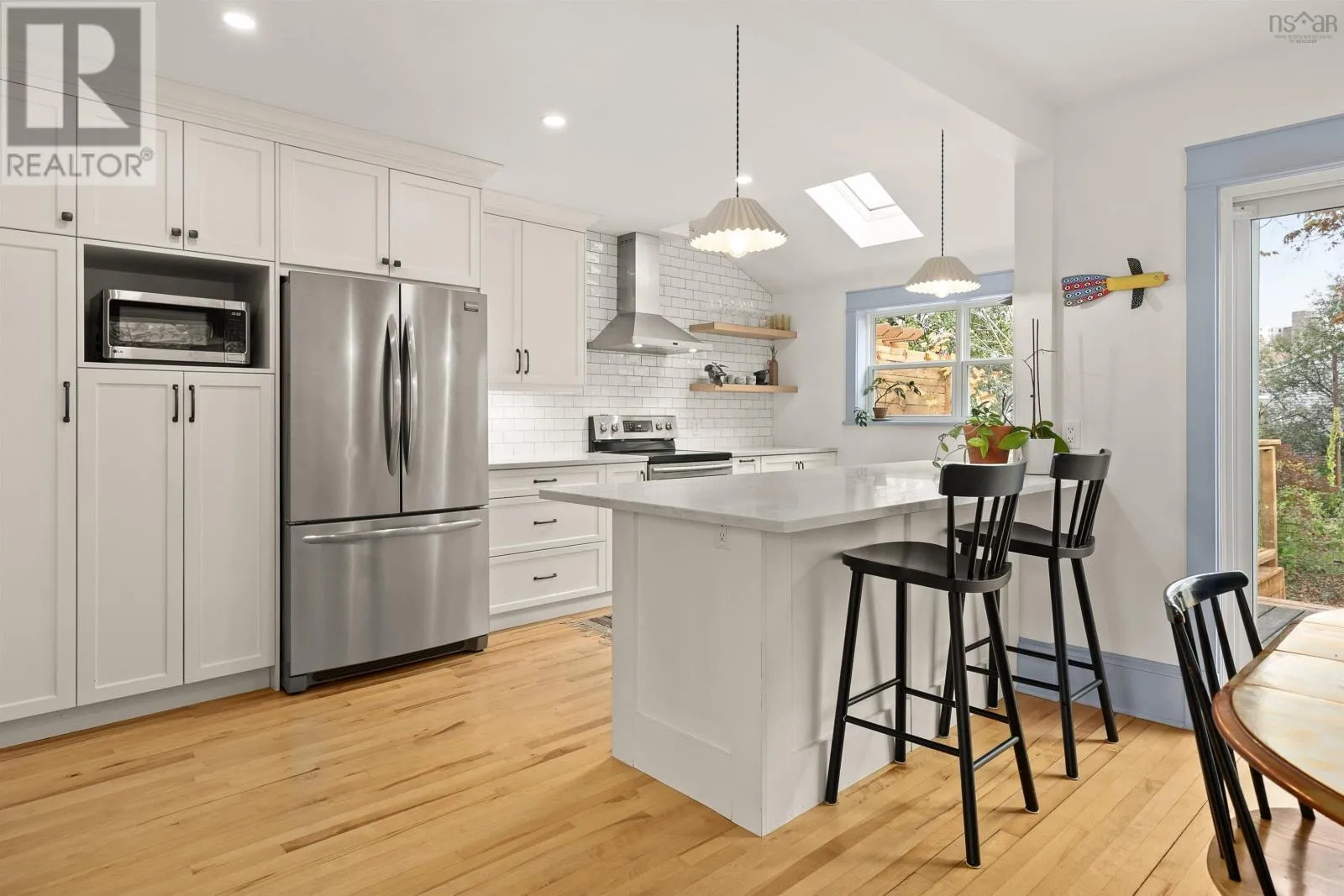 Ochterlony Street to Victoria Road. Welcome to 52 Victoria! This fully updated family home in the heart of Dartmouth is ready for its next chapter. The main floor has a wonderfully designed open concept living area, with beautiful hardwood floors and original details lovingly restored. Custom built-ins, designer light fixtures, and gracious space make the living room a lovely spot for entertaining family and friends. The fully renovated kitchen is well equipped for a chef with quartz counters and custom cabinets, and boasts tons of natural light through the windows and skylight. The updated deck off the living space is a great place to relax or entertain with aperitivo. The second level has a family bathroom, large primary bedroom, and 2 adorable children's or guest rooms. The lower level has been fully developed and renovated, and has a den currently used as a guest room, a second bathroom, and a lovely family room. There's also additional storage and a laundry room with a walkout to the backyard. The huge backyard is one of the largest in the area, and has beautiful landscaping and an additional large patio space. The large outbuilding/garage has a new roof and provides tons of additional storage space and lots of room for future development. All of this with parking for multiple vehicles, and steps from the ferry and tons of local restaurants and cafes. Book your showing today! (id:27476)