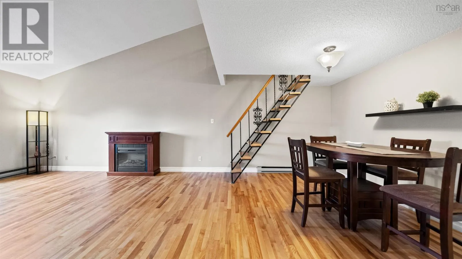 Portland Street to Manor Drive onto Peddars Way to Rose Way Welcome to Suite 9 at 4 Rose Way, a bright and inviting two-bedroom plus loft condo that offers comfort and convenience. With its own private entrance, this unit provides a sense of privacy and independence not often found in condo living. Inside, you'll find vaulted ceilings, fresh paint, and beautifully refinished hardwood floors that create an open, airy atmosphere filled with natural light. The spacious kitchen is both functional and welcoming, with plenty of room for cooking. The loft adds valuable flexible space for a home office, media area, or reading nook. The two large bedrooms are tucked away from the main living space, keeping the social areas lively and the sleeping spaces peaceful. The layout includes in-suite laundry, generous storage, and an easy flow between the living, dining, and kitchen area, making everyday living comfortable and convenient. Step out onto your balcony to enjoy afternoon sun and a lovely view of the neighbourhood. Located in the desirable Manor Park community, youre close to transit, parks, shopping, and dining, with quick access to the highway. Condo fees include water, parking space, snow removal, and exterior maintenance, making ownership simple and worry-free. With its move-in-ready condition, thoughtful design, and excellent location, Suite 9 at 4 Rose Way is a wonderful place to call home. (id:27476)