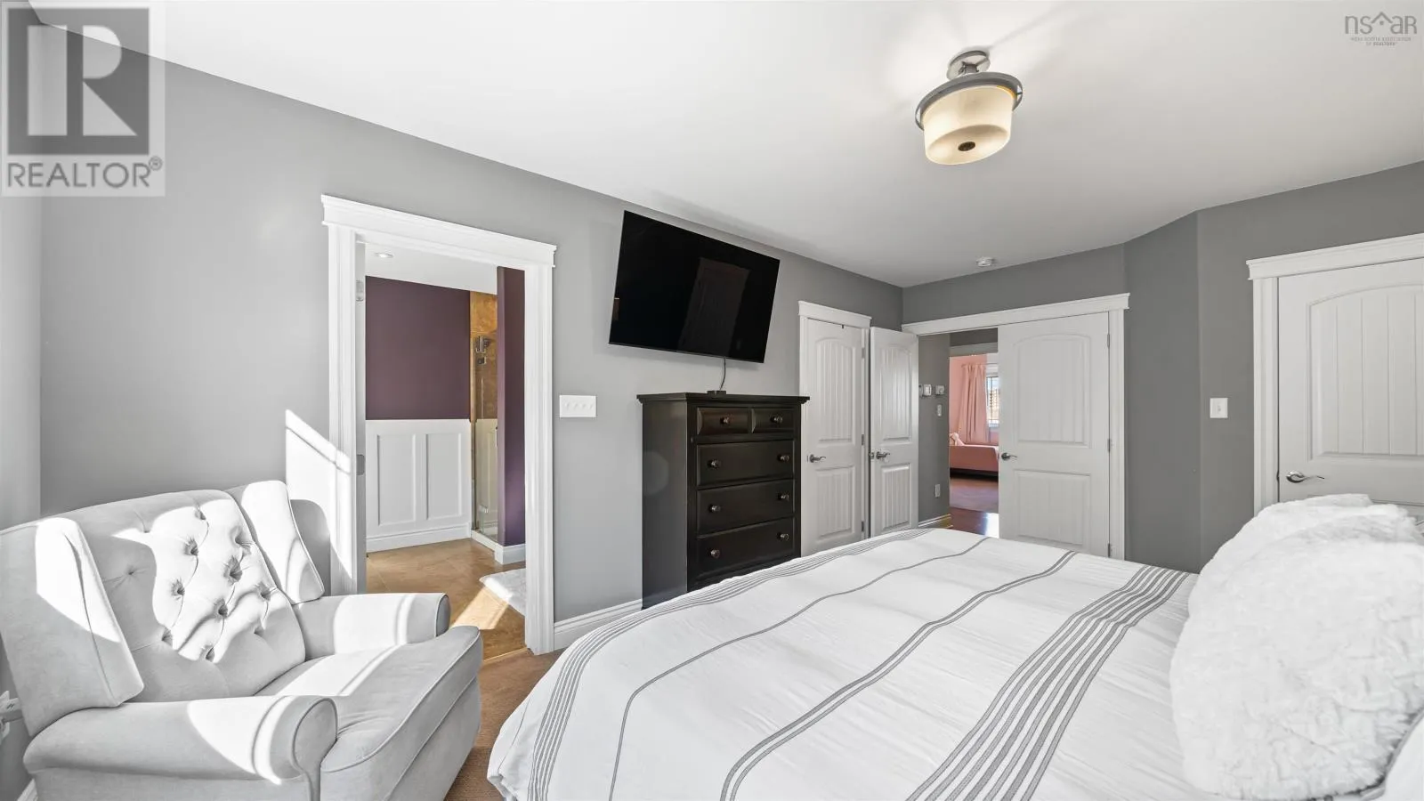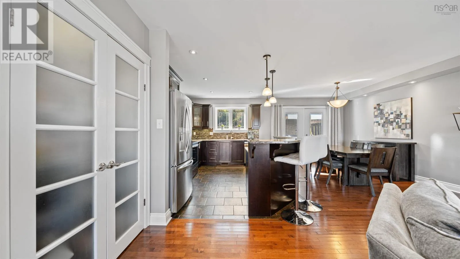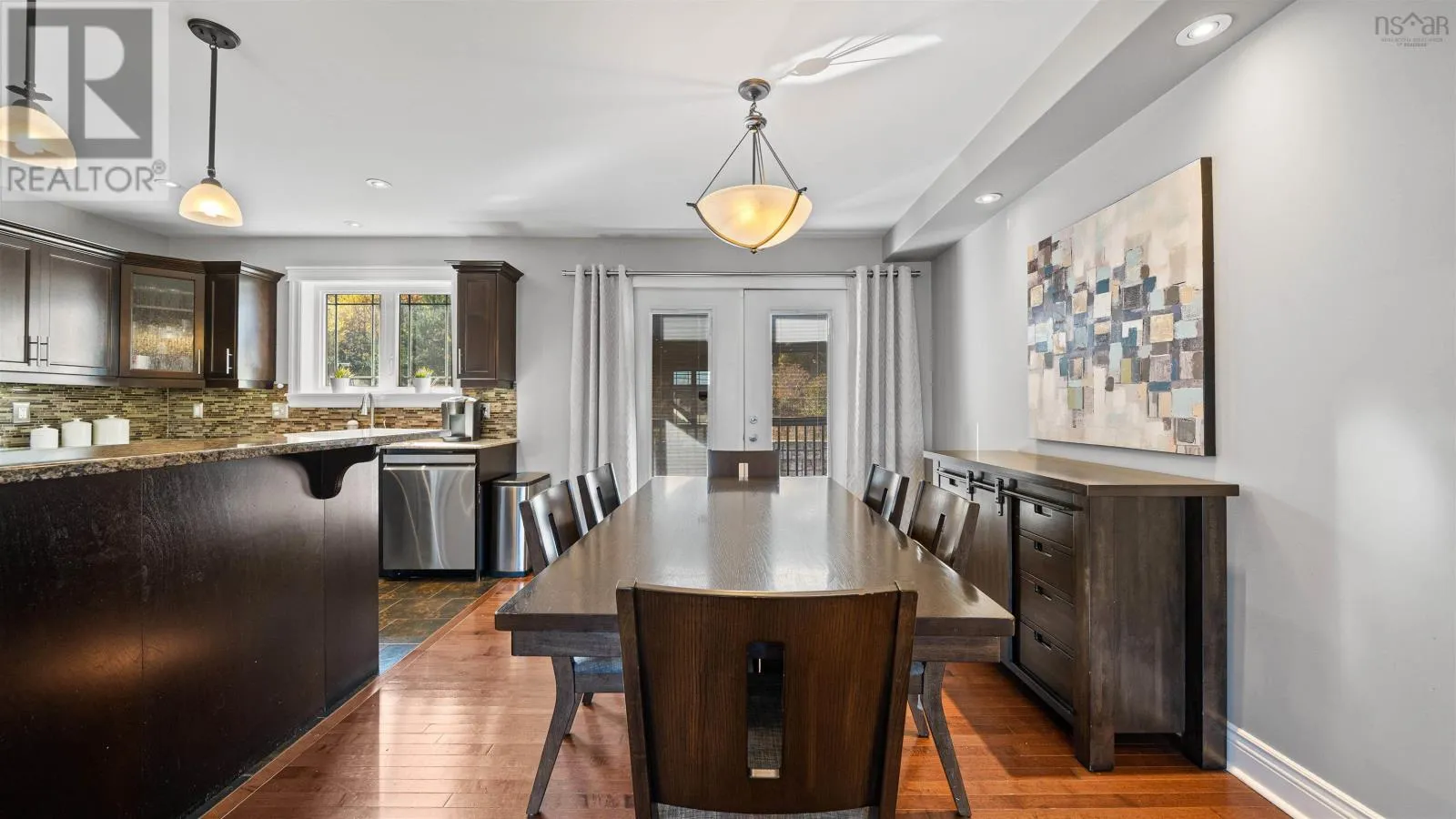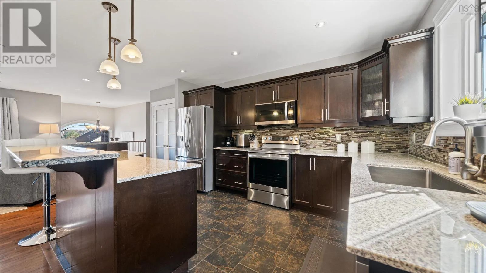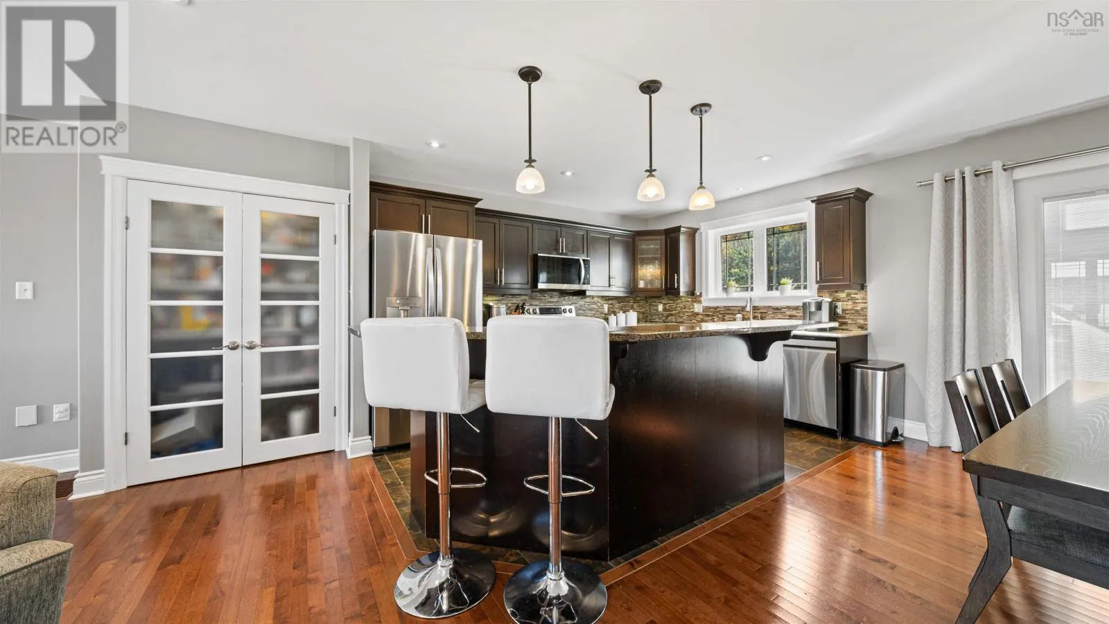 Baker Dr to Freshwater to Peachtree This gorgeous custom-built split-entry home is nestled in the highly sought-after community of Russell Lake Westwhere modern convenience meets natural beauty. Thoughtfully designed and impeccably maintained, this move-in-ready residence offers 4 bedrooms and 3 full bathrooms, perfectly suited for todays growing family. The bright, open-concept main level showcases a beautiful dark-stained birch kitchen with granite countertops, a center island, and stainless steel appliances. The seamless flow into the living and dining areas makes this space ideal for both relaxed family living and effortless entertaining. Through double doors, youll find a spacious primary suite featuring two custom walk-in closets and a luxurious ensuite complete with a double vanity, tile shower, and freestanding soaking tubyour very own spa-inspired retreat. Two additional bedrooms and a full bath complete the main level. Downstairs, 9-foot ceilings enhance the sense of space in the inviting family room, along with a fourth bedroom and another full bathroomperfect for guests, teens, or extended family. Step outside to a two-tiered back deck, ideal for summer barbecues and quiet evenings overlooking your private, level backyard that backs onto a serene greenbelt. Energy-efficient features include a heat pump and natural gas furnace, providing year-round comfort and savings. Located just minutes from bridges, shopping, medical clinics, schools, and sports fields, Russell Lake West offers the best of both worldstranquil living with urban convenience. This exceptional home truly has it allstyle, comfort, and location. Dont miss your chance to make it yours! (id:27476)