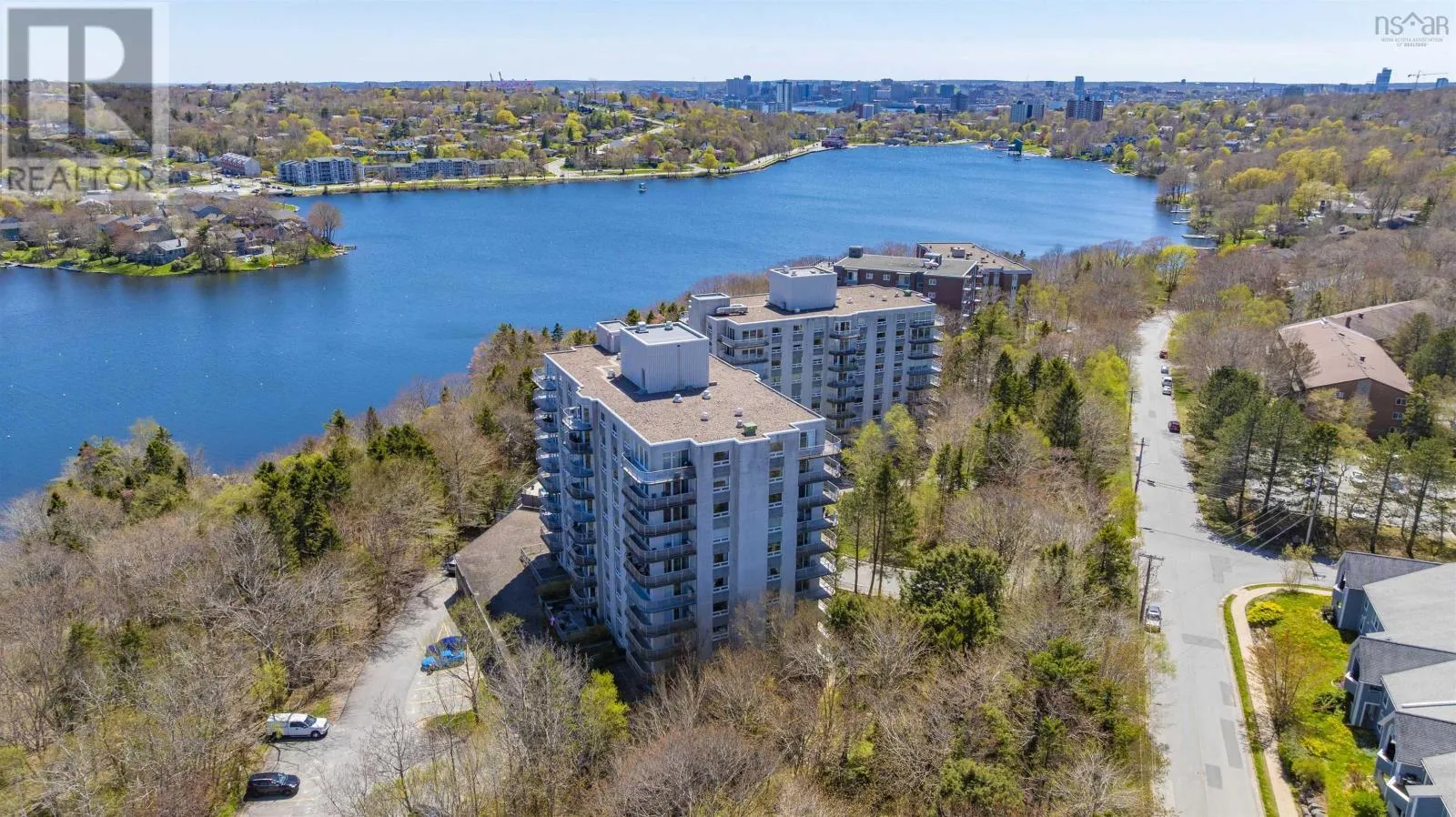 Mic Mac Blvd to Brookdale Crescent Rare Opportunity! Discover this 5th-floor central unit in one of Dartmouths most sought-after condominium communities. Ideally situated next to Lake Banook, this tastefully updated two-bedroom, two-bath condo offers a lifestyle many aspire to. Enjoy quick access to Brookdale Crescent Park Beach, where you can launch a canoe, kayak, or paddleboard. A five-minute walk connects you to the Trans Canada Trail and Shubie Parks extensive trail system. The remodelled kitchen boasts granite countertops, stainless steel appliances, and a generous pass-through to the dining area. From the living and dining rooms, enjoy beautiful panoramic views of mature trees, Lake Banook, and Lake Micmac. The spacious primary bedroom suite features a walk-through closet with ample storage leading to an updated private ensuite bath. A second renovated bathroom includes a walk-in shower. The second bedroom also makes an ideal home office or den. The energy-efficient heat pump, installed in 2022, ensures cool summers and low heating costs during the winter. At Lake Banook Woods, residents enjoy an inviting heated swimming pool with a large patio area, fitness room, workshop/woodshop, social room, and a guest suite. Includes indoor parking and a storage room. In addition to the impressive amenities, youll be steps away from scenic walking trails and lake activities. Youre minutes away from Dartmouth Crossing, the ferries, both harbour bridges, restaurants, and local parks. Come and see for yourself. (id:27476)