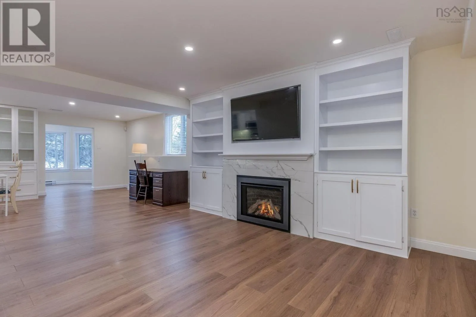 MicMac Blvd to Lakeshore Park Terrace This could be the year that you focus on your goals to spend less time commuting, spend more time having fun with your family, and perhaps find a home with enough room for extended family to be closer - and this could be the home that helps you accomplish all of that! This centrally located 4 bedroom, 3.5 bath home with direct waterfront on Lake Micmac, on a quiet cul de sac and close to all amenities has lots of space for the family plus a one bedroom suite on the lower level that was completely renovated with a sunroom added in 2022. The main level features a tiled entry with double closet, a spacious open concept living room/dining room with a bay window, an eat-in kitchen with a cozy window seat and an updated backsplash and quartz counters, an adjacent family room with a propane fireplace and patio doors to the back deck, a half bath, and a mud room/laundry room off the entrance to the double garage with epoxy floor. Upstairs there's a large primary bedroom with a sitting area overlooking the backyard & lake and a walk through double closet leading into the full ensuite, 2 other good-sized bedrooms plus a bonus room over the garage that could be used as an office, playroom or craft room, another full bath, plus plenty of storage. The bright lower level was completely renovated by MacFarlane Homes in 2022 and features and open living room/dining room/kitchen with custom built-in cabinets and shelves, a propane fireplace, a 3 piece bath with a glass-walled shower, in floor heat and stacking laundry, a large bedroom with a double closet, an added sunroom with lake views, a utility room with storage shelves plus a patio off the kitchen. As much as the house is wonderful, the natural feel of the backyard will put you at ease every day, with meandering flagstone paths, natural trees and shrubs, over 120' of waterfront with decks, a dock and plenty space for all your water toys - and a large deck for all the entertaining! (id:27476)