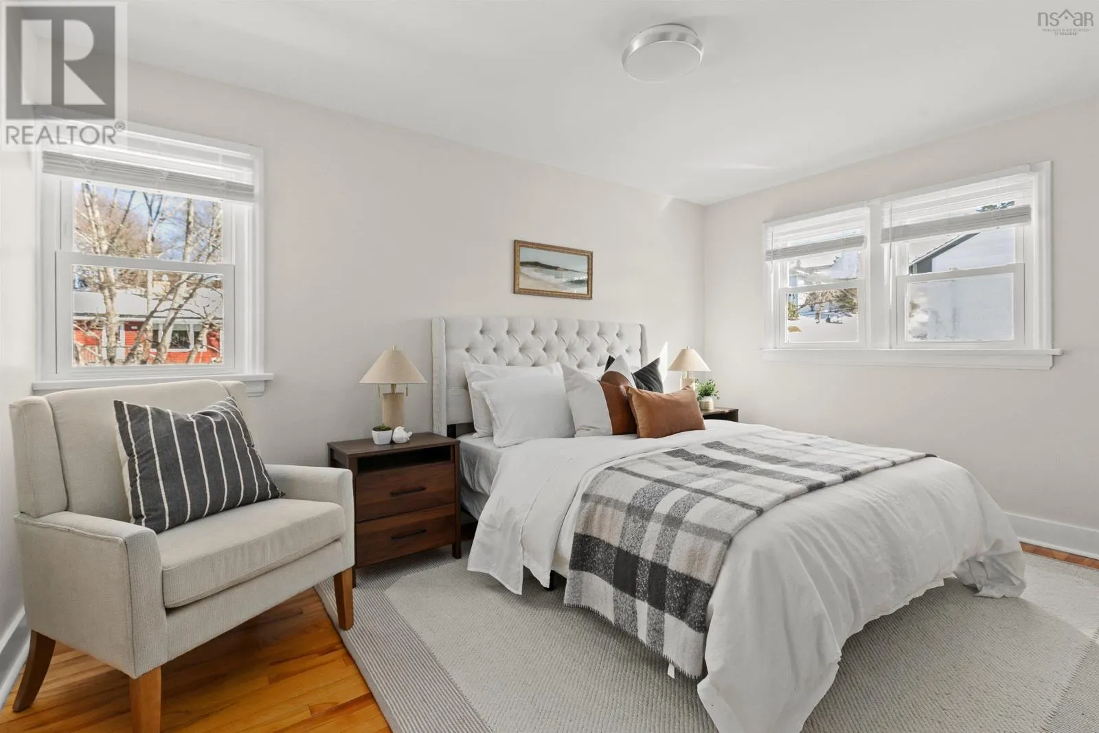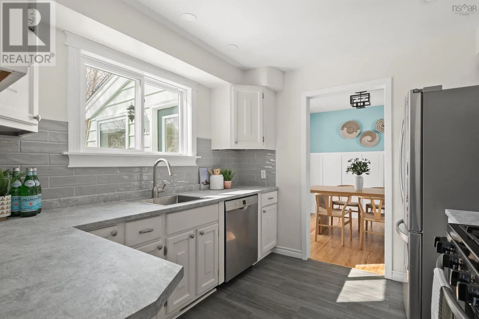 Hawthorne to Sinclair to Medford This is the one youve been waiting for! 12 Medford Street is a stunning 1950s character home in a prime location situated near Lake Banook, Sullivans Pond and Hawthorn Elementary. This three-bedroom and two full-bath home is hard to find in this area, offering space and functionality to any living situation. Natural light pours in and the layout flows perfectly for entertaining or cosy nights by the new gas fireplace. The spacious living room features a large picture window and original fireplace mantle. The living room wraps around to reveal the dining room leading out to a gorgeous south-facing sunroom perfect for that morning coffee. The kitchen features new counters, sink, backsplash, range hood, kitchen window, pot lights and flooring. Upstairs youll find three bedrooms and a gorgeous bathroom with shiplap walls. The basement has a fully finished rec room, 3-piece bath/laundry room and lots of storage. The detached garage is an huge find in this area and could be used for a multitude of purposes. All freshly painted and ready to go - simply move into one of the citys best locations and make it your own. This one wont last! (id:27476)