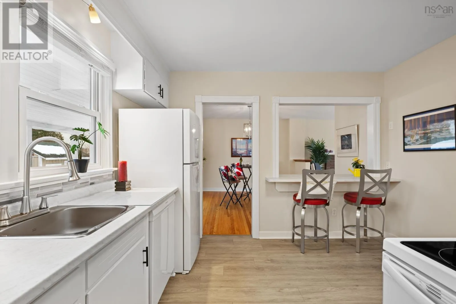 Valleyfield Rd to Langley Ave Welcome to 34 Langley Avenue, a classic Dartmouth two-storey that is turnkey and move-in ready. The main level offers a popular and functional layout featuring a bright, spacious living room and an open-style kitchen and dining area. Hardwood flooring runs throughout the principal rooms, and the home has been freshly painted throughout. The kitchen has been nicely refreshed with new countertops, hardware, fixtures, and flooring. Patio doors lead to a large covered deck with potential to develop into a seasonal sunroom. The second level provides three comfortable bedrooms, more hardwood flooring, and a modernized full bathroom with new countertops and light fixtures. The lower level has been finished to include a half bath, laundry area, rec room and space for home office or den. The side entry offers potential for conversion to an additional living suite. Additional features include a fully ducted Lennox heat pump, roof shingles replaced in 2021, new kitchen appliances (2023), hot water heater replaced in 2025, and a workshop/shed. Conveniently located within walking distance to shops, groceries, schools, transit, and more. (id:27476)