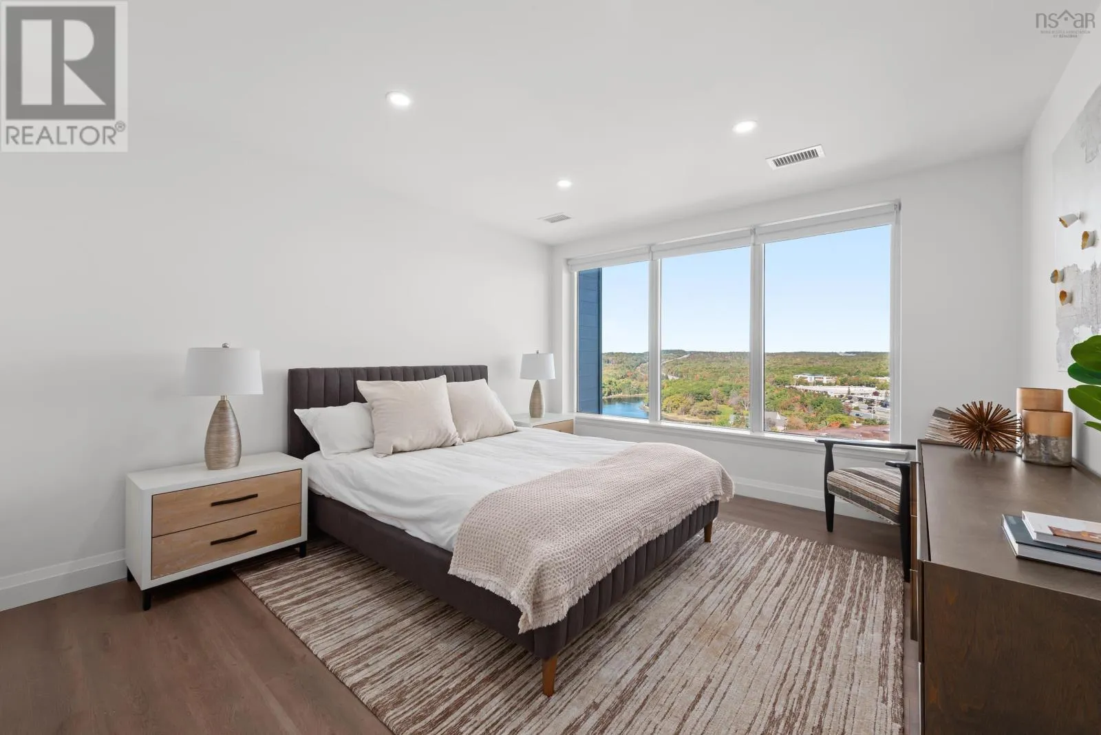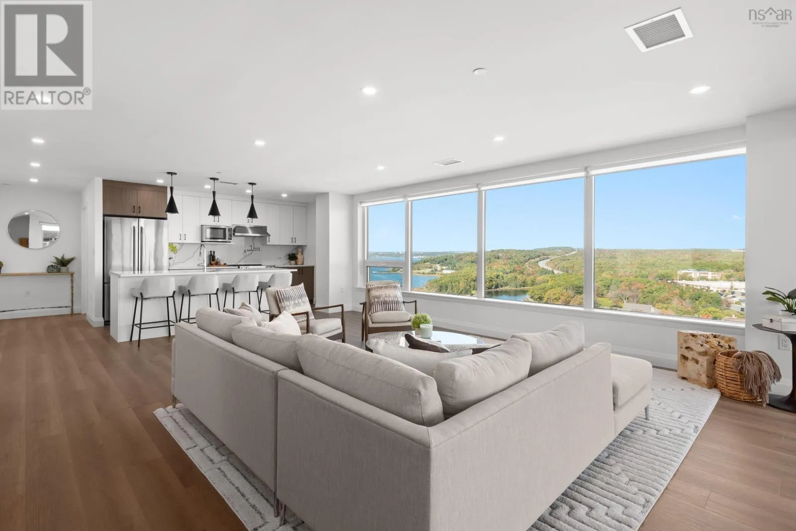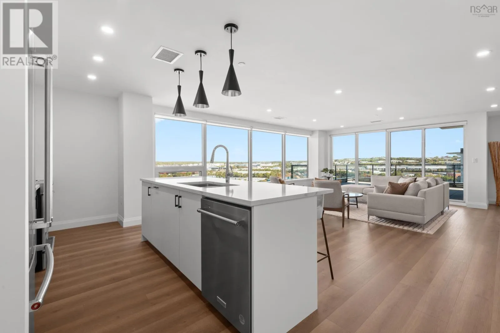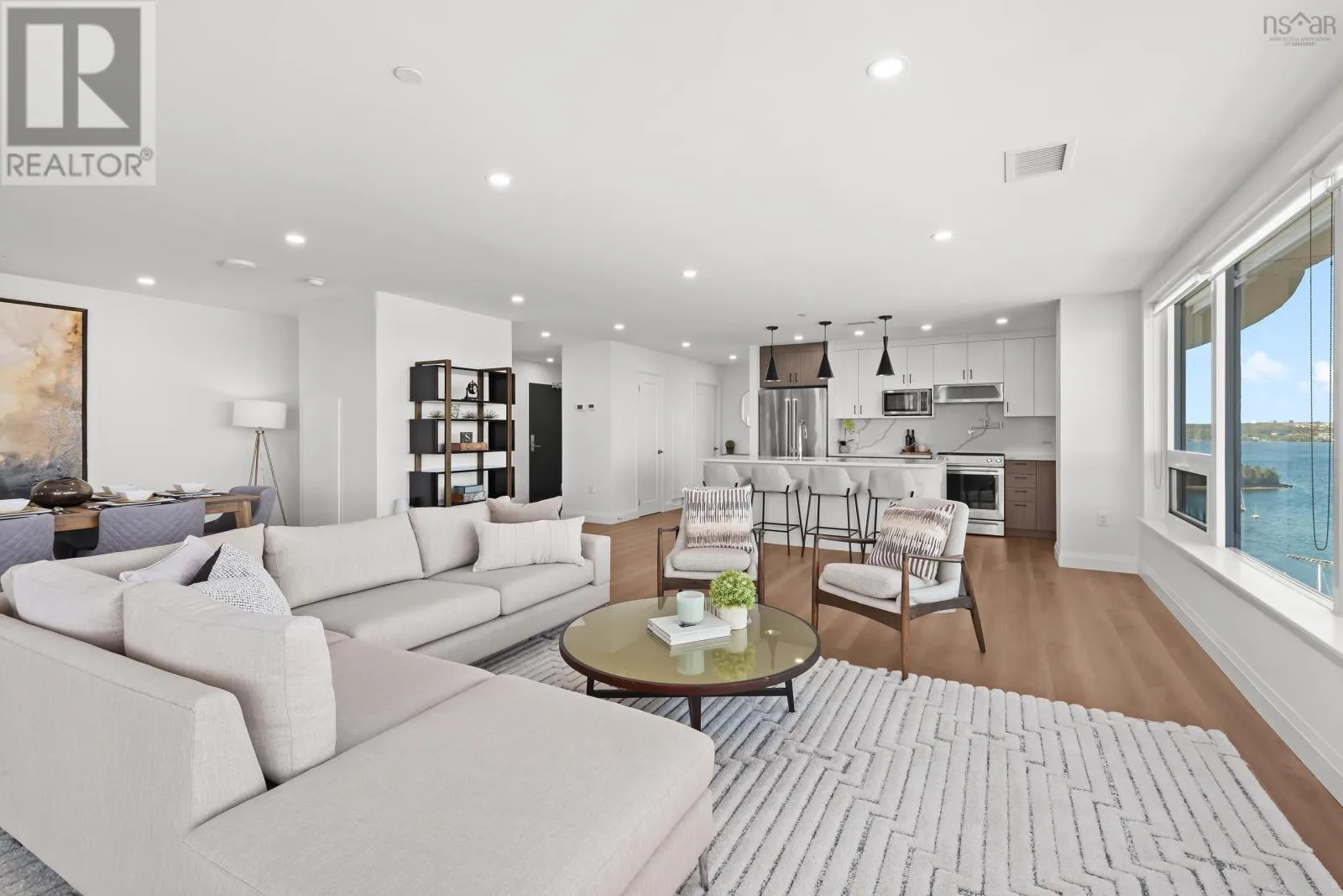 Windmill Rd to Seapoint Rd Welcome to Penthouse 1703 at Seapoint Condos, where luxury meets the sea! Perched atop one of Dartmouths most coveted waterfront addresses, this fully furnished 2-bedroom + den residence offers 1,658 square feet of refined living and a spectacular 588 square foot terrace overlooking the Bedford Basin. Floor-to-ceiling windows flood the space with natural light, framing panoramic views that stretch down the Bedford Basin; the kind of view that defines East Coast living. Inside, youre greeted by an expansive open-concept living and dining area, anchored by engineered hardwood floors and a chef-inspired kitchen with high-end finishes and stainless steel appliances. The primary suite is a true retreat, featuring terrace access, a sleek electric fireplace, a walk-in closet, and a spa-like ensuite with a soaker tub, double vanity, and custom tile shower. The second bedroom sits at the opposite end for added privacy, complete with its own walk-in closet and stunning Basin views. A glass-enclosed den offers the perfect sun-soaked workspace or solarium, while a bonus flex room off the laundry adds extra versatility and storage space. With 4 underground parking spaces and 4 storage lockers, convenience is unmatched. Residents enjoy access to a fitness centre and elegant social lounge, all within minutes of Dartmouth Crossing, Burnside, and Downtown Dartmouth and Downtown Halifax. Rarely does a penthouse of this scale, design, and location come to market. Your coastal sanctuary awaits on the top floor of the Seapoint Condos! (id:27476)