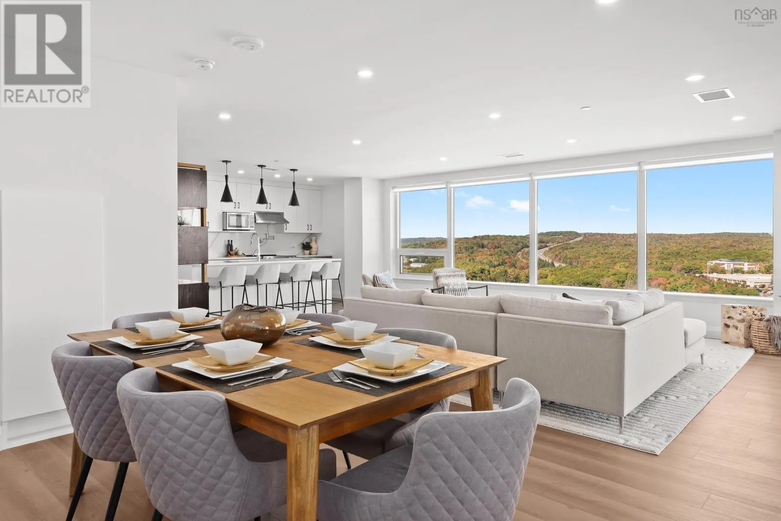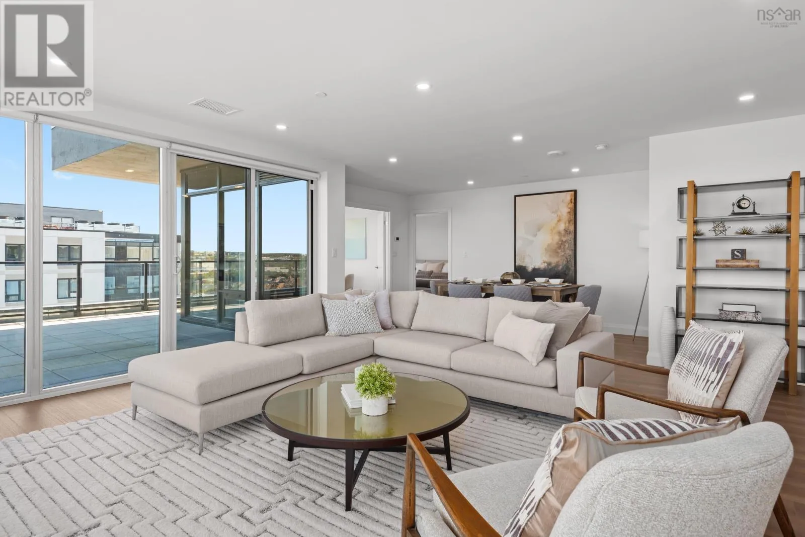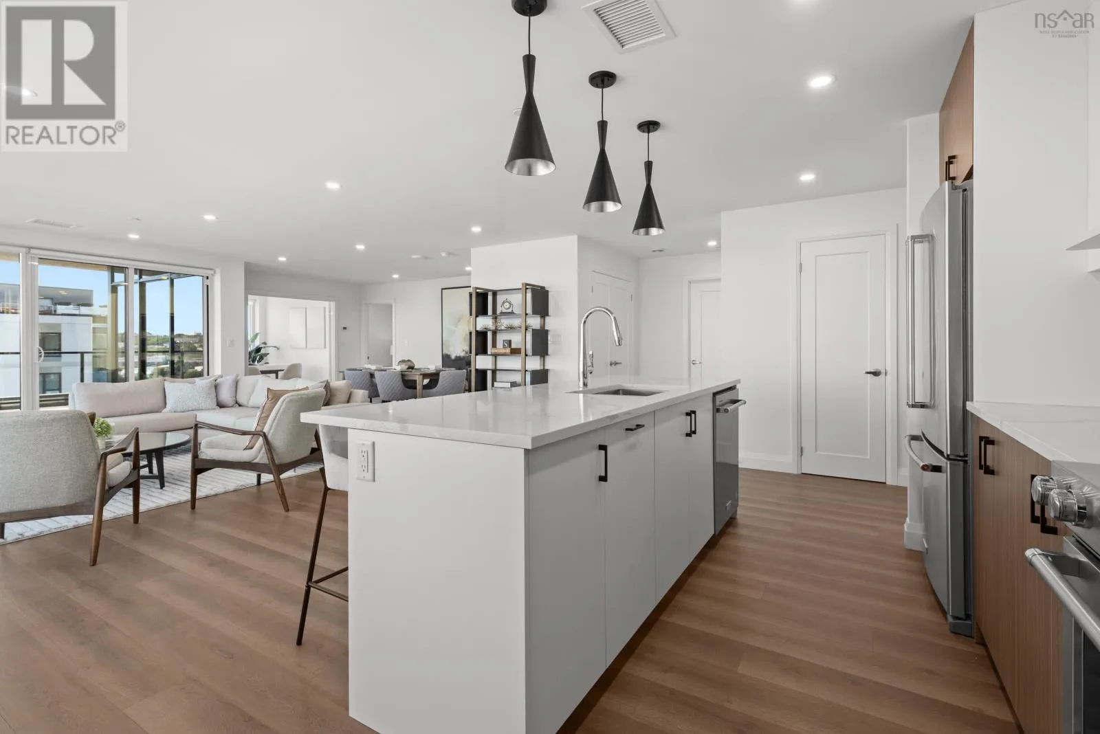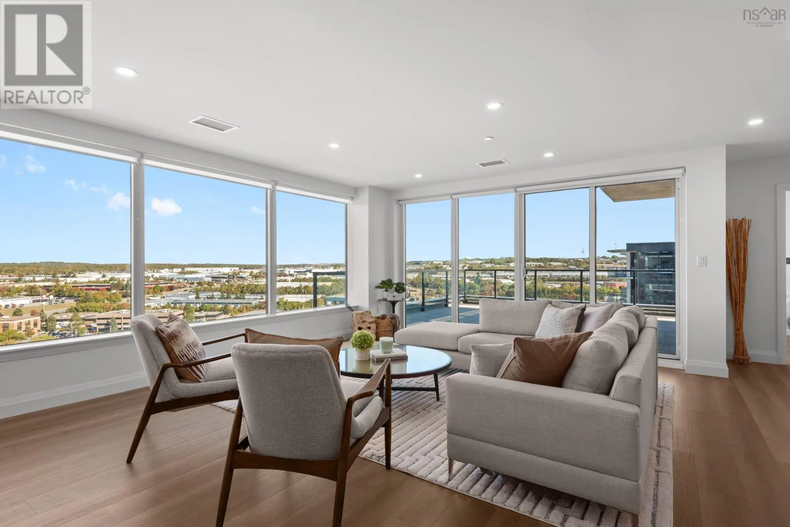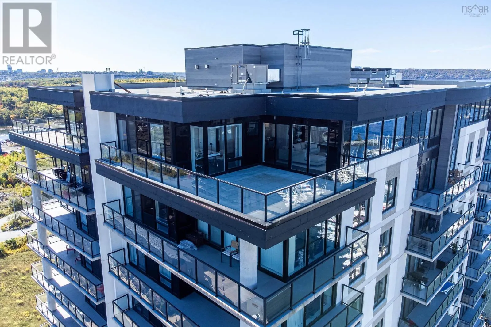 Windmill Rd to Seapoint Rd Welcome to Penthouse 1703 at Seapoint Condos, where luxury meets the sea! Perched atop one of Dartmouths most coveted waterfront addresses, this fully furnished 2-bedroom + den residence offers 1,658 square feet of refined living and a spectacular 588 square foot terrace overlooking the Bedford Basin. Floor-to-ceiling windows flood the space with natural light, framing panoramic views that stretch down the Bedford Basin; the kind of view that defines East Coast living. Inside, youre greeted by an expansive open-concept living and dining area, anchored by engineered hardwood floors and a chef-inspired kitchen with high-end finishes and stainless steel appliances. The primary suite is a true retreat, featuring terrace access, a sleek electric fireplace, a walk-in closet, and a spa-like ensuite with a soaker tub, double vanity, and custom tile shower. The second bedroom sits at the opposite end for added privacy, complete with its own walk-in closet and stunning Basin views. A glass-enclosed den offers the perfect sun-soaked workspace or solarium, while a bonus flex room off the laundry adds extra versatility and storage space. With 4 underground parking spaces and 4 storage lockers, convenience is unmatched. Residents enjoy access to a fitness centre and elegant social lounge, all within minutes of Dartmouth Crossing, Burnside, and Downtown Dartmouth and Downtown Halifax. Rarely does a penthouse of this scale, design, and location come to market. Your coastal sanctuary awaits on the top floor of the Seapoint Condos! (id:27476)
