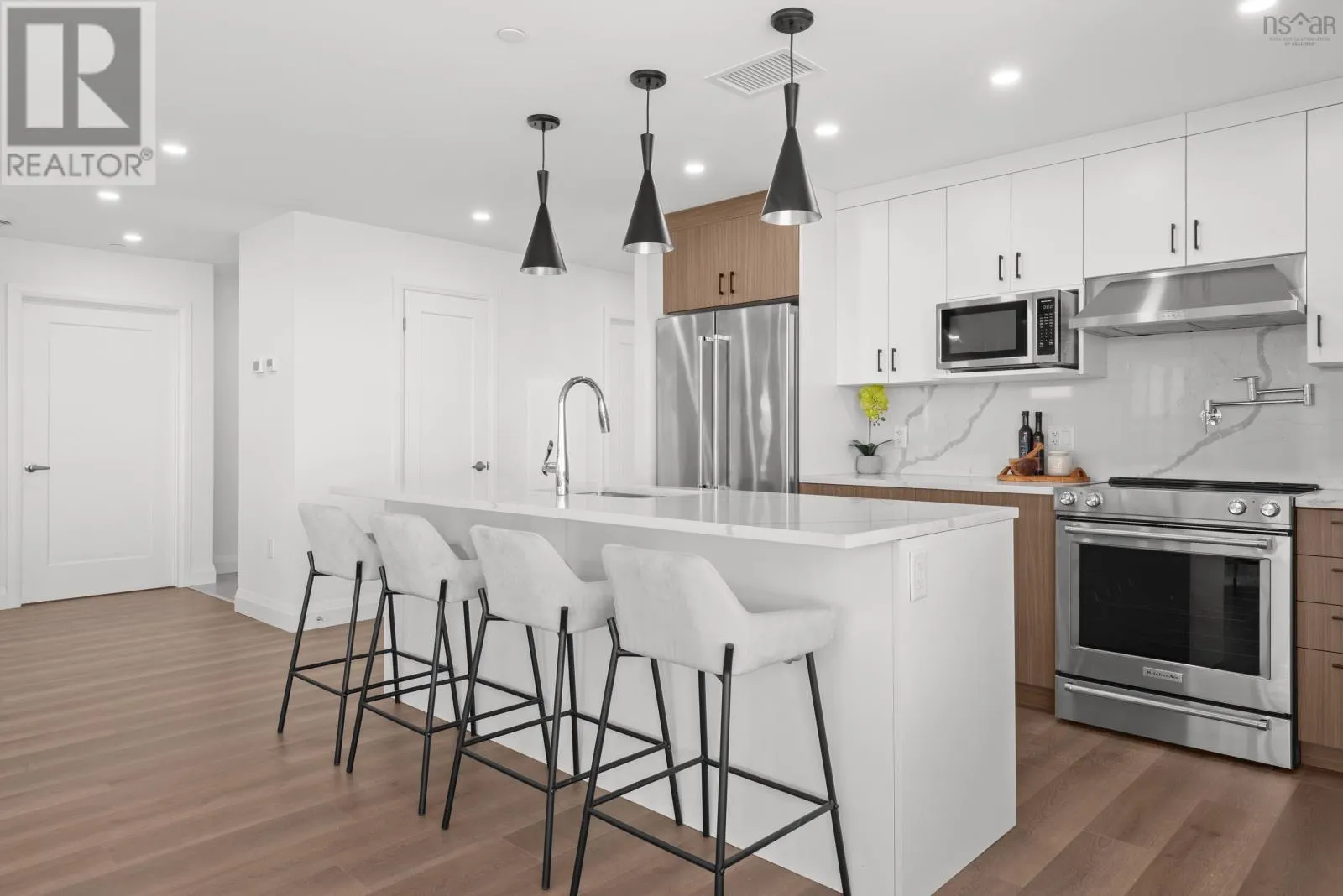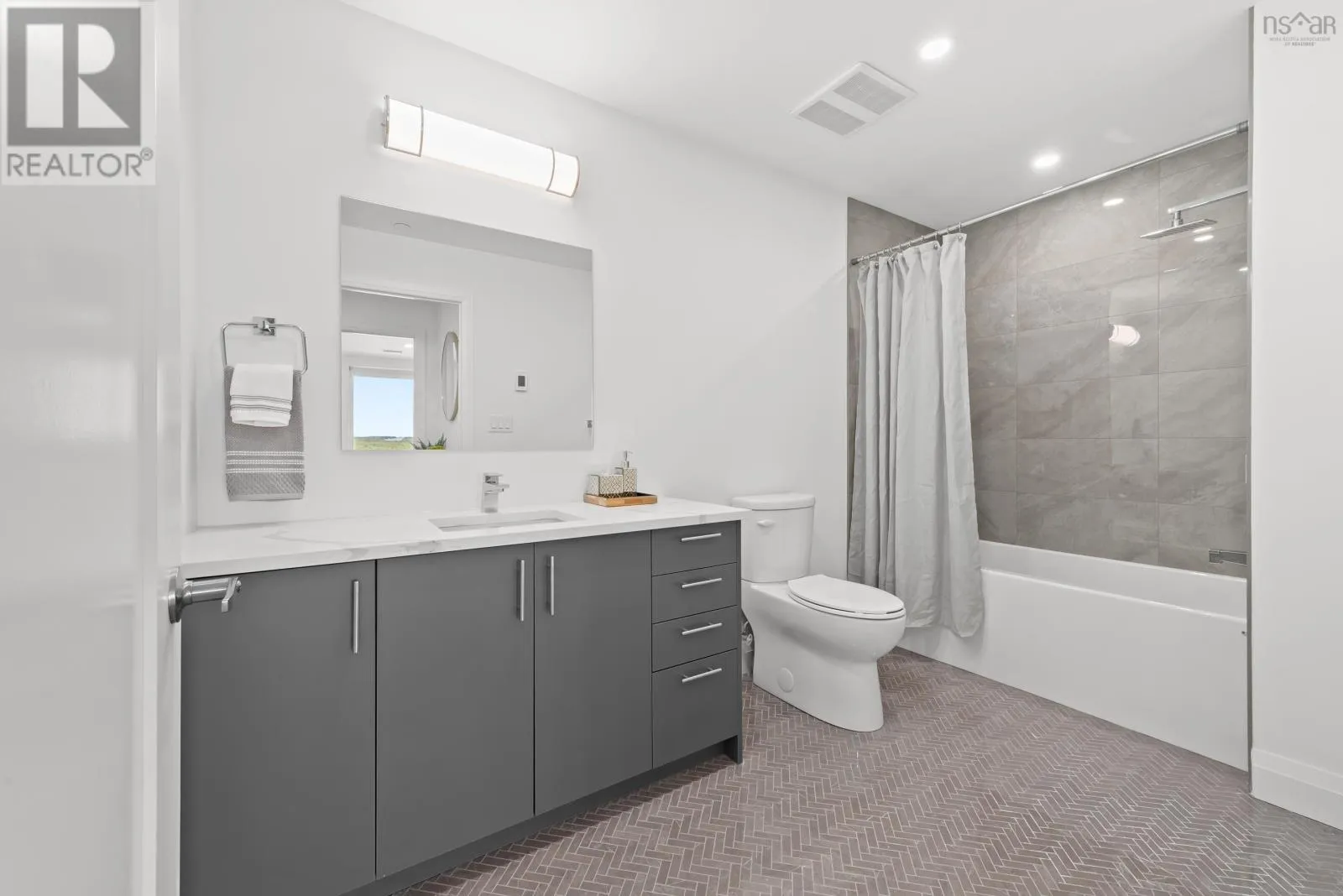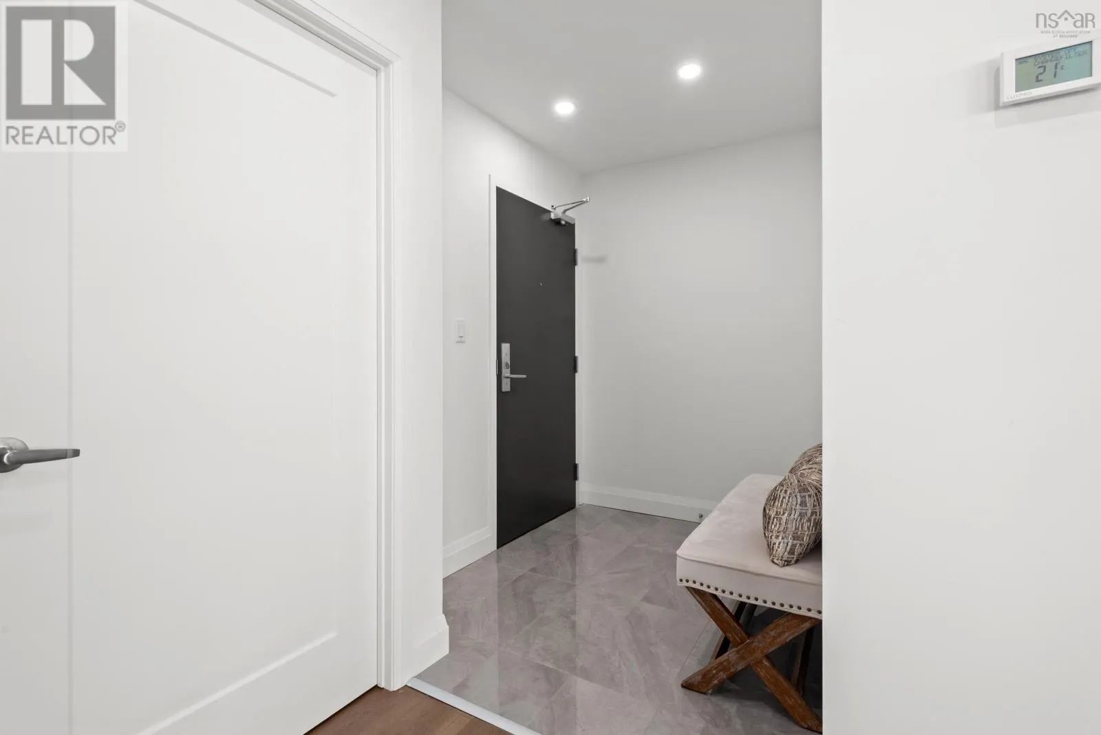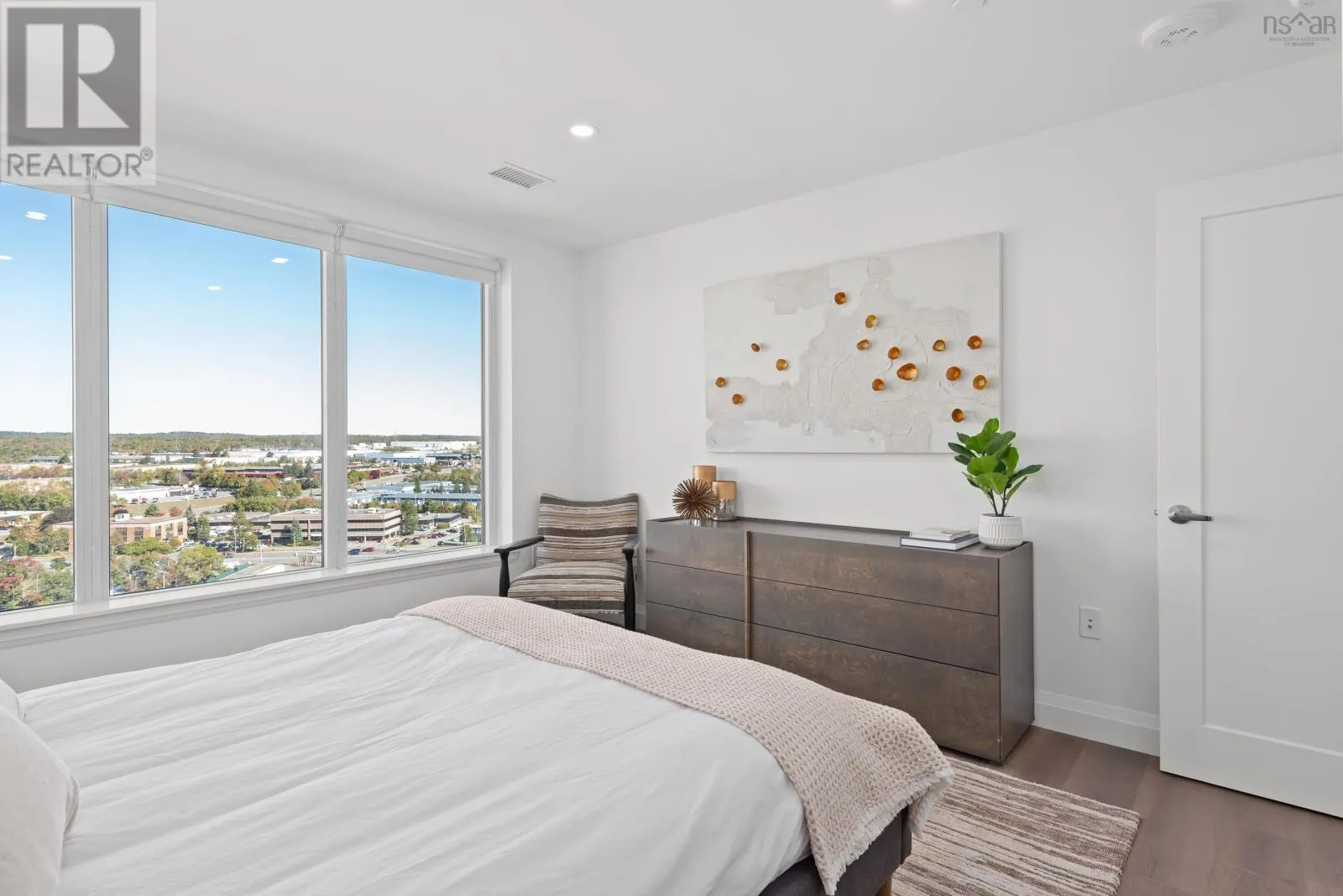 Windmill Rd to Seapoint Rd Welcome to Penthouse 1703 at Seapoint Condos, where luxury meets the sea! Perched atop one of Dartmouths most coveted waterfront addresses, this fully furnished 2-bedroom + den residence offers 1,658 square feet of refined living and a spectacular 588 square foot terrace overlooking the Bedford Basin. Floor-to-ceiling windows flood the space with natural light, framing panoramic views that stretch down the Bedford Basin; the kind of view that defines East Coast living. Inside, youre greeted by an expansive open-concept living and dining area, anchored by engineered hardwood floors and a chef-inspired kitchen with high-end finishes and stainless steel appliances. The primary suite is a true retreat, featuring terrace access, a sleek electric fireplace, a walk-in closet, and a spa-like ensuite with a soaker tub, double vanity, and custom tile shower. The second bedroom sits at the opposite end for added privacy, complete with its own walk-in closet and stunning Basin views. A glass-enclosed den offers the perfect sun-soaked workspace or solarium, while a bonus flex room off the laundry adds extra versatility and storage space. With 4 underground parking spaces and 4 storage lockers, convenience is unmatched. Residents enjoy access to a fitness centre and elegant social lounge, all within minutes of Dartmouth Crossing, Burnside, and Downtown Dartmouth and Downtown Halifax. Rarely does a penthouse of this scale, design, and location come to market. Your coastal sanctuary awaits on the top floor of the Seapoint Condos! (id:27476)