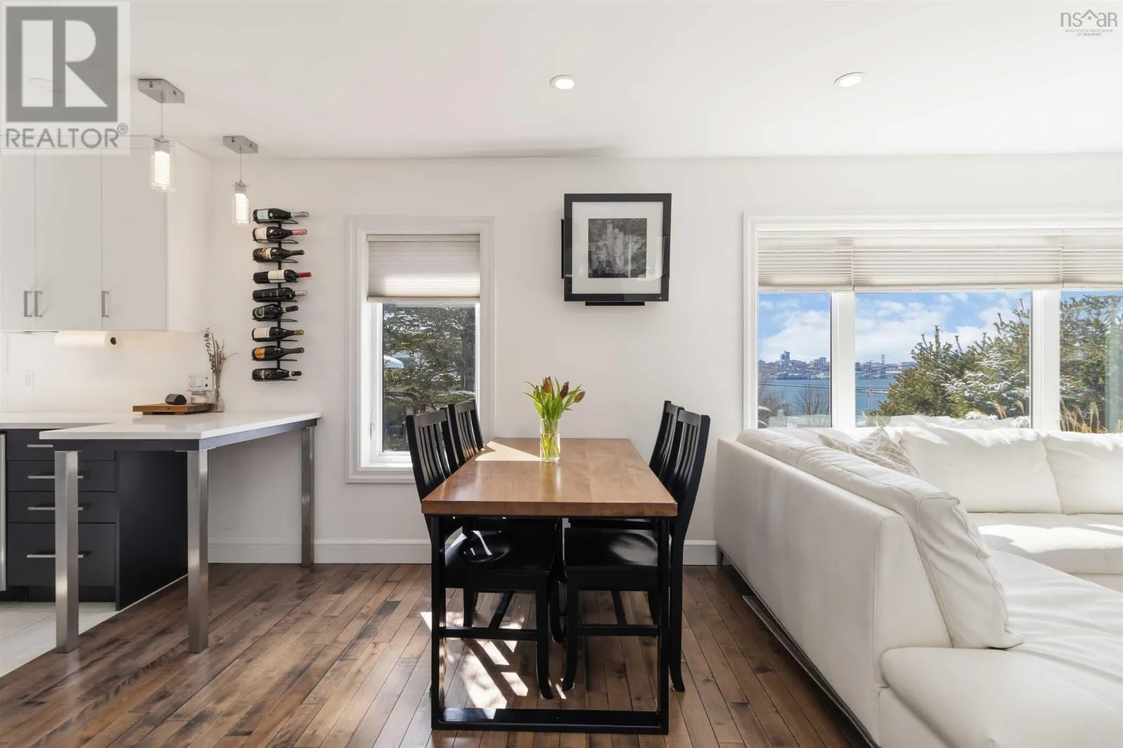 Pleasant Street to Tupper Street Welcome to 9 Tupper Street, Dartmouth living at its finest... Updated in 2023, this charming 2-bedroom, 1-bath bungalow offers modern comfort, harbour views, and a lifestyle that's hard to beat. The bright open-concept layout features updated flooring throughout, stone countertops, ceiling height cabinetry and heated floors in the kitchen and bathroom, updated stainless steel appliances, and a modern & unique ductless heat pump system. Harbour views are part of everyday life here, whether you're relaxing in the living room or sitting out on the front steps sipping your morning coffee, you're never far from a glimpse of the water. Out back, a private fenced yard with a deck and pergola is perfect for entertaining or unwinding with friends & family. The unfinished basement offers exciting potential for a home gym, office, or additional living space, ready for your vision. Walk to the harbour on scenic trails, or hop on the Woodside Ferry for a quick commute to downtown Halifax. NSCC Ivany campus, shops, restaurants, and the Macdonald Bridge keep everything you could need from either side of the harbour, within easy reach. Whether you're a first-time buyer, young professional, or looking to downsize without compromise, this home delivers charm, convenience, and contemporary updates in one perfect package. (id:27476)