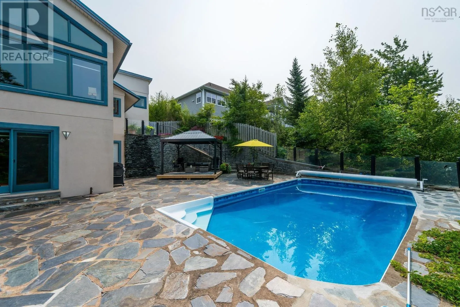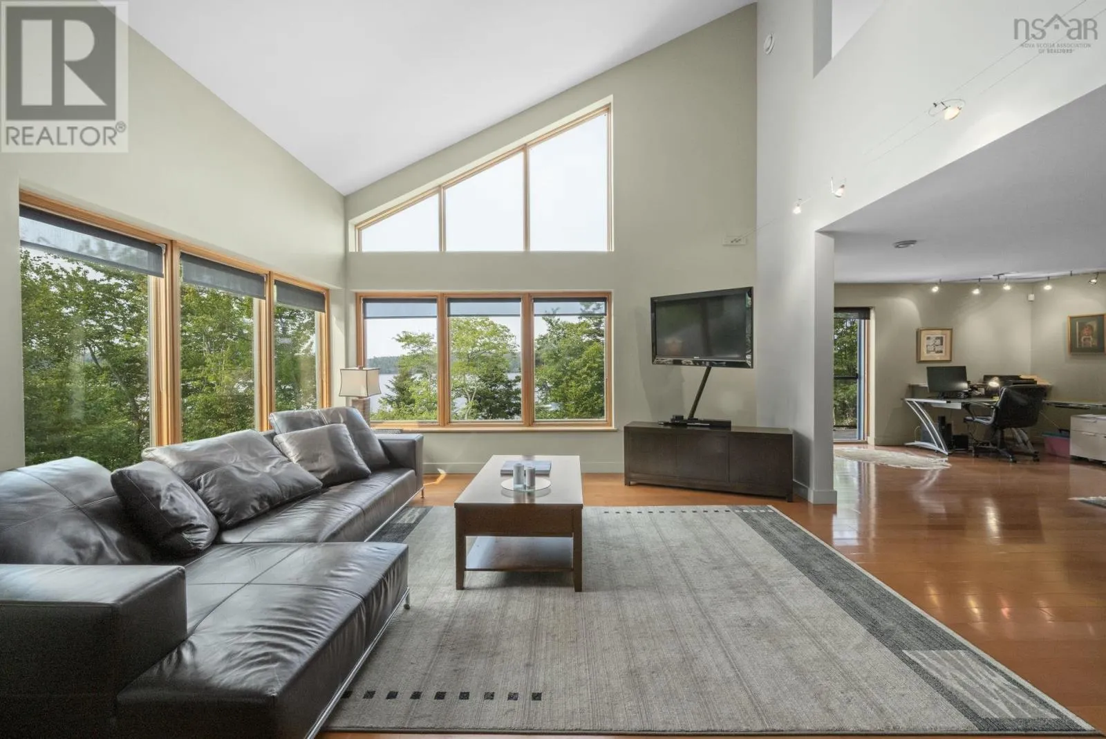 Main St. to Montague Rd to Fairway Grove (to private laneway) Elevate your lifestyle in this breathtaking lakefront masterpiece, perfectly situated just 10 minutes from Halifax and 15 from the airport. Combining the architectural integrity of ICF construction with 65 ft of pristine water frontage, this 3,200 sq. ft. sanctuary offers panoramic lake views from every level. The heart of the home is an open-concept gourmet kitchen and firelit living area, designed for seamless entertaining. Retreat to a lavish primary suite featuring a spa-inspired ensuite, private deck, and in-suite laundry, or utilize the clever flex room with a built-in Murphy bed. The main level also features a newly renovated bedroom with private balcony. The lower level serves as a high-end guest retreat or private in-law suite, complete with a kitchenette and 4pc bath. Step outside to your private resort: a heated in-ground pool with a tranquil waterfall, elegant flagstone patios, and a lakeside gazebo perfect for sunset cocktails. Whether you're hitting the links at the nearby golf community or enjoying a quiet morning by the waters edge, this property delivers a world-class experience. Don't just buy a homeinvest in a destination. View the virtual tour today and prepare to be captivated by this rare lakeside gem. Please note the virtual tour does not depict recent renovation of bedroom addition on main level. (id:27476)