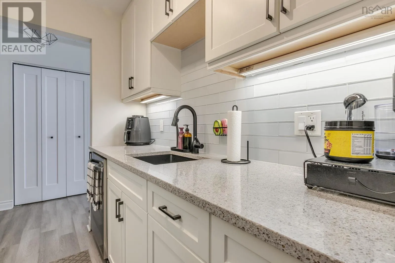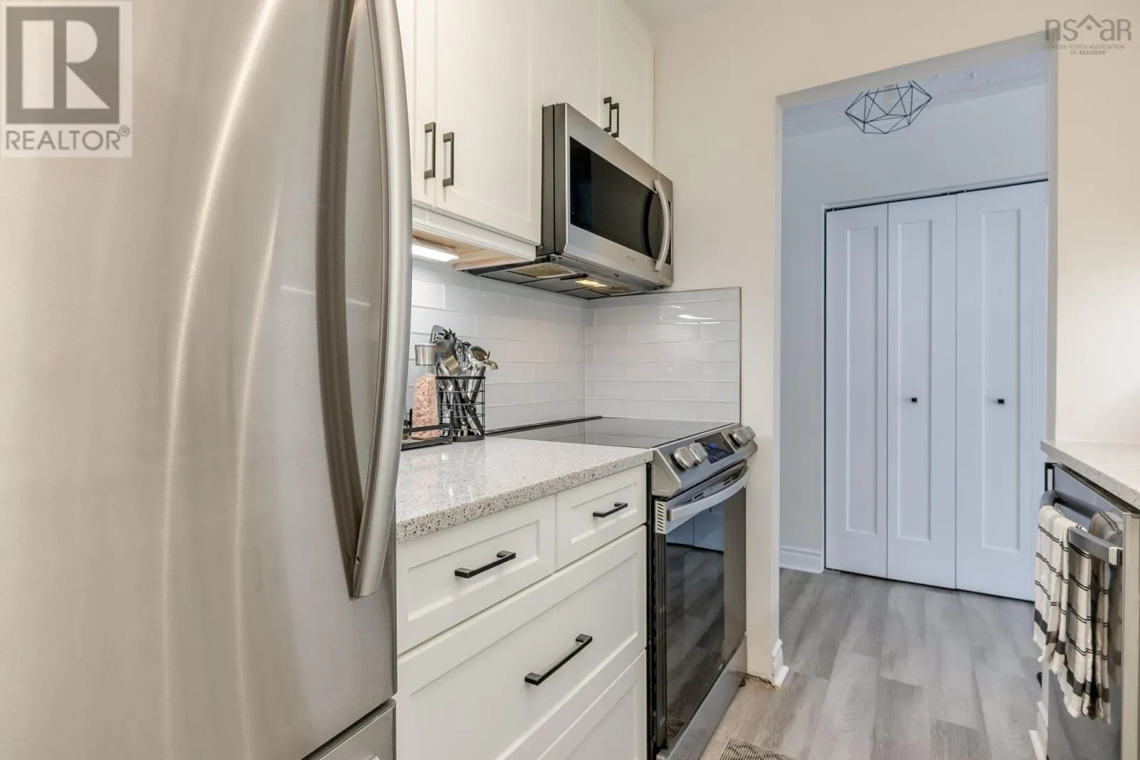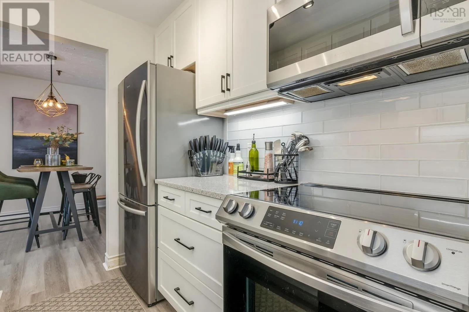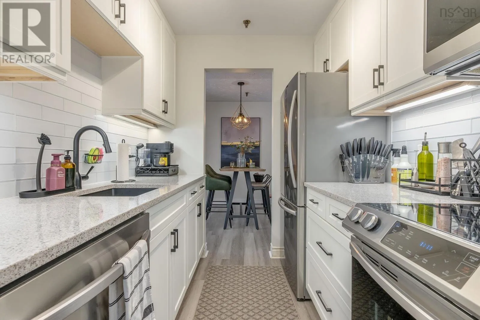 From Portland Street, take Spring Avenue to Collins Drive Its all about attention to detail Beautifully renovated, bright and spacious, thoughfully designed to blend modern elegance with functional comfort. Step inside to discover new flooring, new light fixtures, fresh updated trim and doors, fresh paint throughout. The kitchen is the true centrepeice quality quartz countertops, custom kitchen (white cloud) cabinets with high end stainless steel appliances, 2 generous bedrooms, a completely upgraded bathroom with tasteful finishes,a seperate laundry area including washer and dryer. Beyond the cosmetics, the wiring and plumbing were also updated. So many extras... enjoy the new black heat pump (2025) which matches the living room electric fireplace. This unit is quietly located on the top floor corner unit. The private extended deck (14 x 6) ideal for entertainment also has a private storage area. Simply superb! (id:27476)
