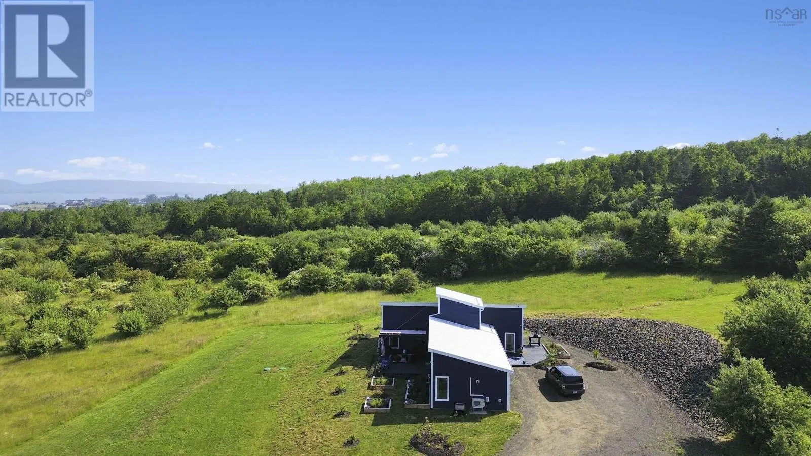 Highway 1 Deep Brook to Deep Brook Lane, civic #59 Welcome to 59 Deep Brook Lanea showstopping East Coast dream nestled at the end of a private lane on 74+/- acres of natural beauty. Perfectly elevated to capture sweeping panoramic views of the Annapolis Basin, this custom-built contemporary home, completed in 2021, is a masterclass in design, functionality, and lifestyle. Prepare to be captivated by sunsets so breathtaking, theyll become your daily ritual. Designed with intention and ease, this like-new home is wheelchair accessible and offers the ultimate in one-level living. Step inside to a grand foyer highlighted by an elegant chandelier, setting the tone for the sophisticated space beyond. An open-concept kitchen, dining, and living area is bathed in natural light, seamlessly blending together with views that are nothing short of mesmerizing. A built-in window bench invites you to linger longerideal for soaking in the scenery or curling up with a book. The spacious primary suite is a peaceful retreat, featuring a walk-in closet and a luxurious 3-piece ensuite complete with a stunning shower. Two additional bedrooms, a stylish 4-piece bath, a dedicated laundry room, and a utility room complete the thoughtfully laid-out interior. Stay comfortable year-round with heat pumps providing both warmth and cooling, and rest easy knowing the home is wired for a generator. Outside, this private haven offers a lifestyle most only dream ofapple trees dot the landscape, expansive green space that beckons for gardening or a hobby farm, and the property's crown jewel, your very own swimming hole known as The Devils Hole, promises refreshing dips on warm days. A charming bunkie with power and water adds endless versatilityuse it as a guest suite, in-law space, workshop, or future barn. And when it's time to relax, the spacious front deck is your front-row seat to natures finest show. This is more than a homeits a place to live fully, breathe deeply, and fall in love with every single day. (id:27476)