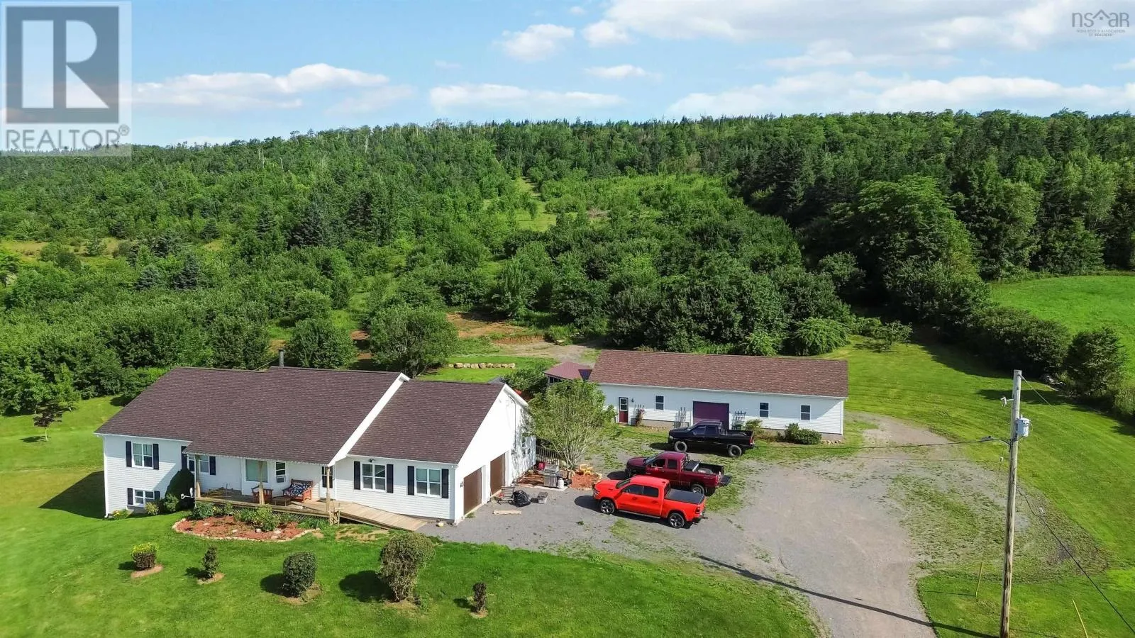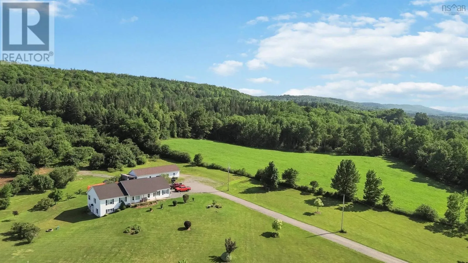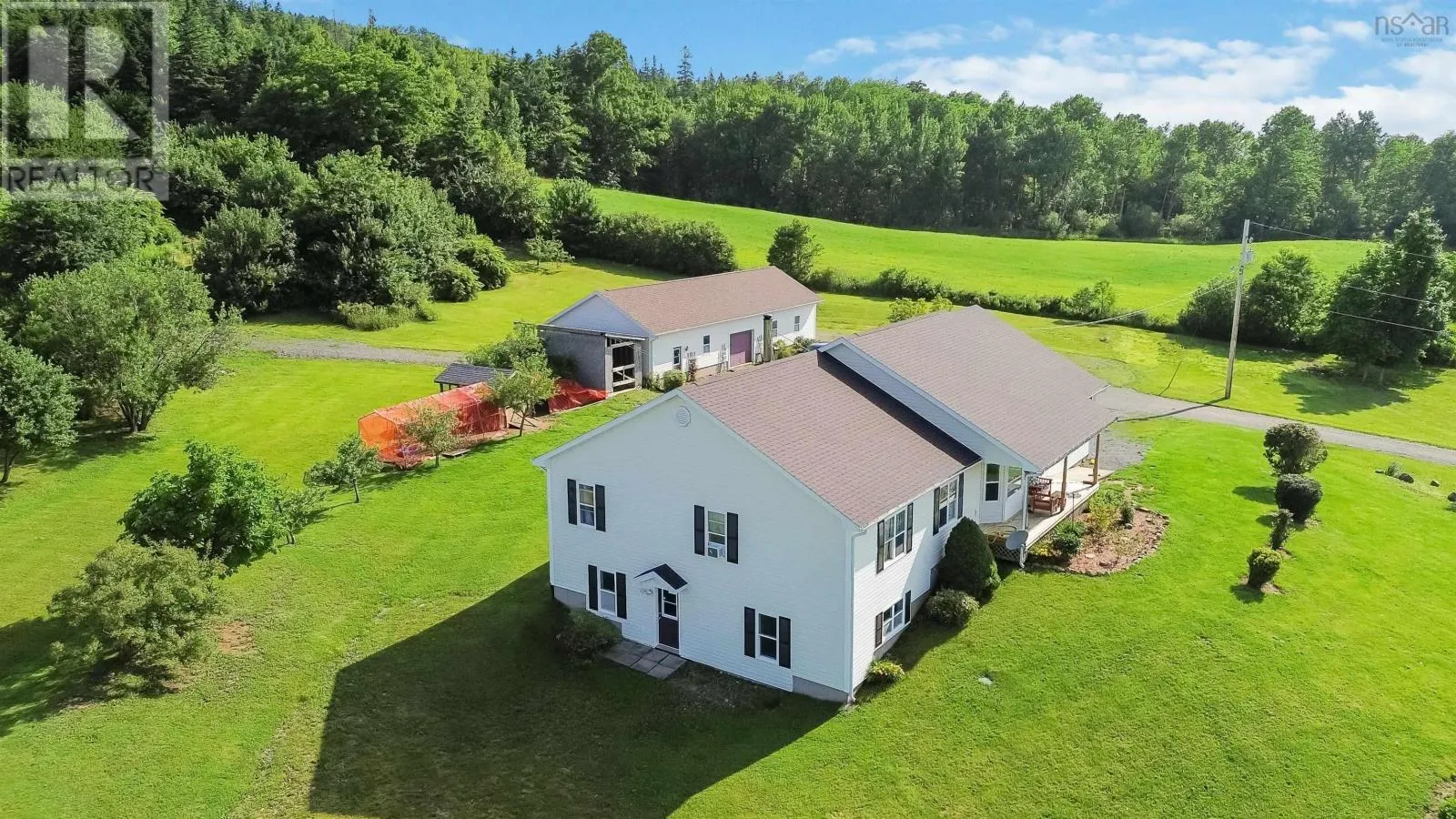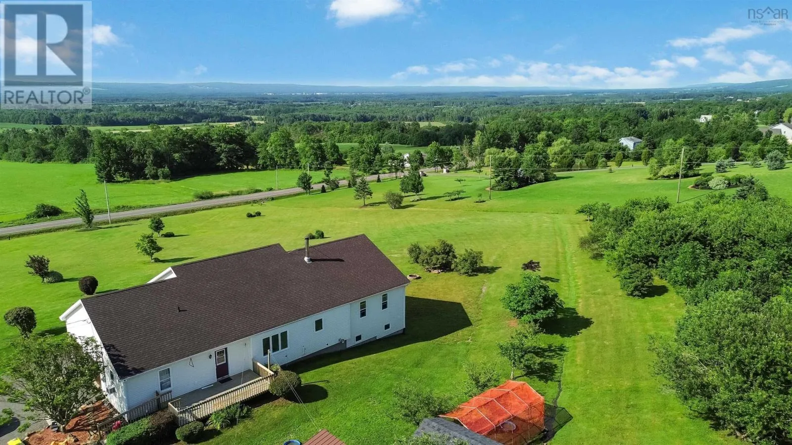 North on Victoria Rd, from Aylesford, West on Hwy 221 to civic on the right. Nestled in the picturesque Annapolis Valley, 2135 Highway 221 in Aylesford, NS, is a jaw dropping rancher on 13+ acres of breathtaking land. Outdoor enthusiasts will love the private trails and rolling hills, perfect for hiking, dirt biking, and four-wheeling, while nature lovers can enjoy the lush, well-maintained yard with mature fruit trees, berry patches and space for a vegetable garden. The inviting front deck presents a perfect spot to enjoy your morning coffee or an evening refreshment while taking in the spectacular views of the Annapolis Valley. With over 3,000 sqft of thoughtfully designed living space, the open-concept main level is filled with natural light that flows in the spacious living room and large eat-in kitchen, which is equipped with new appliances and a cozy wood stove. The primary bedroom connects to the spa-like main bath with a soaker jet tub and walk-in shower, while two additional main-level bedrooms offer comfort and convenience. The rear foyer includes a main level laundry area and backyard access. The lower level expands the living space with a massive fourth bedroom, full bath, ample storage, and a second living area that can serve as a fifth bedroom if desired, plus a convenient walkout. Additional features include a heated attached double garage and a massive wired 24x60 detached garage/workshop, including an oversized front door for easy access for heavy machinery or recreational toys. A firewood shed adds extra storage and is easily accessible from the back door. Designed for accessibility, the home has ramped entries, is fully wheelchair-friendly, and includes a generator hook-up. The driveway light enhances nighttime visibility and safety. Heating is provided by radiant in-floor heating and the wood stove. Just minutes from highway access and amenities, this private yet convenient home is perfect for those seeking space, nature, and comfort! Don't miss this opportunity to make 2135 Highway 221 yours! (id:27476)