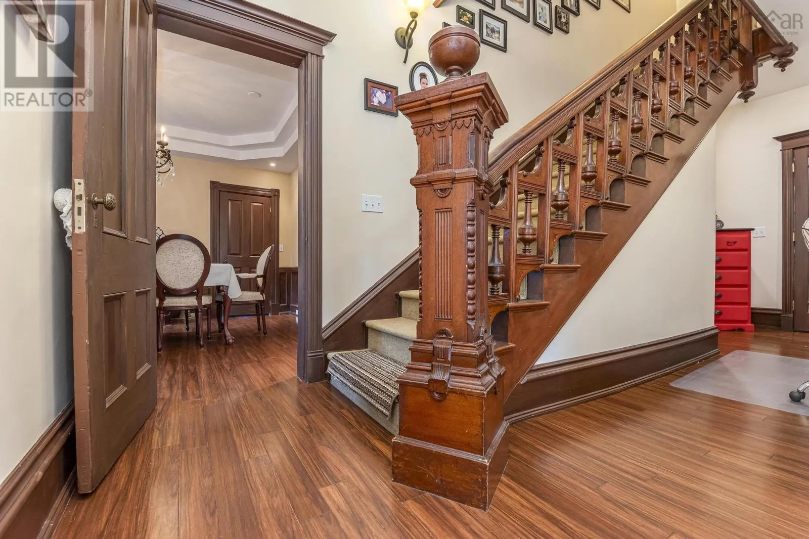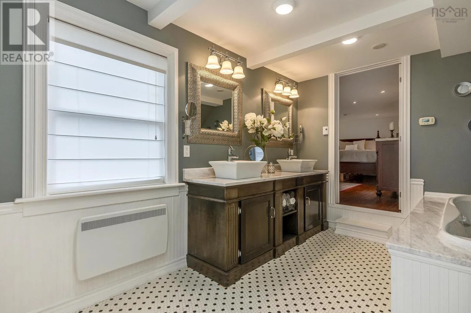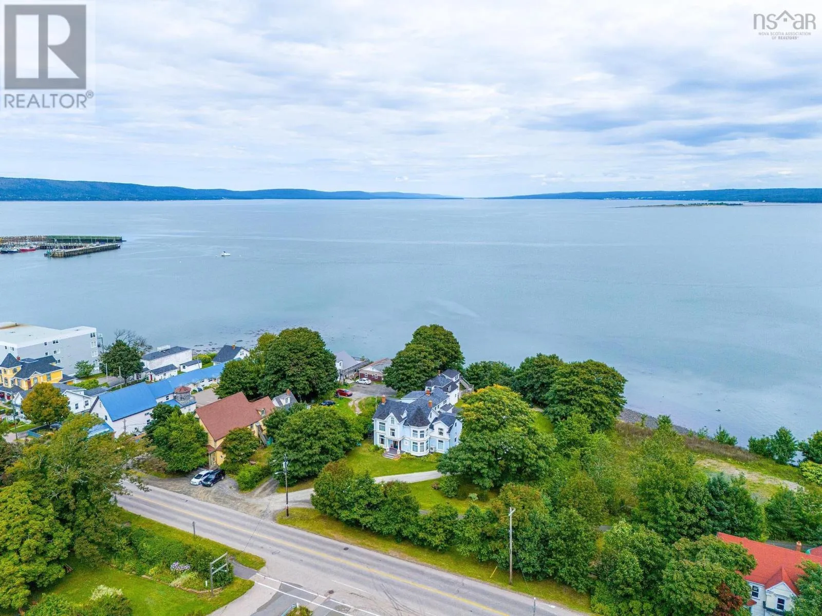 Digby Warwick Street on to Montague Row. Property on the right. Welcome to 76 Montague Row, built in 1903 and widely known as The Tupper It was the former home of H.Tupper Warne. Over the years it has continued to be lovingly brought back to life and is waiting for its new owners to put their finishing touches on it. The Tupper sits on the shores of where the Annapolis Basin meets the Bay of Fundy overlooking the incredible tides and water views that are so sought after in Nova Scotia. The property includes (PID 30348718) with a low tide deed. While the property feels fairly private, the house is just before the downtown core of seaside Digby. World famous for its scallops and offering dining, shopping a marina and a working wharf where you can see various boats from sailboats to fishing vessels coming and going, all just a stroll up the road.Boasting 8+/- bedrooms, each with its own ensuite bathroom, the home could be suitable for a variety of purposes such as a grand family home with income potential or a multigenerational home, an airbnb or a homestay for nurses or professionals. The possibilities and dreams are endless. The charm and character are evident in the beautiful wood details of the staircase, trim and moulding throughout and displayed in the ornate fireplaces. The more modern updates flow seamlessly with the timeless and classic details of the home. The detached carriage house has a 2-car garage on the main level as well as 2 self-contained apartment units, 1 bachelor apartment and one 2bdrm apartment. The third floor of the home also has a spacious self contained apartment with 2 bdrms and 2.5 baths. PID 30348718 Water lot due to provincial recognition can only be transfered to new owners by quit claim deed. Dont wait, book a viewing of this unique property with the agent of your choice and make your Nova Scotia seaside dreams come true! (id:27476)