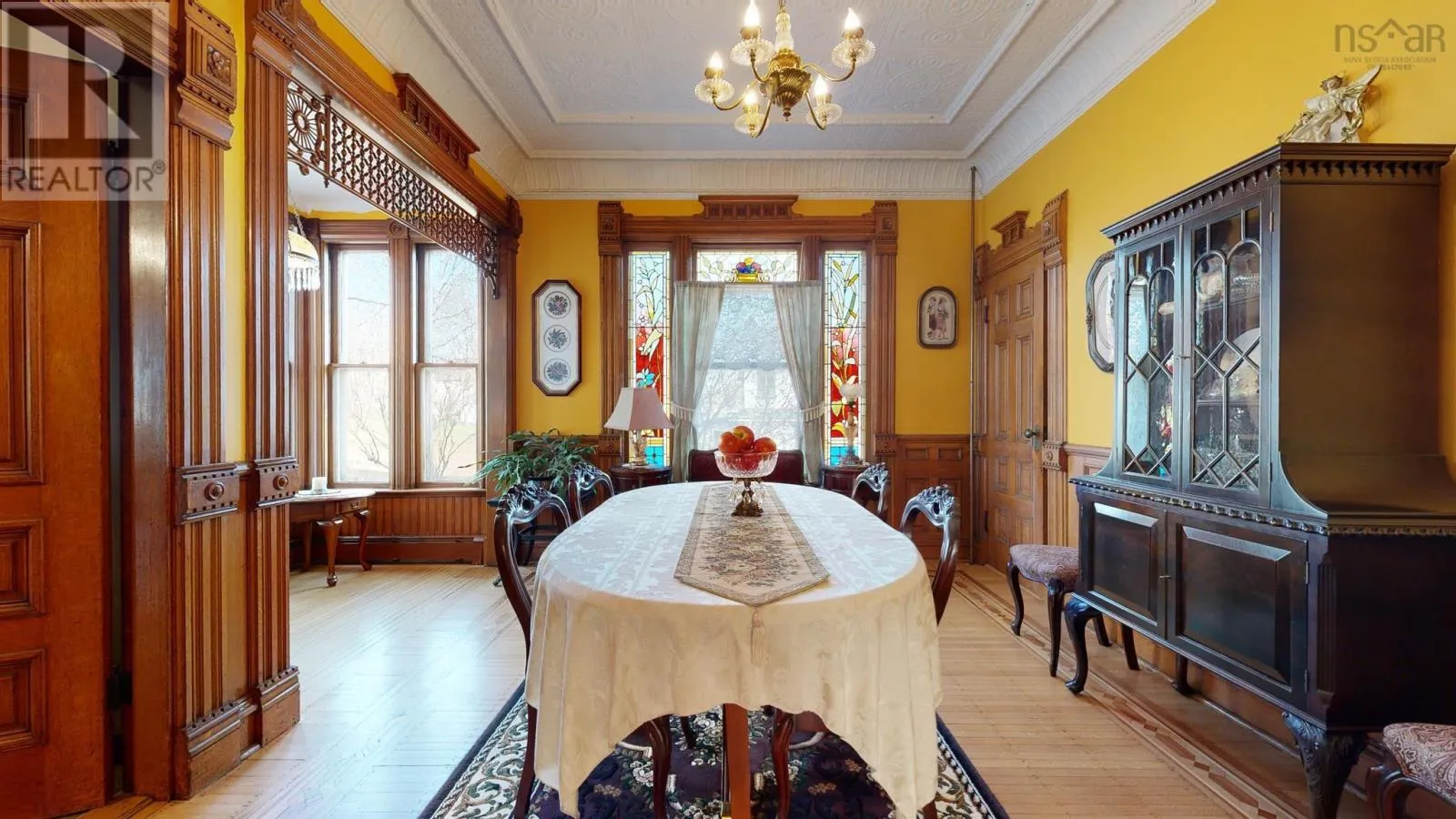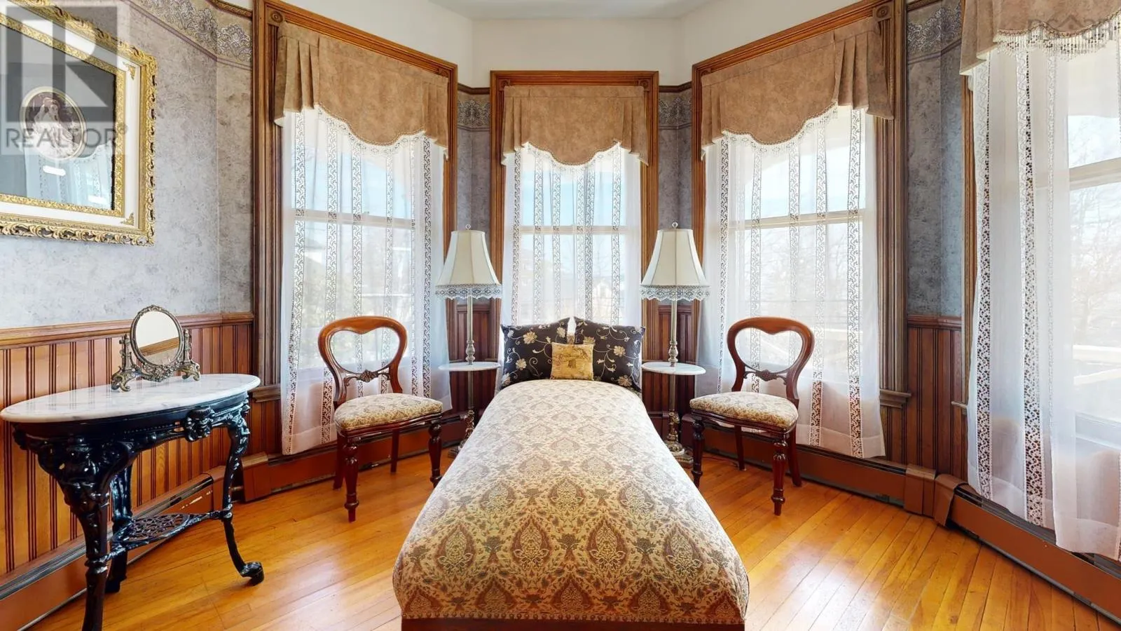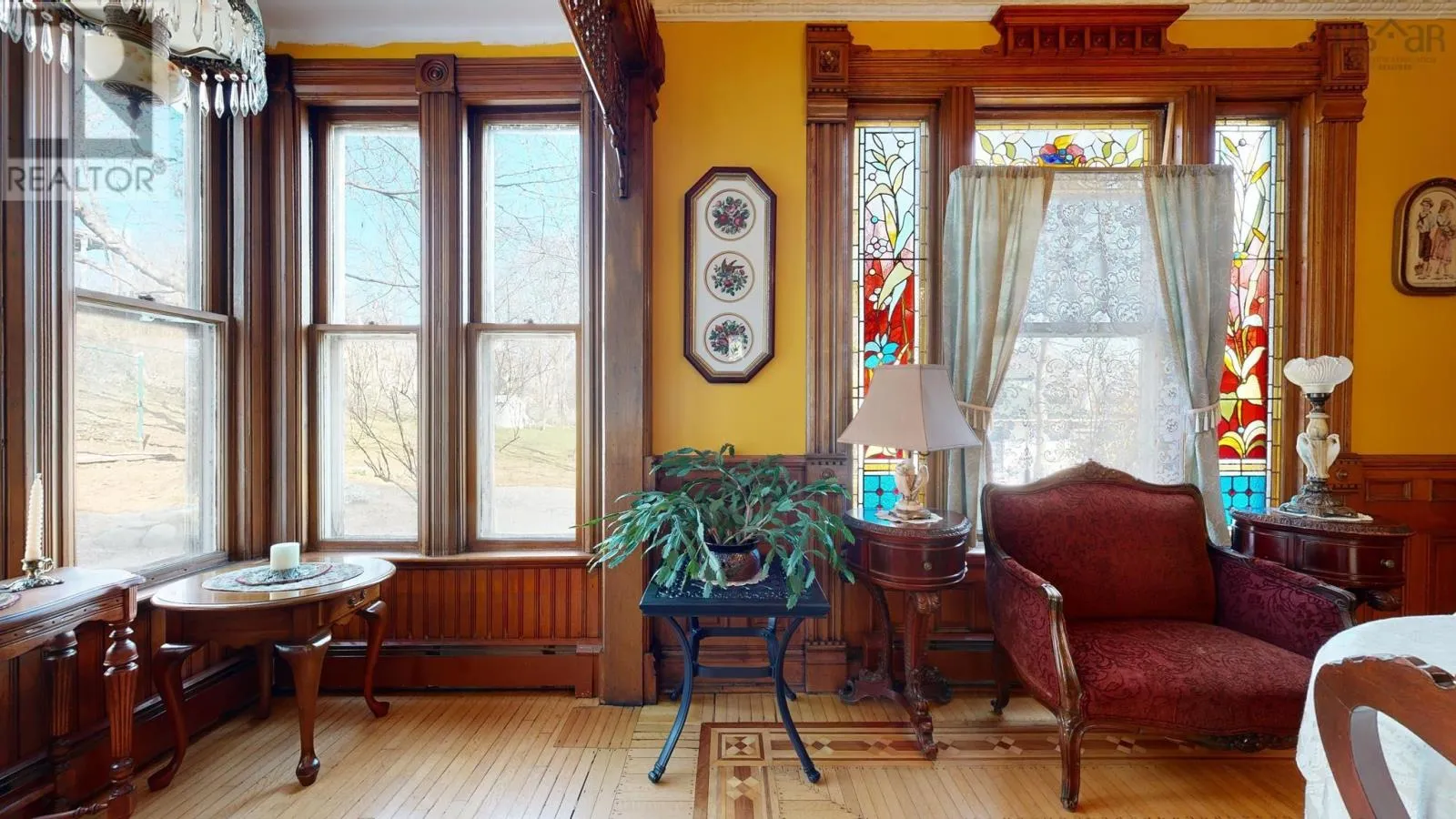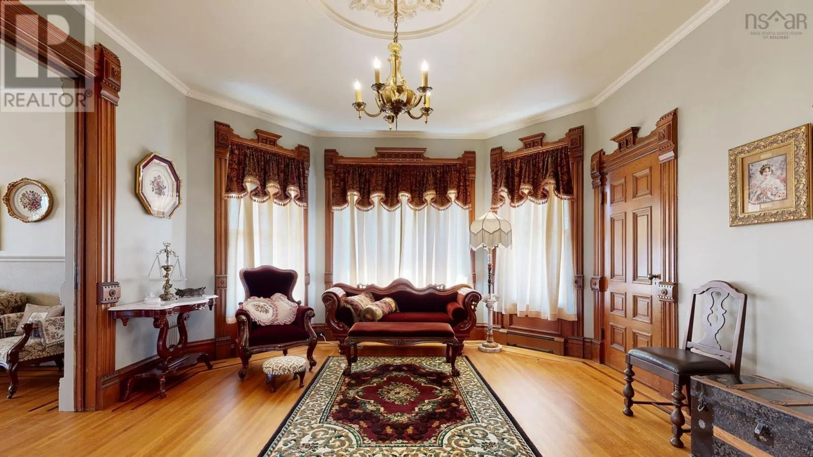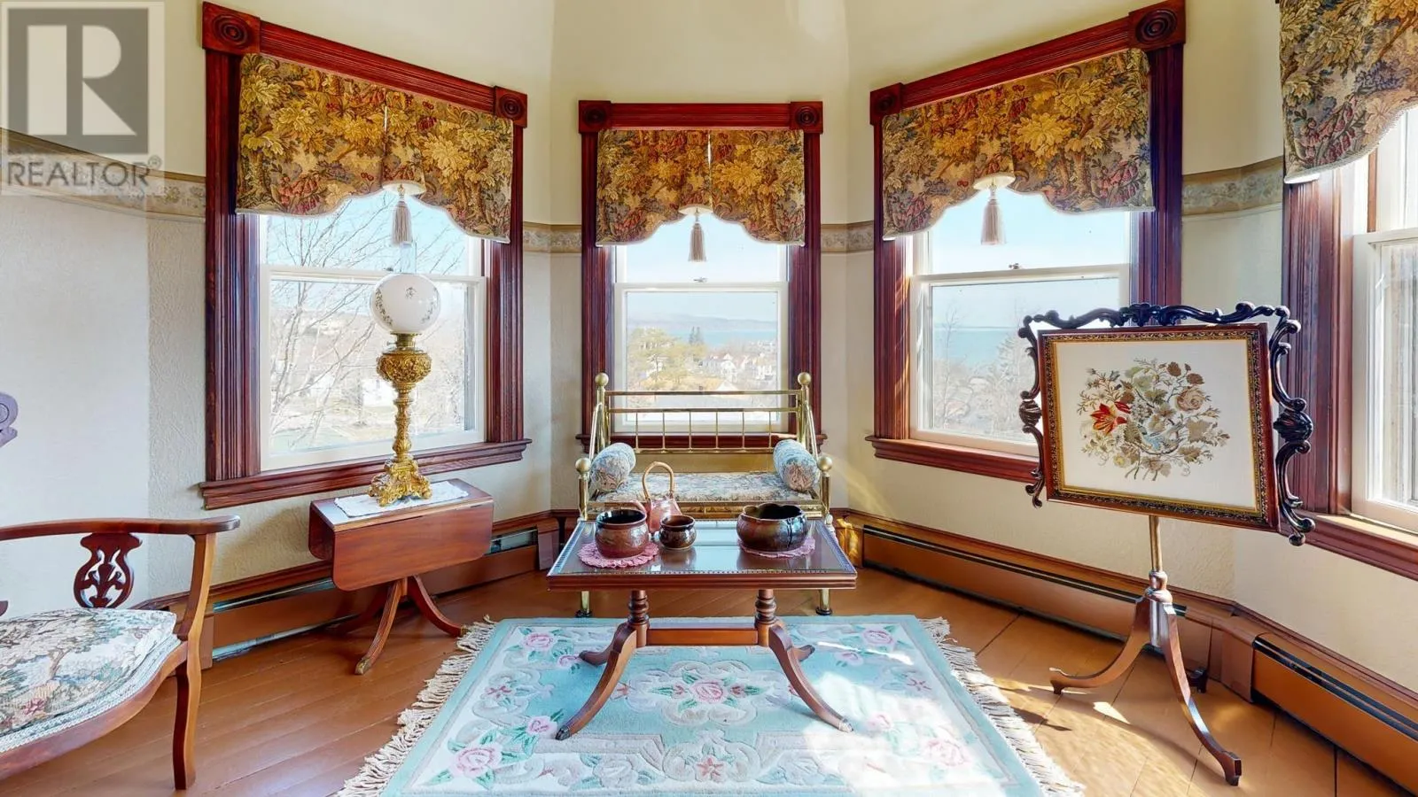 On Queen Street. One of the most incredible classic Queen Ann style Victorian homes on the market today. Steeped in majesty, elegance, history and superior craftsmanship this spacious home exemplifies "no expenses spared" and showcases the incredible talent that was available and applied for the highest end product that cannot be duplicated today. Built in 1898 and designed by Israel Letting, who also graced Queen street with 3 others impressive mansions, (ask your agent for historical attachments) the home boasts 4 spacious bedrooms, 2 full bathrooms, one massive chef kitchen with more than abundant storage, 2 living rooms and additional sitting rooms and viewpoints, a large formal dining room and a smaller casual dining room. Complementing the ceilings are three beautifully embossed tin ceilings, one carefully restored and two others added for consistency. The verandas, freshly revamped and painted in 2024, and upper outdoor balcony connect this amazing home with the views of the rising Fundy tides connected to the Annapolis Basin below and the bustling fishing fleet that founded the Digby community. With some of the rarest collections of 9 restored priceless stained glass windows, the most intricate wood workings as trims and features as well as a botanical high end yard including a garage has this historic symbol of status and quality a rare opportunity to purchase. (id:27476)