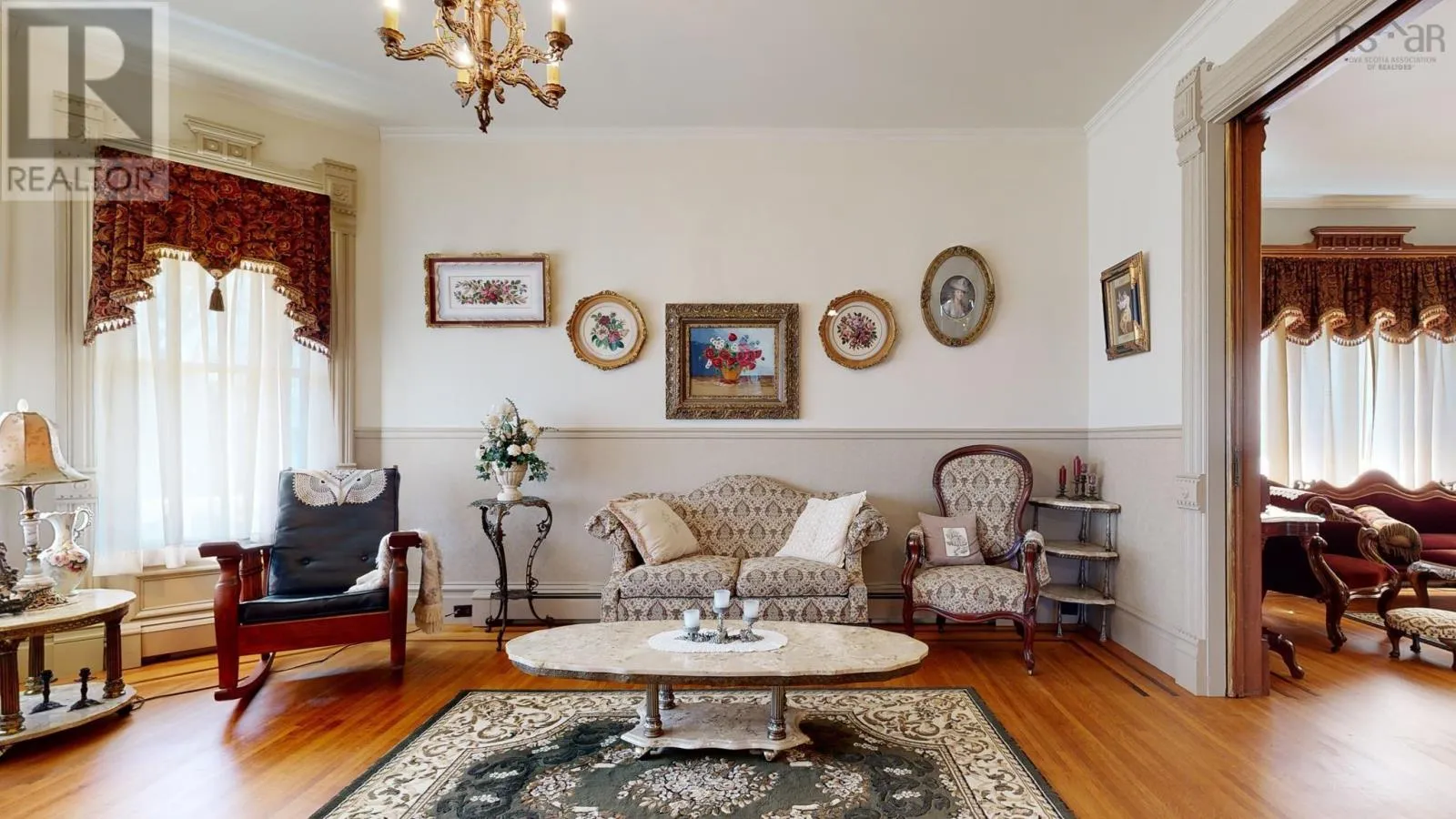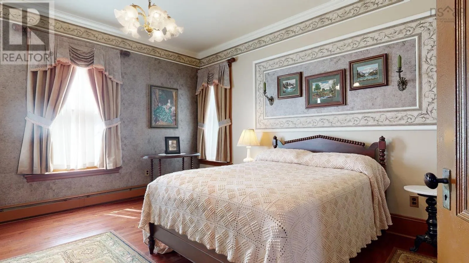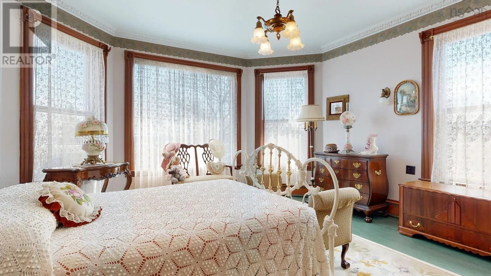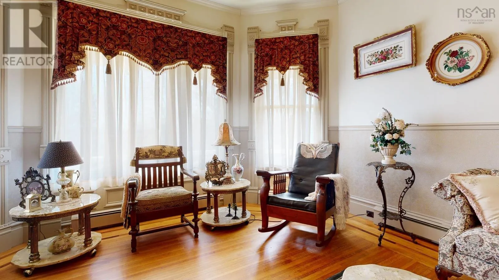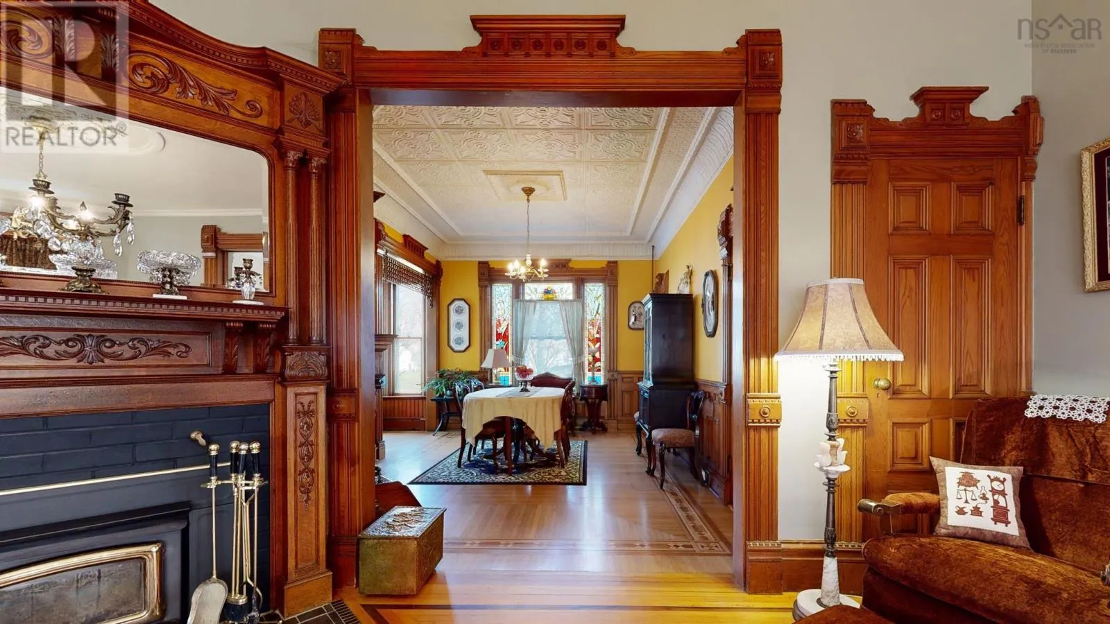On Queen Street. One of the most incredible classic Queen Ann style Victorian homes on the market today. Steeped in majesty, elegance, history and superior craftsmanship this spacious home exemplifies "no expenses spared" and showcases the incredible talent that was available and applied for the highest end product that cannot be duplicated today. Built in 1898 and designed by Israel Letting, who also graced Queen street with 3 others impressive mansions, (ask your agent for historical attachments) the home boasts 4 spacious bedrooms, 2 full bathrooms, one massive chef kitchen with more than abundant storage, 2 living rooms and additional sitting rooms and viewpoints, a large formal dining room and a smaller casual dining room. Complementing the ceilings are three beautifully embossed tin ceilings, one carefully restored and two others added for consistency. The verandas, freshly revamped and painted in 2024, and upper outdoor balcony connect this amazing home with the views of the rising Fundy tides connected to the Annapolis Basin below and the bustling fishing fleet that founded the Digby community. With some of the rarest collections of 9 restored priceless stained glass windows, the most intricate wood workings as trims and features as well as a botanical high end yard including a garage has this historic symbol of status and quality a rare opportunity to purchase. (id:27476)