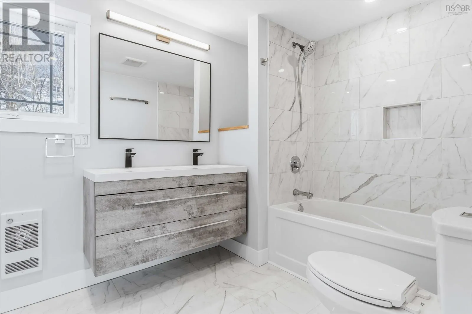 First Ave, Digby to civic #139 Tastefully renovated with impeccable attention to detail, this beautifully updated home blends modern design with an effortless flow that enhances everyday living. The open-concept kitchen and living area create an inviting entertaining space, centered around an oversized island with a sleek quartz countertop that discreetly incorporates a dishwasher and wine fridge for added convenience. A stylish 3-piece bathroom on the main floor adds function to this thoughtfully designed layout, while the electric fireplace in the living room brings warmth and ambiance to the space. Sliding patio doors provide seamless access to your backyard and deck, extending your living area outdoors. Upstairs, the primary bedroom offers a walk-in closet/storage, accompanied by a well-appointed four-piece bathroom complete with in-unit laundry to keep life simple and efficient. A second bedroom with a slight water view completes this level. Designed with comfort and practicality in mind, the renovation includes heat pumps on both the main and second floors, baseboard heating, a 200-amp electrical panel with a separate generator panel, porcelain tile in the bathrooms, and all new appliances throughout and much more. Ideally located within easy walking distance to Digbys picturesque downtown waterfront, local shops, and restaurantsand just minutes from schools and grocery storesthis home places you within arms reach of everything the community has to offer. Modern comfort and convenient living are wrapped up in one exceptional package that truly must be seen to be appreciated. (id:27476)