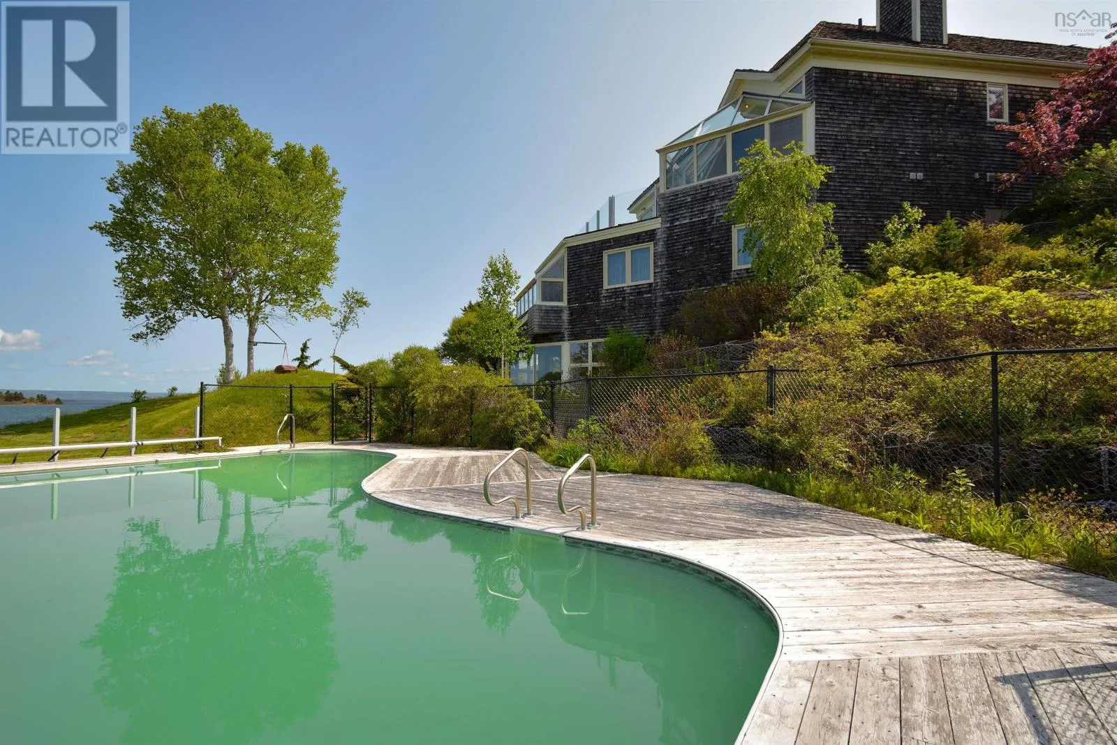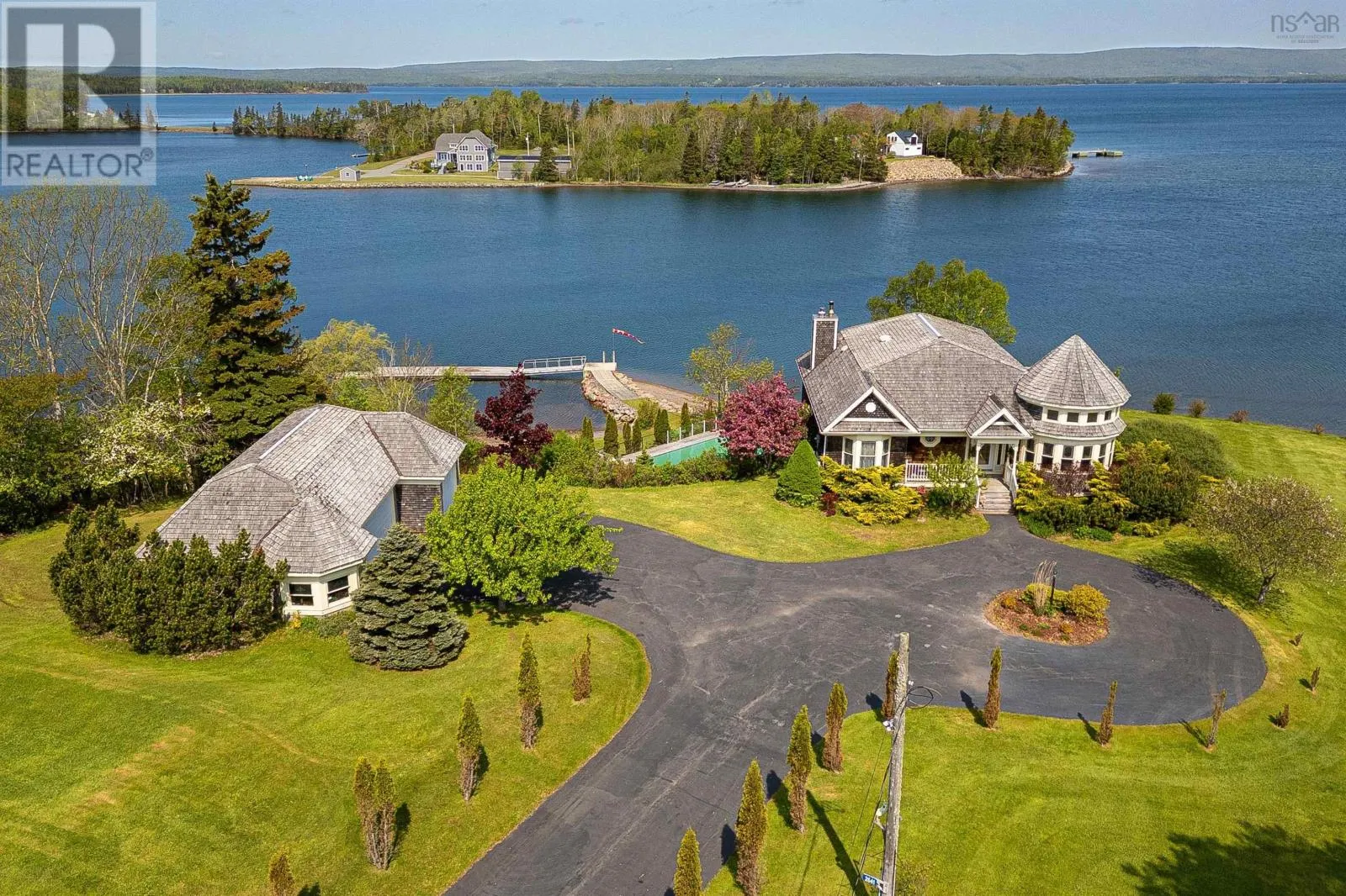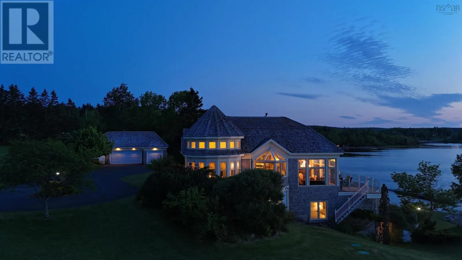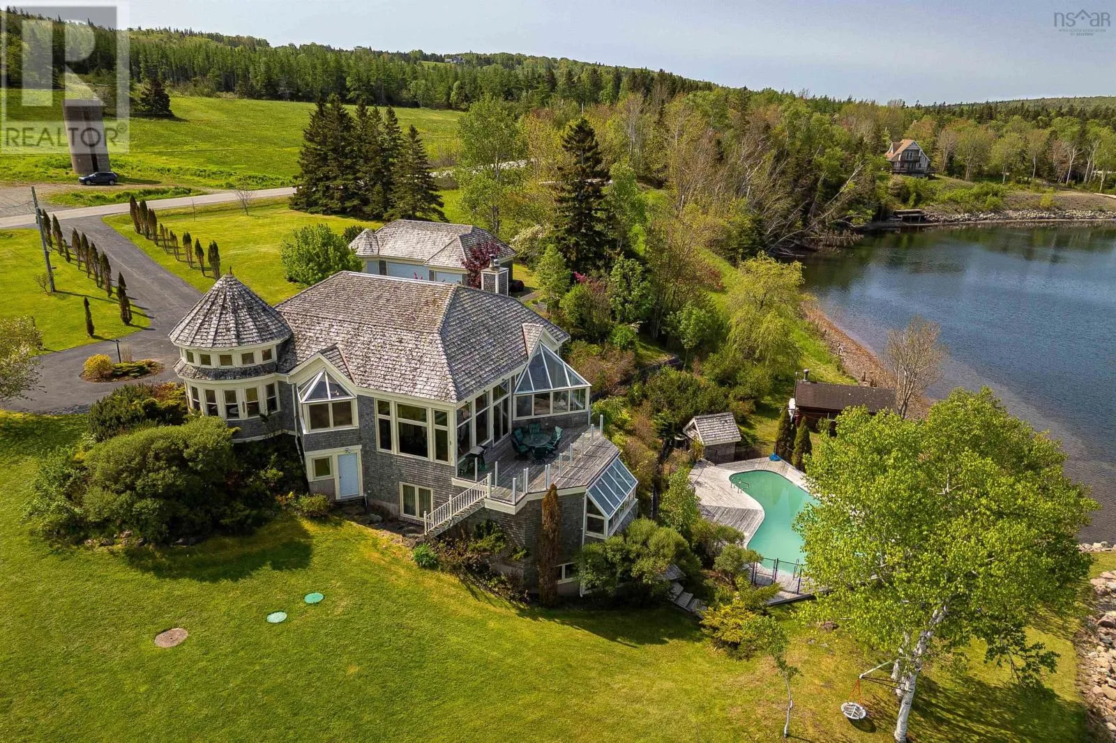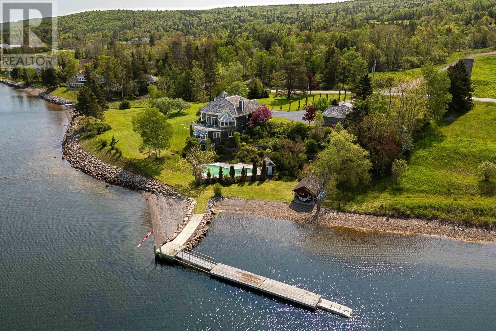 Follow signs to Dundee Golf Course. Property is just south of the resort entrance on the west side of the road #2641 Welcome to a truly extraordinary waterfront retreat in Dundee, NSdirectly across from the renowned Dundee Golf Course and fronting on the majestic Bras dOr Lake, the worlds largest inland saltwater fjord which offers some of the finest sailing in the world. This 2.33-acre estate offers nearly 500 feet of pristine shoreline and a private pier, perfect for mooring your sailboat just steps from home. The property has striking curb appeal with a circular paved driveway, turret with stained glass, manicured gardens, and a detached three-car garage. Whats not visible from the road is the architectural gem cascading down the hillsidethree glass-faced levels offering spectacular lake views from every floor, designed to blend with the landscape and project the image of a glass ship at sea. Inside, the home features 5 bedrooms and 4.5 bathrooms, a living room with fireplace, dining room, family room, games room, and a chefs kitchen featuring a Heartland Classic Range and Built-in Double Ovenblending heritage design with modern performance, including nickel trim, warming drawer, and vintage-style details. A 36" Swarovski-Strass crystal chandelier with 24 candlelight bulbs is a focal point and adds a timeless elegance. Known for their exceptional clarity and brilliance, every crystal is laser etched with the Swarovski logo. This premium crystal masterpiece scatters rainbows in the morning sun, and flares with incredible colours at sunset. Hurricane-rated solarium windows connect you to the outdoors year-round, and the inground saltwater pool, with its private setting, completes the resort-like experience. A separate log cabin serves as a cozy guest house, perfect for visitors. The entire property enjoys a sheltered microclimate created by the surrounding mountains, offering four distinct and beautiful seasons.This property is a rare and elegant coastal haven in one of Nova Scotias most coveted locations. Sail, golf, enjoy celtic music & East Coast lifest (id:27476)
