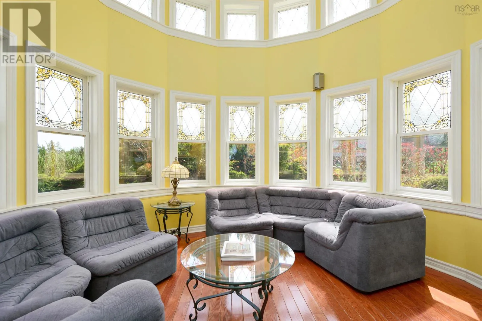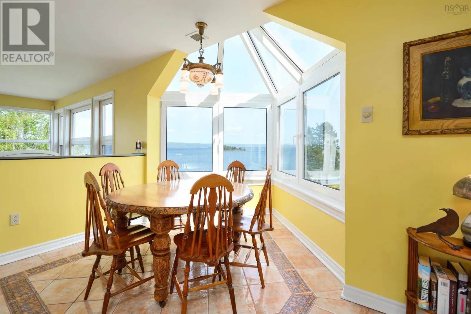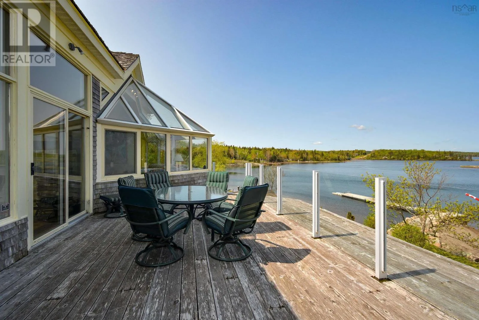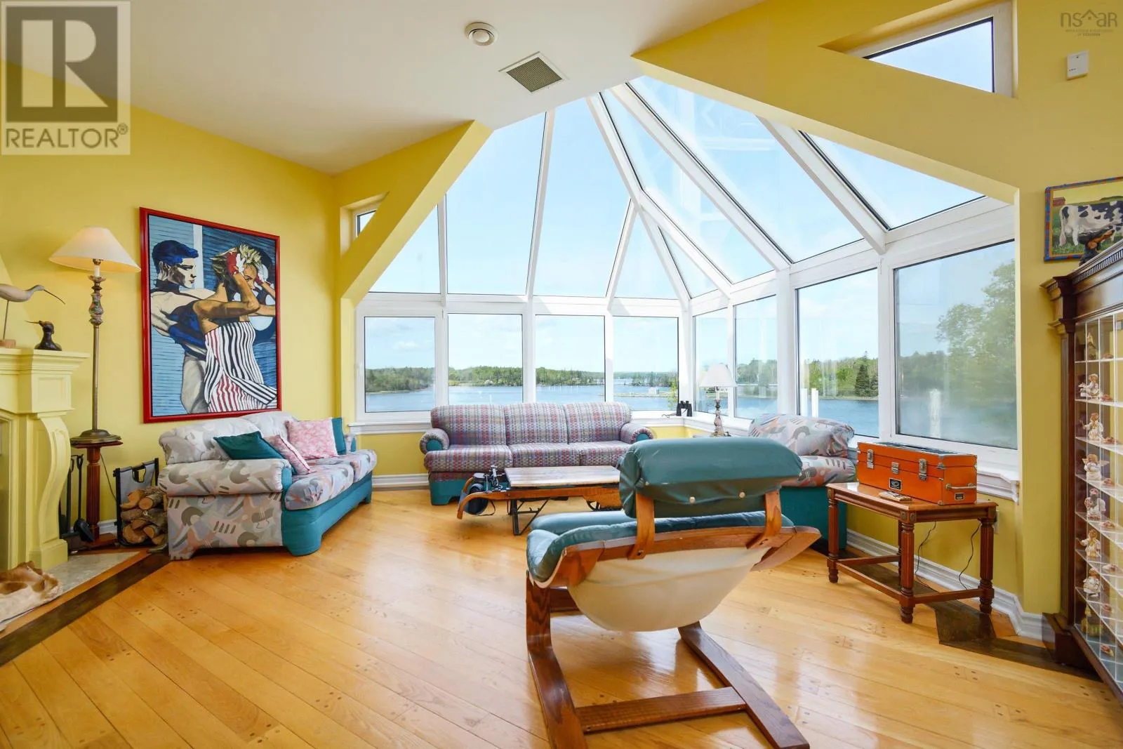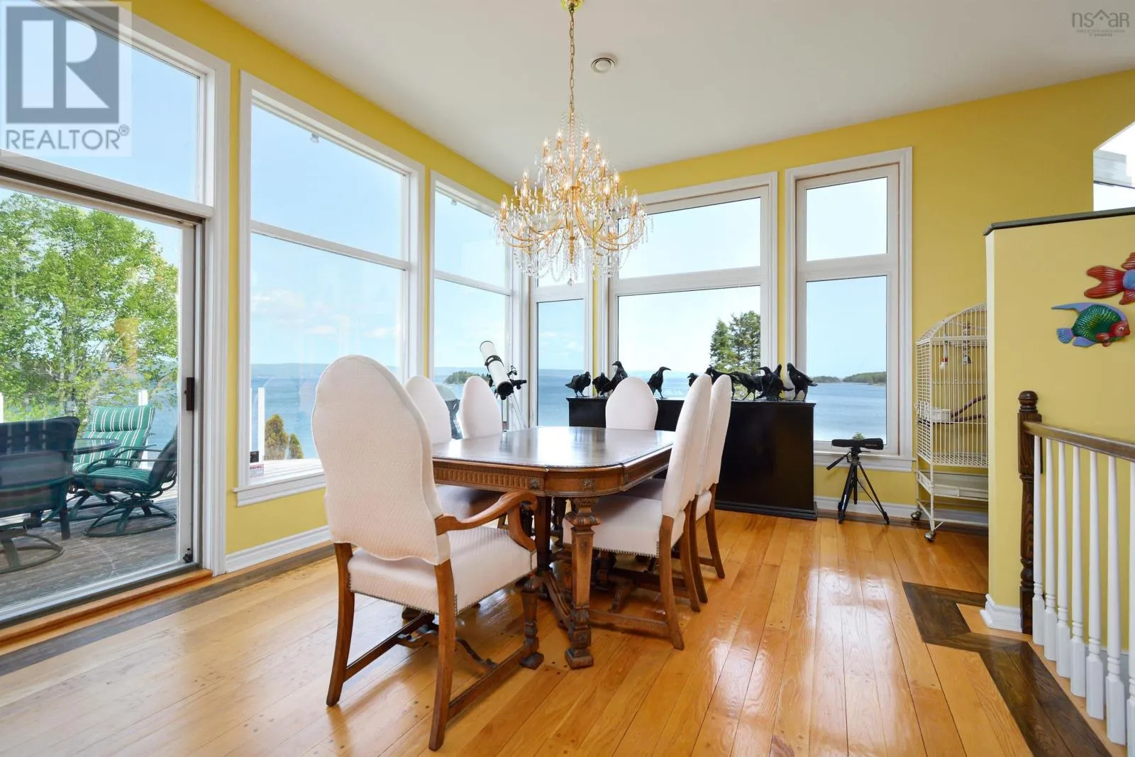 Follow signs to Dundee Golf Course. Property is just south of the resort entrance on the west side of the road #2641 Welcome to a truly extraordinary waterfront retreat in Dundee, NSdirectly across from the renowned Dundee Golf Course and fronting on the majestic Bras dOr Lake, the worlds largest inland saltwater fjord which offers some of the finest sailing in the world. This 2.33-acre estate offers nearly 500 feet of pristine shoreline and a private pier, perfect for mooring your sailboat just steps from home. The property has striking curb appeal with a circular paved driveway, turret with stained glass, manicured gardens, and a detached three-car garage. Whats not visible from the road is the architectural gem cascading down the hillsidethree glass-faced levels offering spectacular lake views from every floor, designed to blend with the landscape and project the image of a glass ship at sea. Inside, the home features 5 bedrooms and 4.5 bathrooms, a living room with fireplace, dining room, family room, games room, and a chefs kitchen featuring a Heartland Classic Range and Built-in Double Ovenblending heritage design with modern performance, including nickel trim, warming drawer, and vintage-style details. A 36" Swarovski-Strass crystal chandelier with 24 candlelight bulbs is a focal point and adds a timeless elegance. Known for their exceptional clarity and brilliance, every crystal is laser etched with the Swarovski logo. This premium crystal masterpiece scatters rainbows in the morning sun, and flares with incredible colours at sunset. Hurricane-rated solarium windows connect you to the outdoors year-round, and the inground saltwater pool, with its private setting, completes the resort-like experience. A separate log cabin serves as a cozy guest house, perfect for visitors. The entire property enjoys a sheltered microclimate created by the surrounding mountains, offering four distinct and beautiful seasons.This property is a rare and elegant coastal haven in one of Nova Scotias most coveted locations. Sail, golf, enjoy celtic music & East Coast lifest (id:27476)