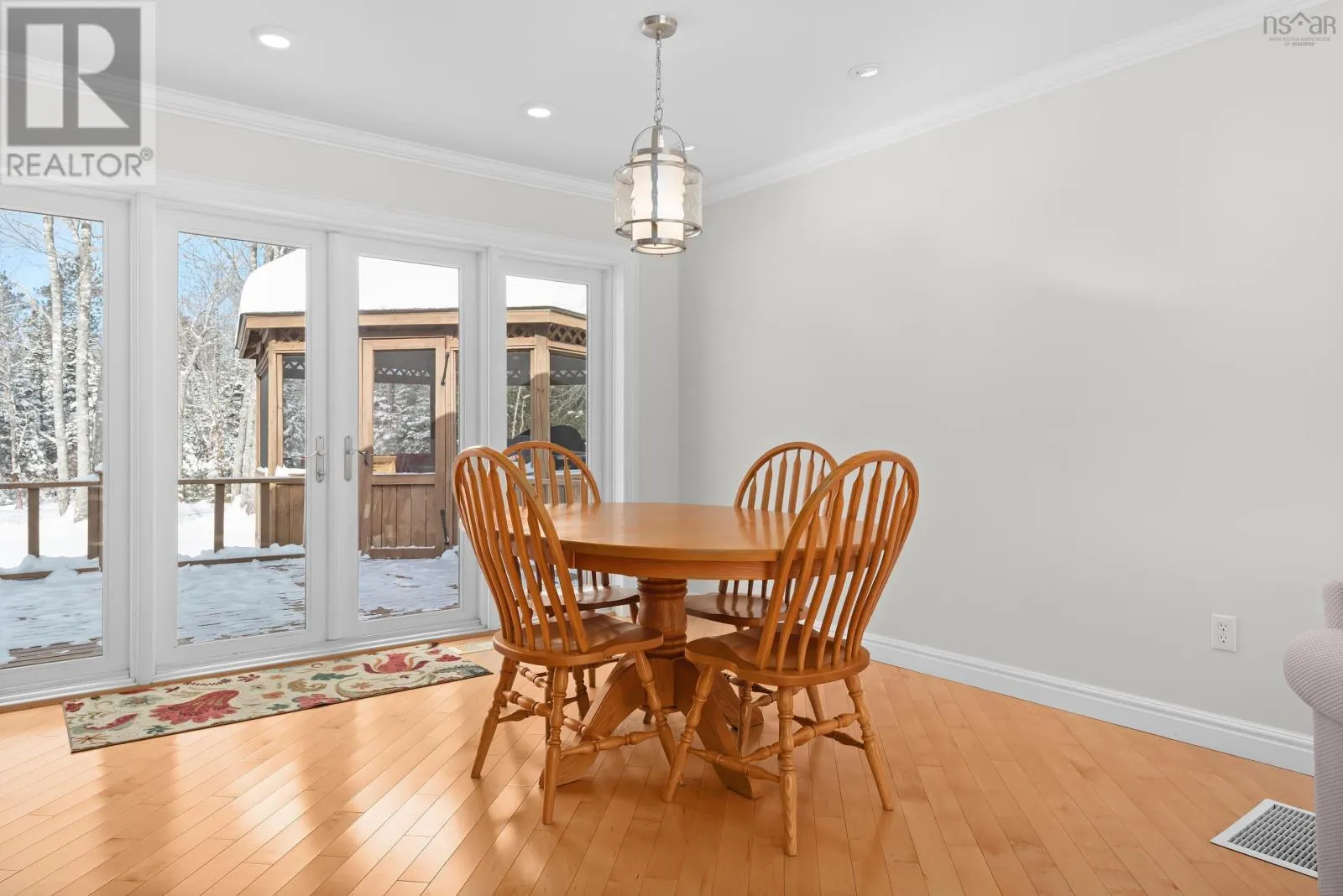 Highway 102 to East Hants Exit 8A to Lantz Connector. At the roundabout take the 3rd exit left to Highway 2. Take right onto Highway 277. Imagine owning a private riverfront country retreat just minutes from town. Set on a south-facing 3-acre lot with direct Shubenacadie River frontage, this sun-filled 4-level side-split offers peaceful surroundings, exceptional privacy, and easy access to Enfield, Elmsdale, Lantz, and Halifax Stanfield Airport. Freshly painted and thoughtfully designed, the open-concept main floor is bathed in natural morning light and anchored by solid maple hardwood floors. The chef-inspired kitchen features quartz countertops, custom cabinetry, stainless steel appliances, and ample storage ideal for everyday living and entertaining. Oversized windows and double French doors connect seamlessly to an expansive deck and screened gazebo where you can relax or host gatherings. Upstairs, three generously sized bedrooms provide private retreats, including a tranquil primary suite with his-and-hers walk-in closets and a spa-style bathroom. The lower levels add flexibility with a bright rec room, renovated laundry, and a large bonus room with its own bath and exterior entrance perfect for a home office, studio, guest suite, or small business. Wellness and comfort are enhanced by a custom red cedar infrared sauna and fully equipped fitness room. Practical features include a water filtration system, GenerLink generator hookup, central vacuum, and new septic field. Outdoors, mature trees, perennial gardens, and wide-open green space create a private park-like setting with room for a pool, pickleball court, skating rink, or simply exploring. Zoned VIL, the property allows select institutional and commercial uses under HRM guidelines, offering rare flexibility. With ample parking, a storage shed, and numerous inclusions, this move-in-ready riverfront home offers a rare opportunity to embrace country living where space, nature, and convenience come together in perfect balance. (id:27476)