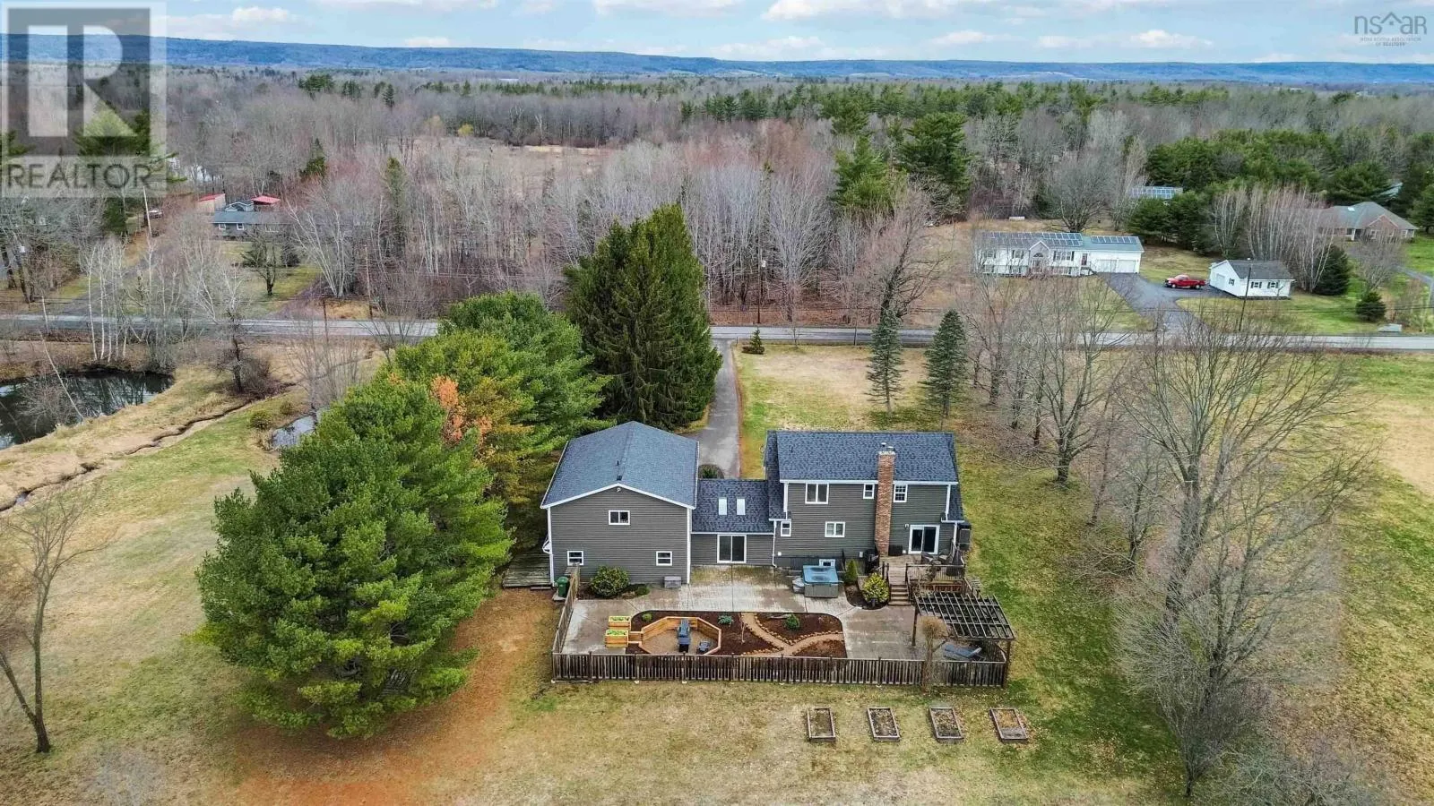 From NS 101 take Exit 15 into Berwick. Left onto Main Street, follow for 3KM - Main Street turns into Maple Ave., property is on right side, see sign on property Set on 4.28 private acres just minutes from the Town of Berwick, this exceptional Cape Cod home offers the perfect balance of peaceful country living and convenient access to amenities, with quick highway connections for an easy commute. Outdoor enthusiasts will appreciate direct backyard access to hundreds of kilometers of scenic walking and biking trails. The property also features a variety of established fruit and berry trees, adding charm and the opportunity to enjoy your own seasonal harvest. Extensively renovated and thoughtfully updated, the home offers three levels of well-designed living space. The main floor features a bright, functional kitchen and an open-concept living and dining area, anchored by a cozy wood stove. An energy-efficient ducted heat pump ensures year-round comfort, while a home office, laundry area, and 2-piece bath complete the level. Upstairs, youll find three spacious bedrooms and a full bath. The primary suite includes a walk-in closet, additional double closet, and a private ensuite. The walkout lower level expands your living space with a large family room, ample storage, and a versatile flex room ideal for a home gym, studio, or hobby space. Adding exceptional value, the attached double car garage includes a 2-piece bath and a self-contained one-bedroom suite above, complete with separate entrance, full bath, in-suite laundry, and ductless heat pumpideal for rental income or extended family. The fenced backyard is designed for relaxing and entertaining, featuring sun-filled, south-facing decks, a stamped concrete patio, and a sunken fire pit area perfect for evening gatherings. Set well back from the road, the property also offers a paved driveway, ample parking, and excellent curb appeal. Two ponds complete the settingboth serving as a haven for birds and wildlife, and one doubling as your own private skating rink in winter. (id:27476)