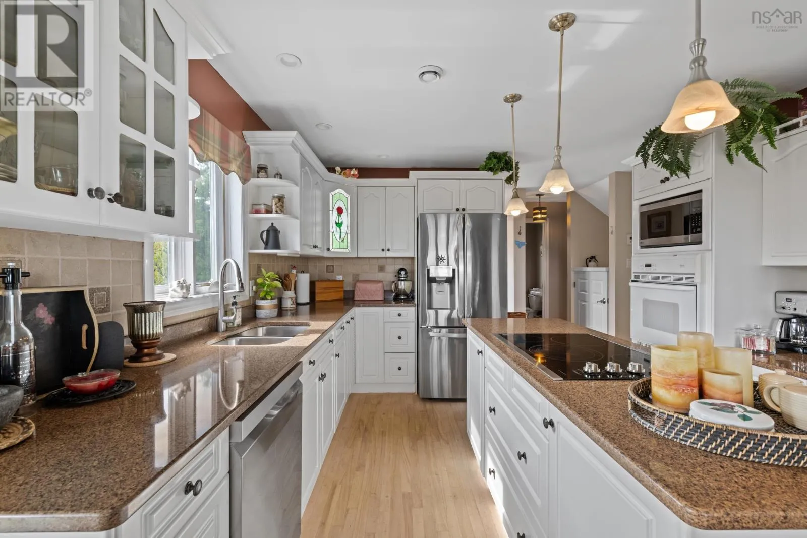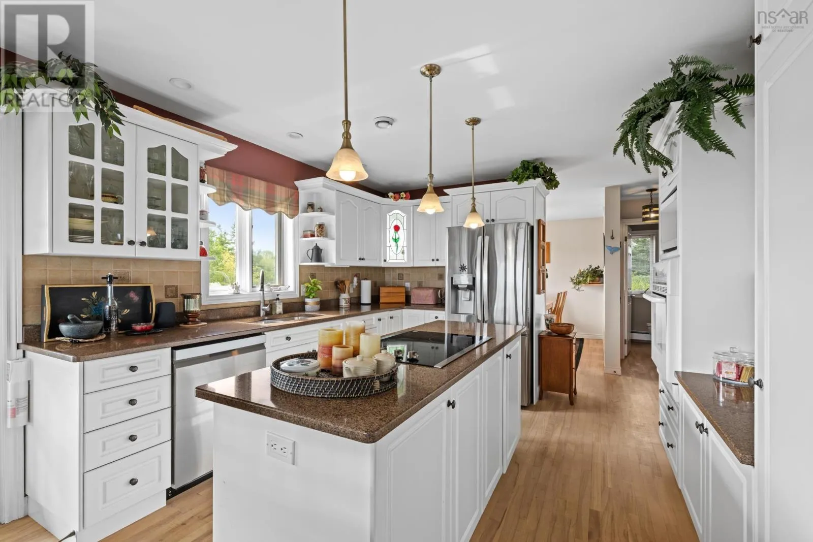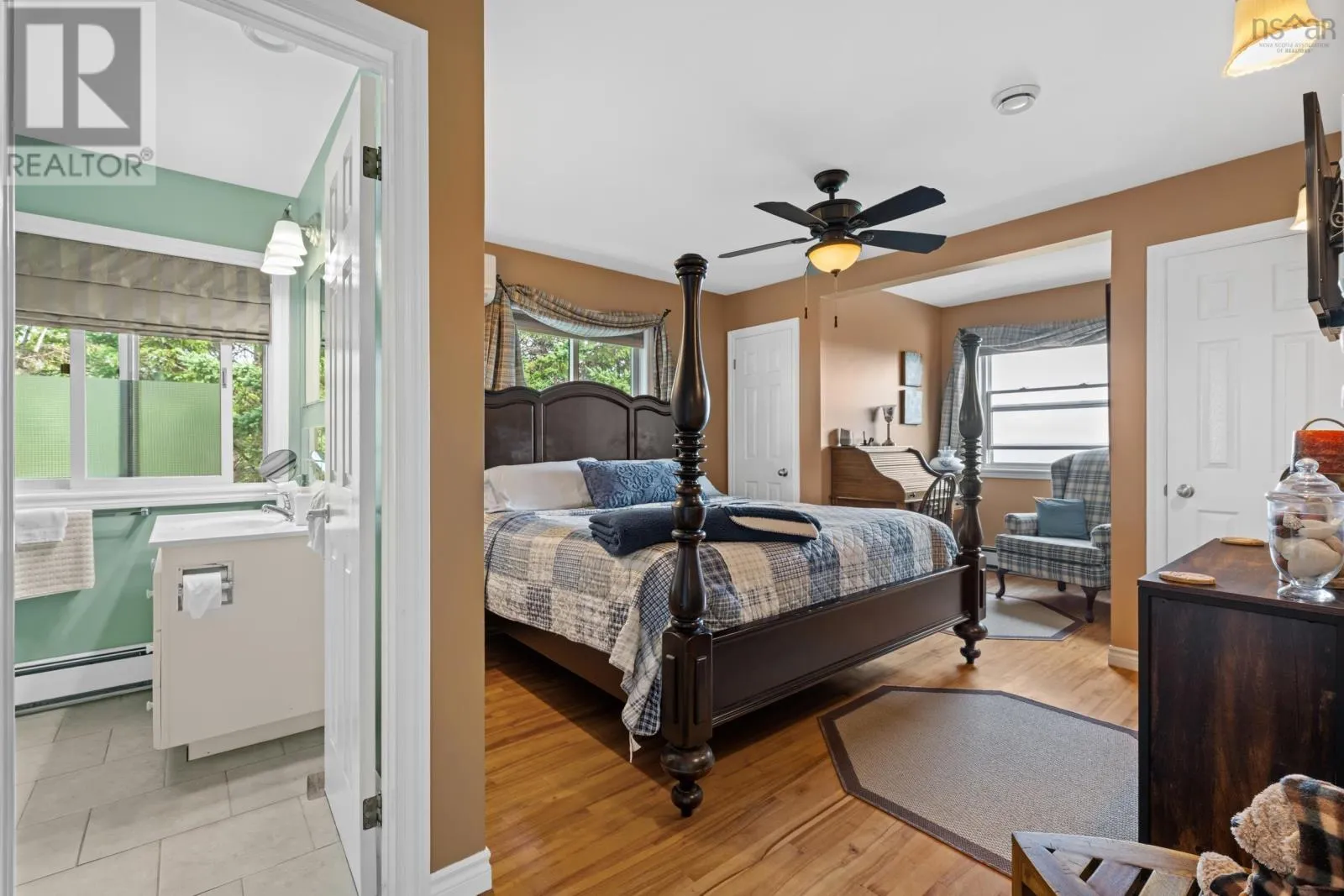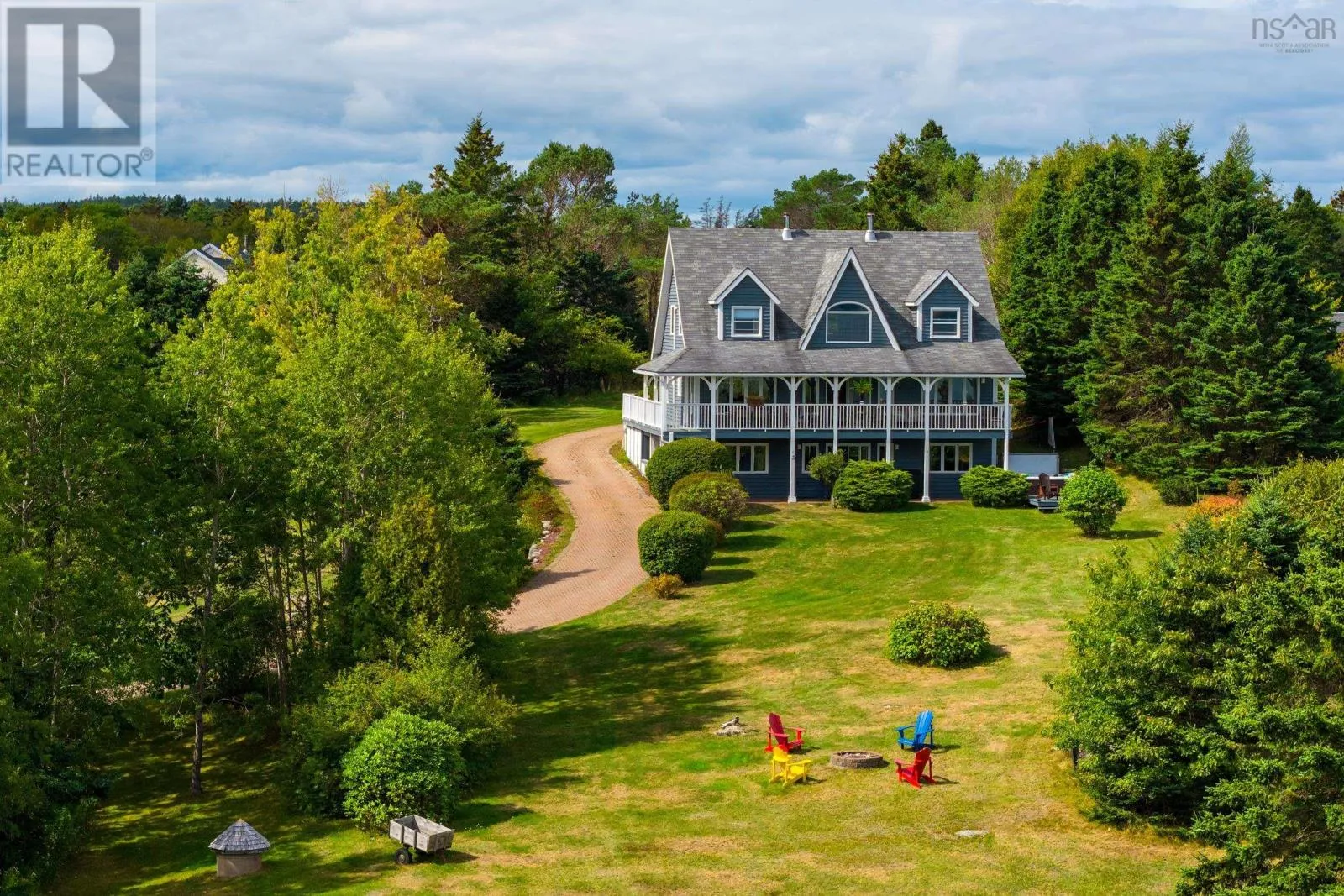 Highway 3 to Graves Island Road, second property on the left. Breathtaking and elevated vistas with spectacular sunrises over the sparkling waters of Mahone Bay. This stately home is warm and inviting with generous spaces designed for both privacy and for gatherings. Nestled on a hilltop, three levels of living space capture incredible views from this Cape Cod home. So many opportunities are within reach here - keep it as a cherished family estate, offset your costs and rent the lower in-law suite or run it as a Bed & Breakfast. The great room impresses with custom details like the 2-storey vaulted ceilings with beautiful crown moldings, wood burning fireplace, and tall windows that bring in vast ocean and island views. From here step outside to a wrap-around veranda the perfect spot to take in the elevated views and fresh ocean air. Complete privacy can be enjoyed by everyone with four spacious bedrooms, each complimented by full ensuite bathrooms. There is also an open space kitchen with a dining area and separate formal dining room, providing plenty of versatile space. The lower level is home to a completely separate in-law suite, with a well appointed kitchen and full bathroom (both newly renovated) and separate entrance out to a covered patio, and hot tub with a deck facing the water. The paver stone driveway, landscaped grassy lawns and well-kept perennials surrounding the property enhance the curb appeal and charm. There is no need to own waterfront here with Graves Island just a short stroll away where a public boat launch, many beaches and swimming areas, extensive seaside walking trails and plenty of nature awaits. Ample exterior storage is available with the detached garage and shed, both with charming board & batten wood siding. Located a stones throw from Graves Island Provincial Park, 3 minutes to the Village of Chester for all amenities and an easy 40 minute drive to Halifax. (id:27476)