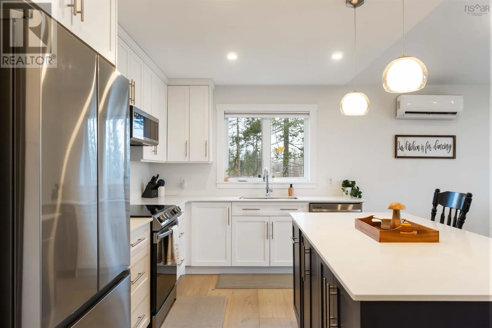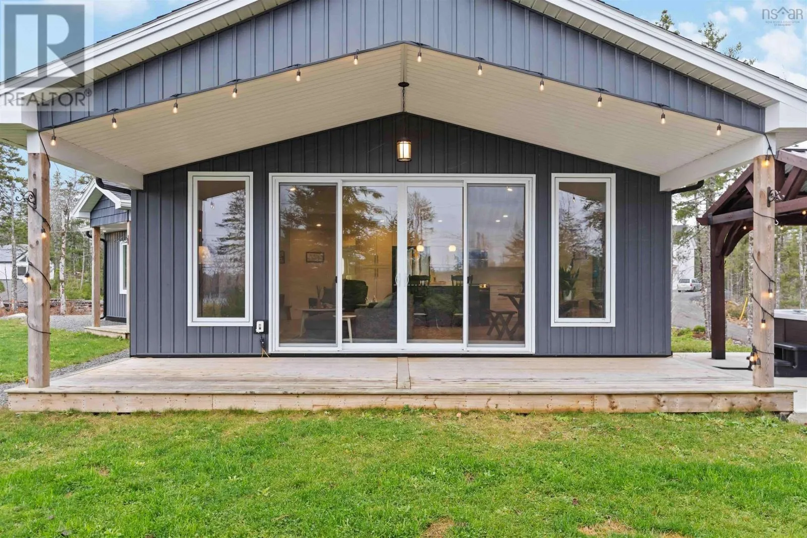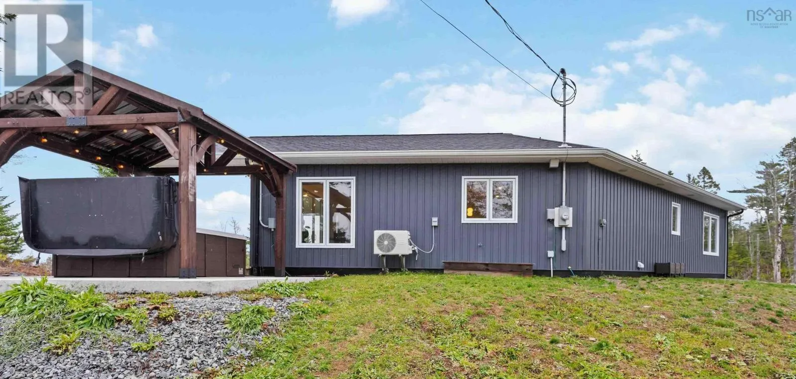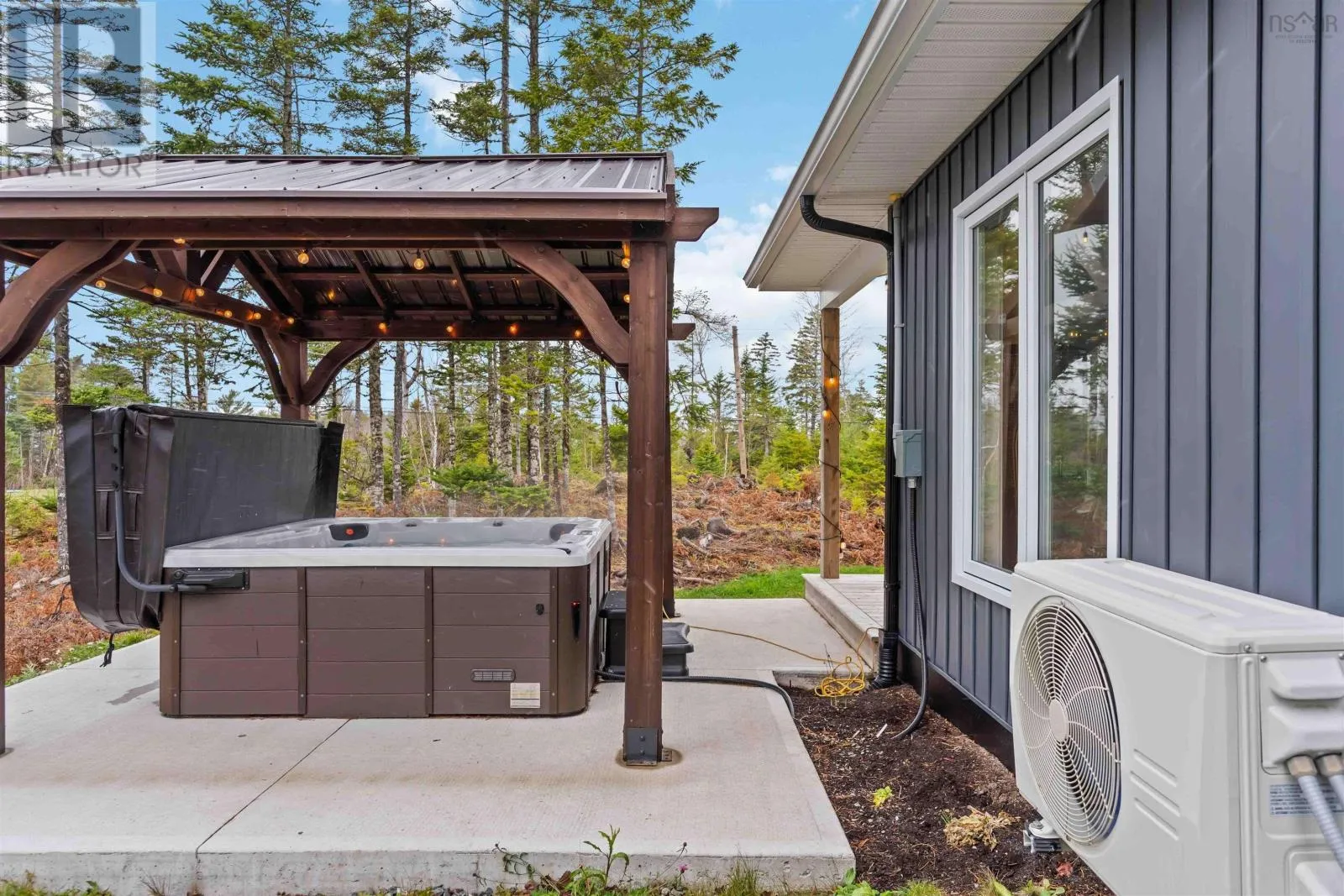 From Highway 101, take Exit #3. Left onto Hwy 1, Right onto Etter Rd, Right onto East Uniacke Rd, Left onto Nature Dr, Left onto Village which turns into Heritage Way. Welcome to luxury single level living at its finest. Nestled in Cottage Country's Village of Long Lake, this beautifully designed home features 2 oversized bedrooms and 1 primary bath all conveniently located on the main level. Enjoy upscale finishes such as engineered hardwood throughout, quartz countertops in the kitchen and high-end appliances, all included in the sale. The living room showcases a full wall of windows, capitalizing on lake views, along with easy access to the deck through sliding patio doors. Outdoors, enjoy year-round relaxation in your private hot tub, set beneath a custom gazebo on a newly poured concrete pad (2024). The 1.2-acre lot is beautifully landscaped with mature trees and includes a 24x24 wired double garage, also added in 2024. Deeded access to the lake ensures you can take full advantage of the sought after lake lifestyle. Schedule your private showing with your agent today. (id:27476)
