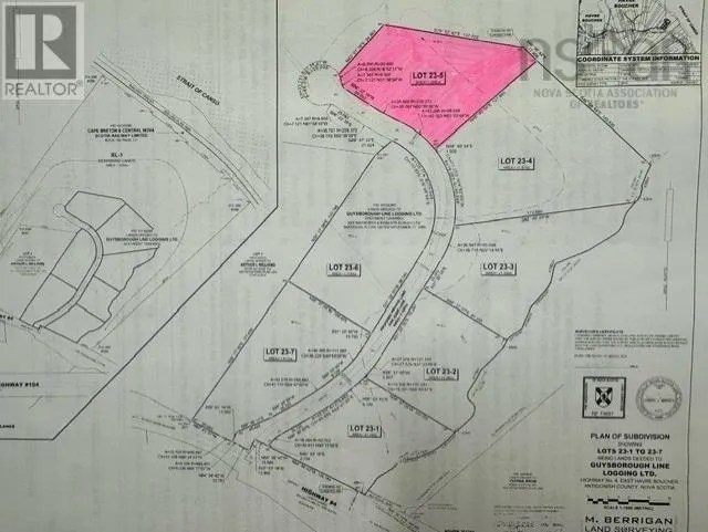 #4 Highway to East Havre Boucher, watch for sign Dan Josie Landing and Realtor sign 3.19 acre lot surveyed and migrated in Dan Josie Landing Subdivision East Havre Boucher Highway 4. This lot is part of 7 lots in various shapes, sizes and vegetation (some cleared, some wooded; some water view, some without). A close drive to Aulds Cove, Canso Causeway and Cape Breton Island. Private access road (Dan Josie Lane) is in place and will be deeded and shared. Seller will put power at the end of lots. All you have to do take a drive, find the spot, put driveway, water, sewer in place and build that dream home. I almost guarantee it will be a great family friendly subdivision only steps away from TCH 104 (id:27476)