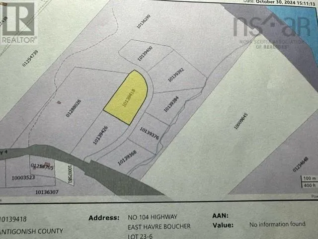 #4 Highway to East Havre Boucher, watch for sign Dan Josie Landing and Realtor sign 3.76 acre lot surveyed and migrated in Dan Josie Landing Subdivision East Havre Boucher Highway 4. This lot is part of 7 lots in various shapes, sizes and vegetation (some cleared, some wooded; some water view, some without). A close drive to Aulds Cove, Canso Causeway and Cape Breton Island. Private access road (Dan Josie Lane) is in place and will be deeded and shared. Seller will put power at the end of lots. All you have to do take a drive, find the spot, put driveway, water, sewer in place and build that dream home. I almost guarantee it will be a great family friendly subdivision only steps away from TCH 104 (id:27476)
